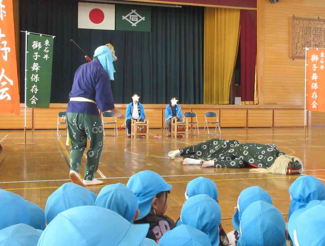 10月2日、石井小学校にて、東石井町獅子舞保存会の方による獅子舞を見学してきました。