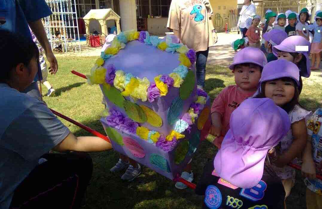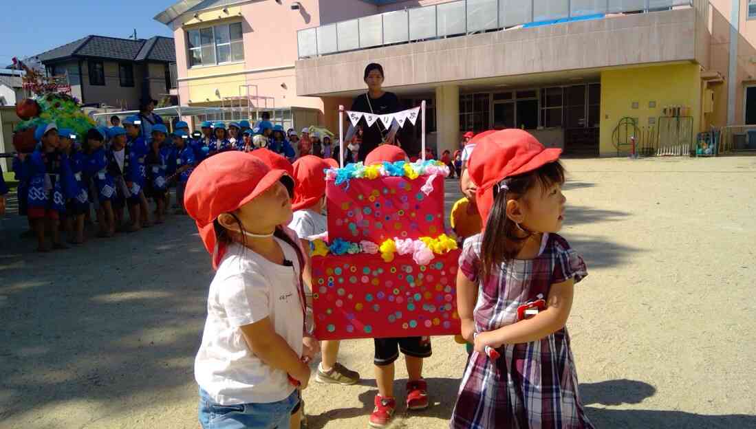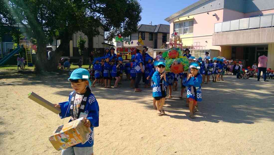 その後、年長さんは自分たちが作った神輿を担いで、練り歩きに出発!