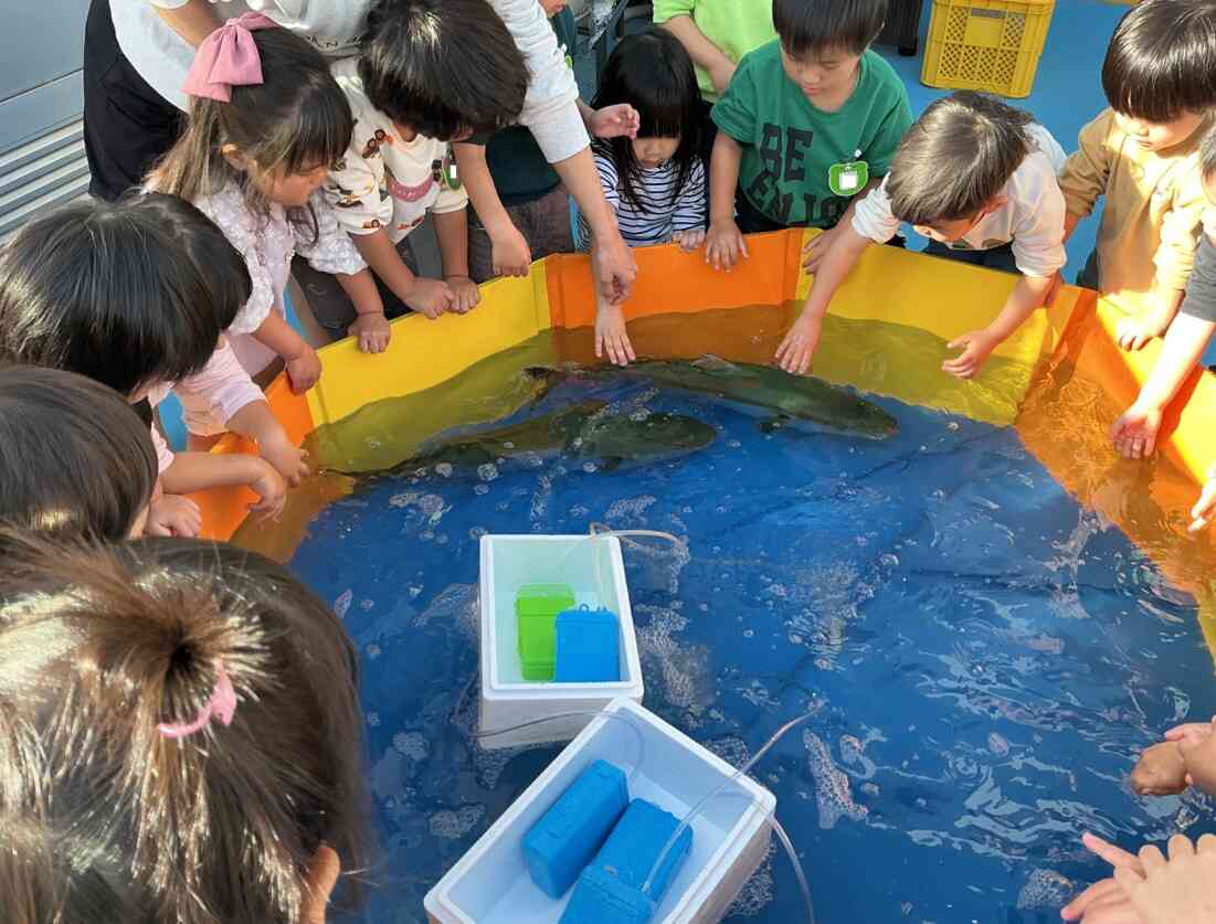 嬉しそうに、魚に触ったり、魚がバシャッ!と動いたりする様子を楽しんでいました。