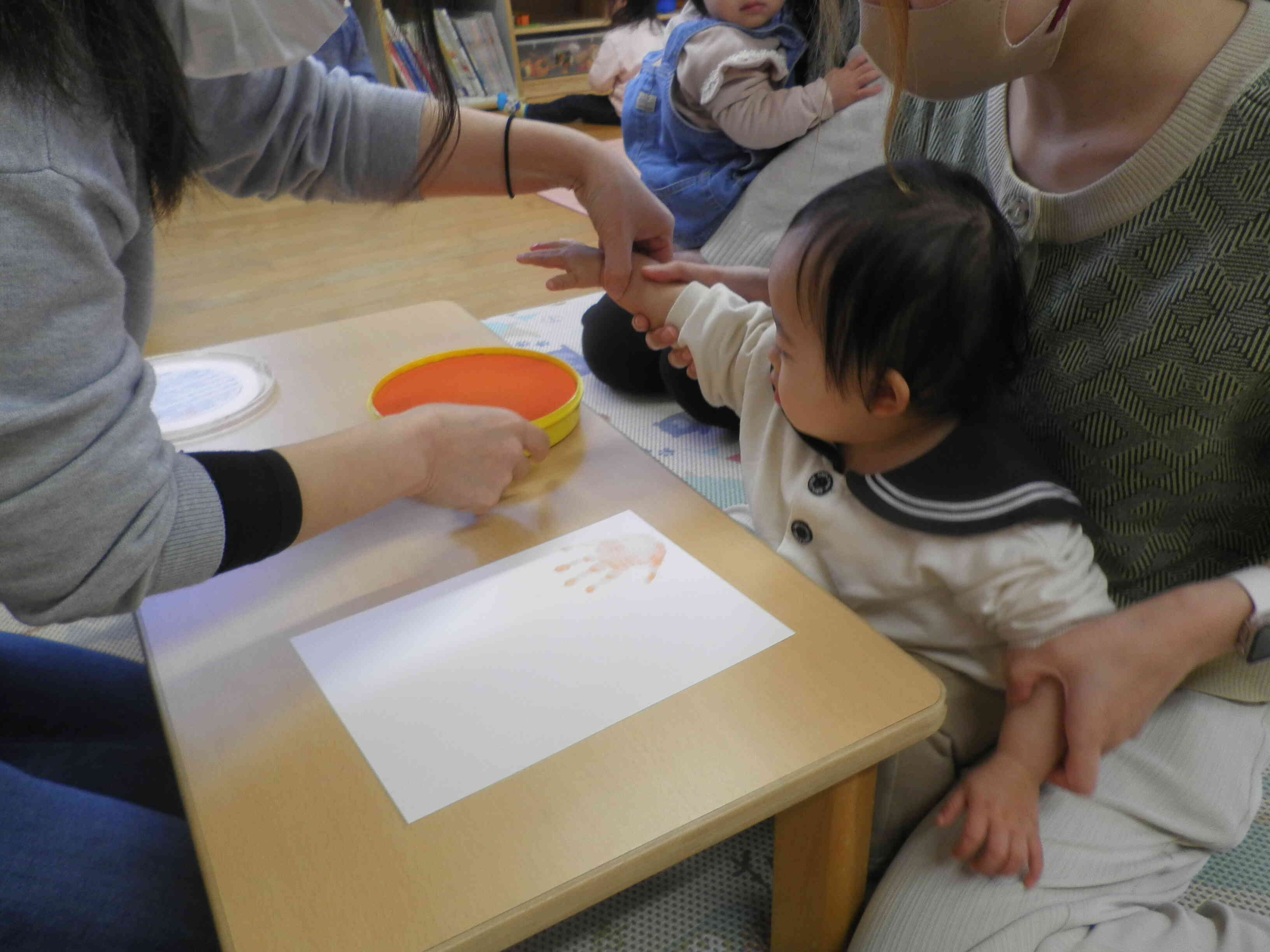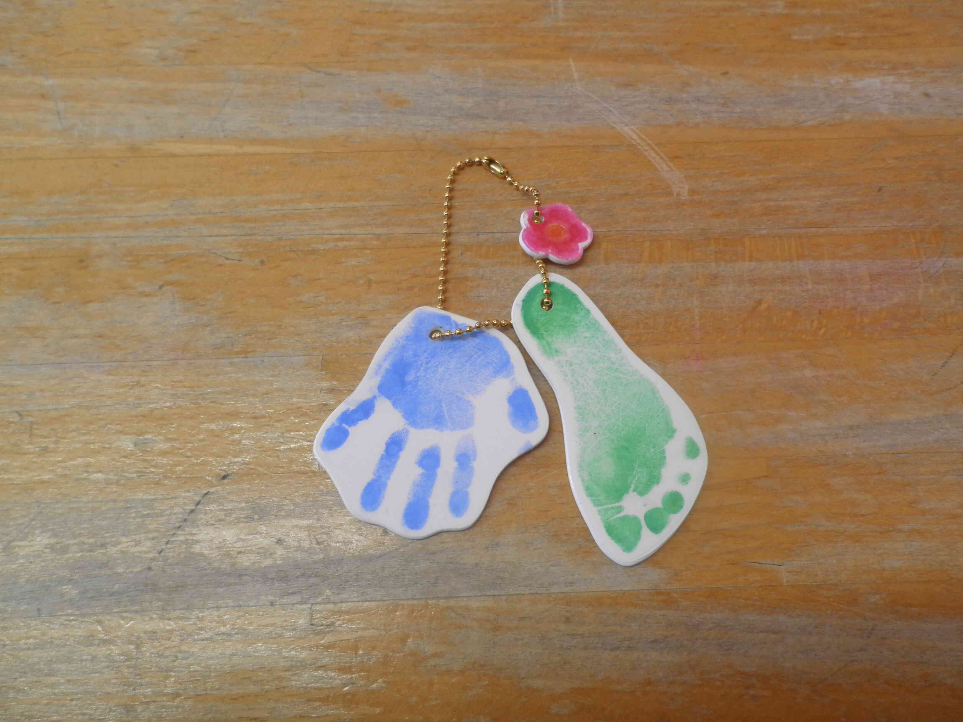 手形や足形をとり、それを加工するもよし!そのままキーホルダーにするもよし!自由な制作でした。