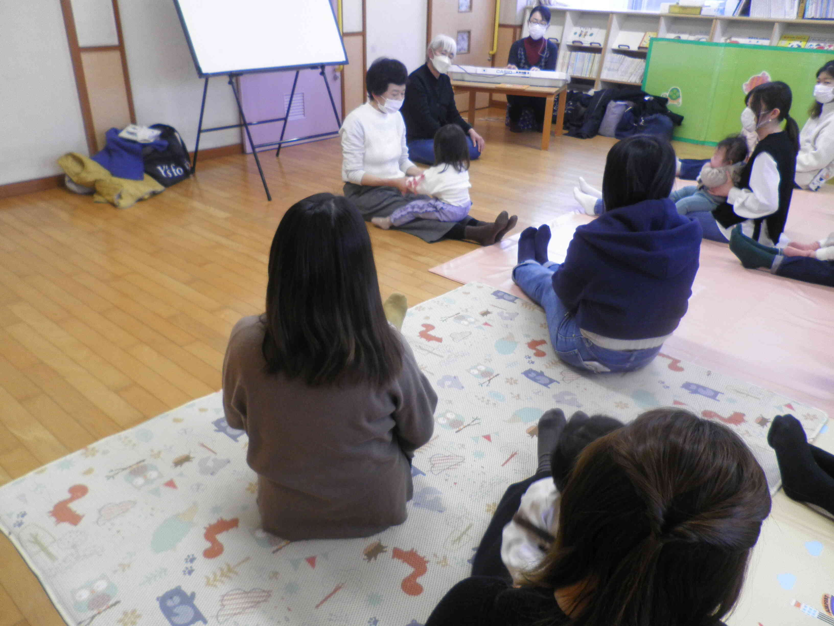 よく参加してくれている方は恒例のわらべ歌やはじまりのお話しなどを覚えてくれていて、初めて参加する方も簡単にできるのでみんなで楽しめるえほん広場となっています!