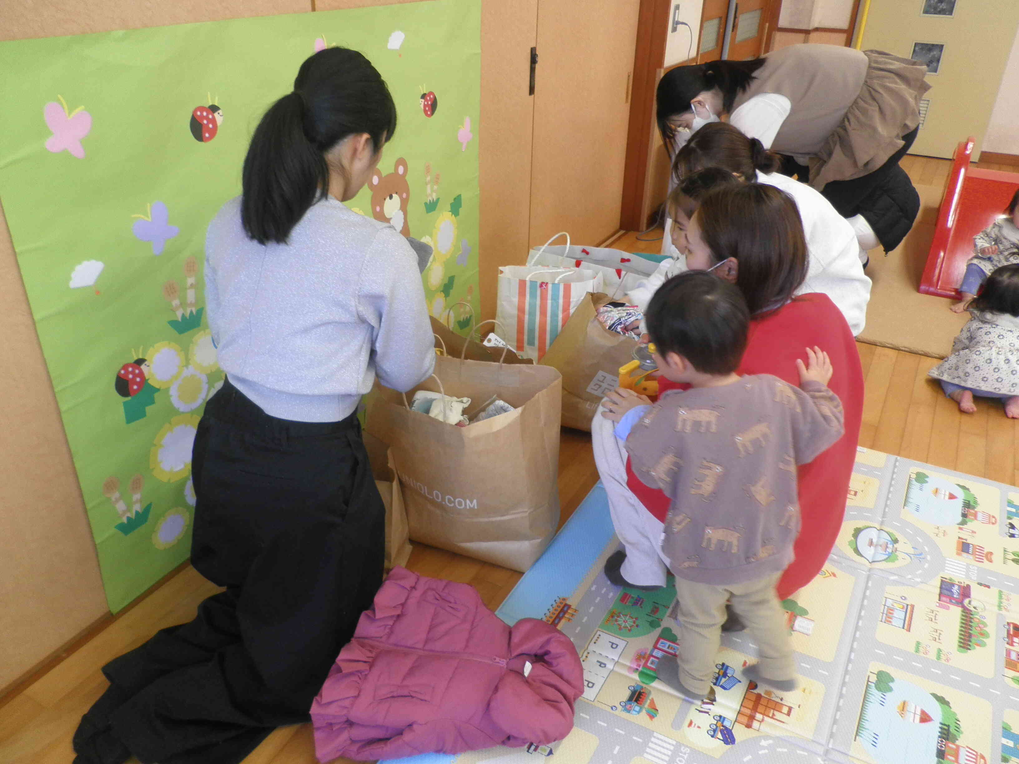 お洋服を見ている間、子どもたちはおもちゃで遊んだりお絵描きをしたりしてくれていたのでお母さんたちもゆっくり見ることができました。