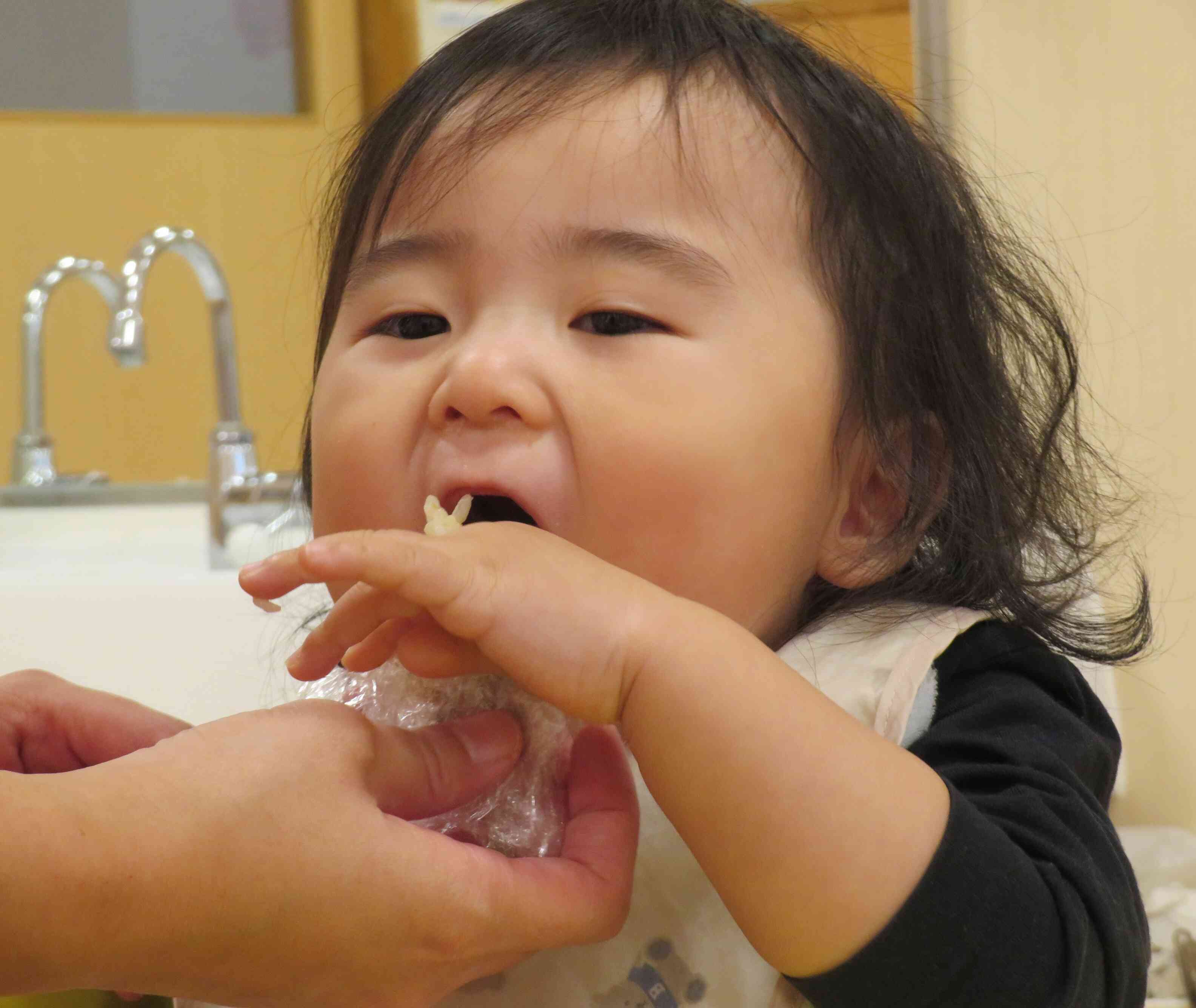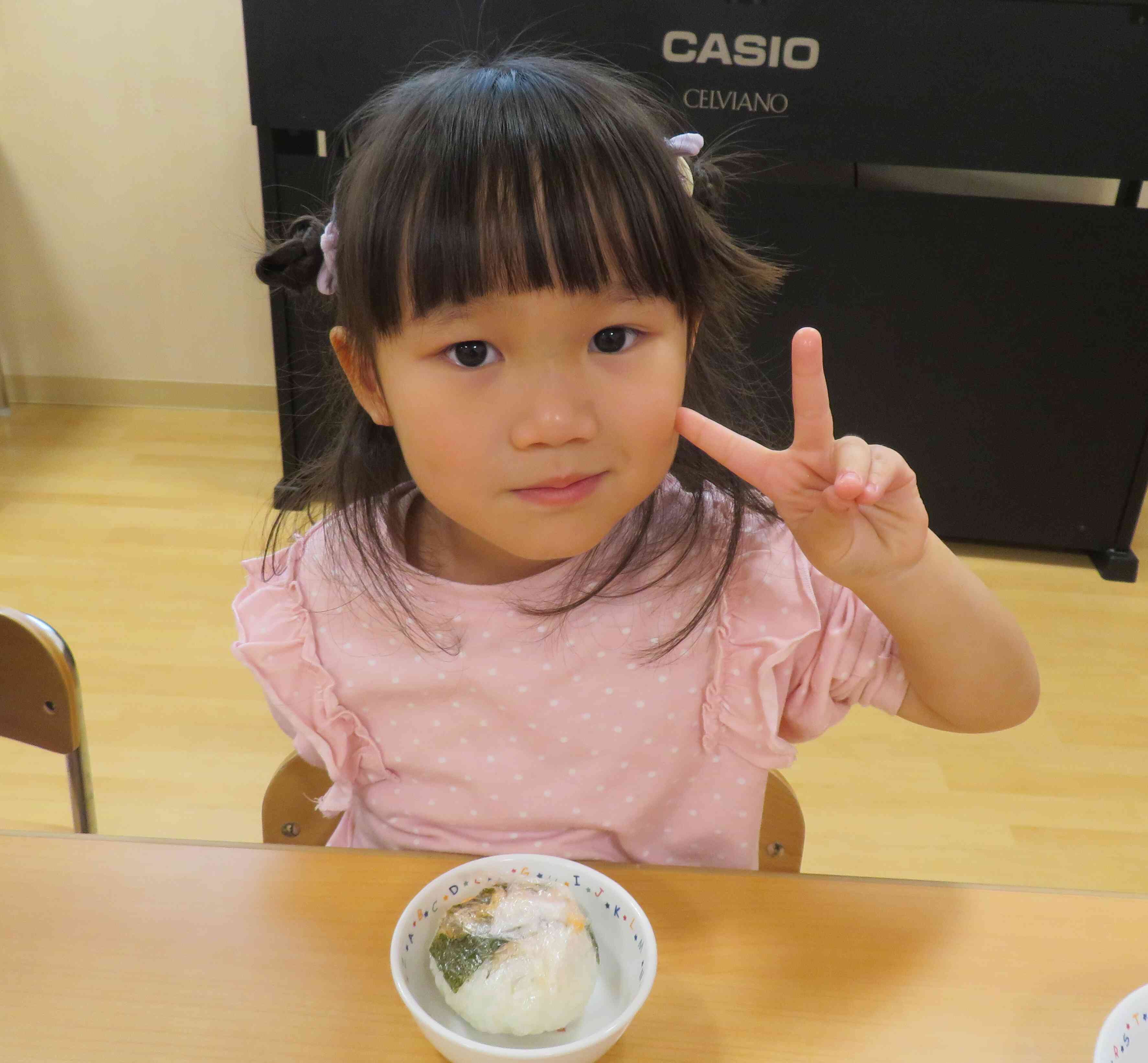 大きなおにぎりを「見て見て~」と見せてくれました。お口に入るかな~??
