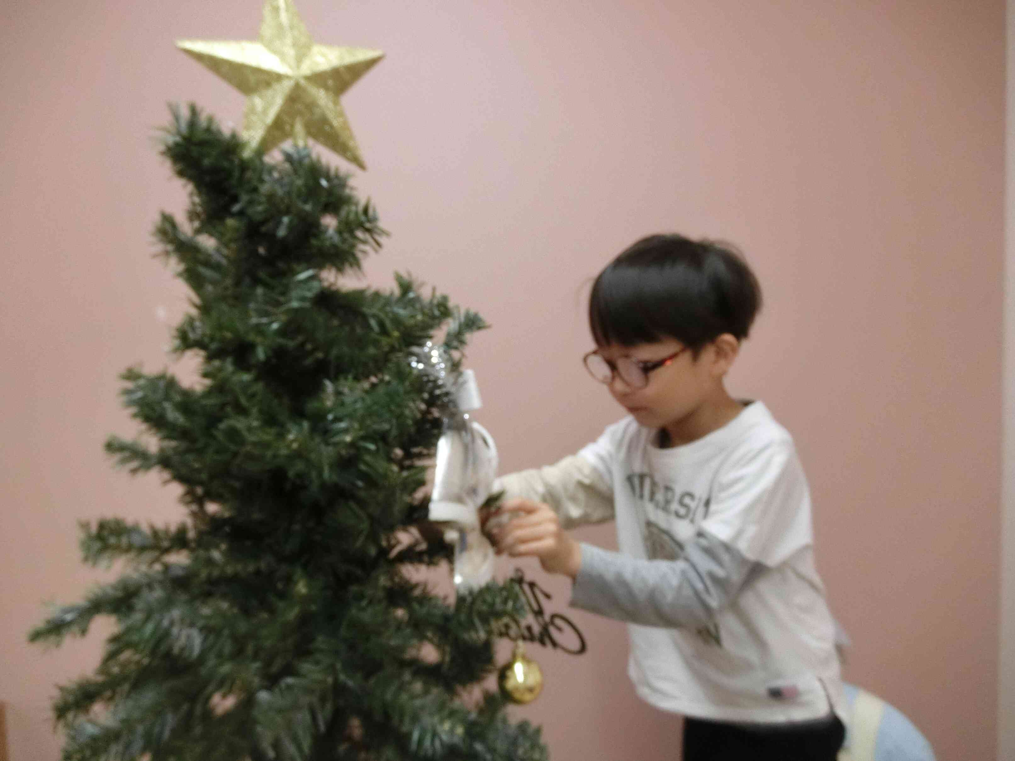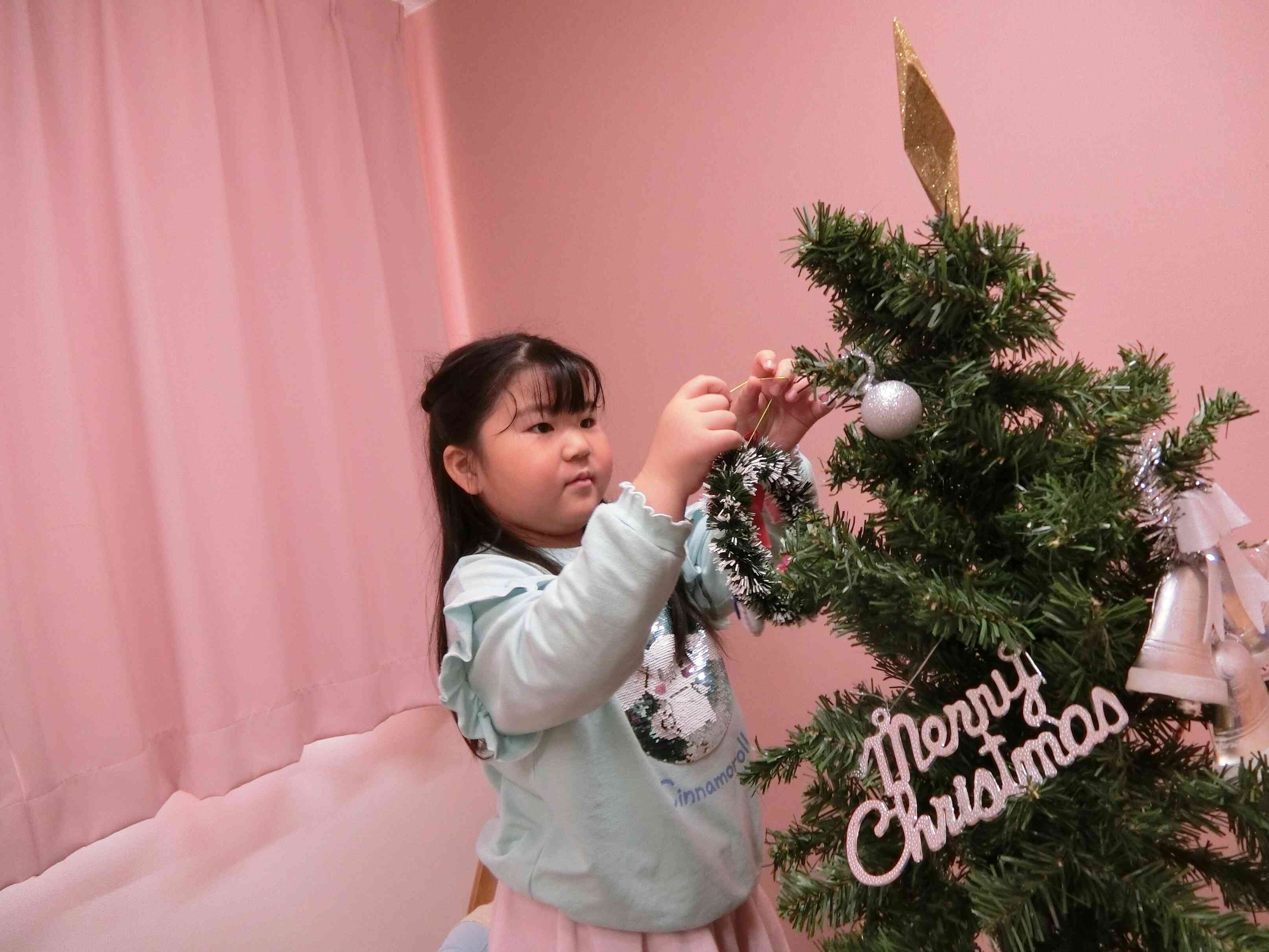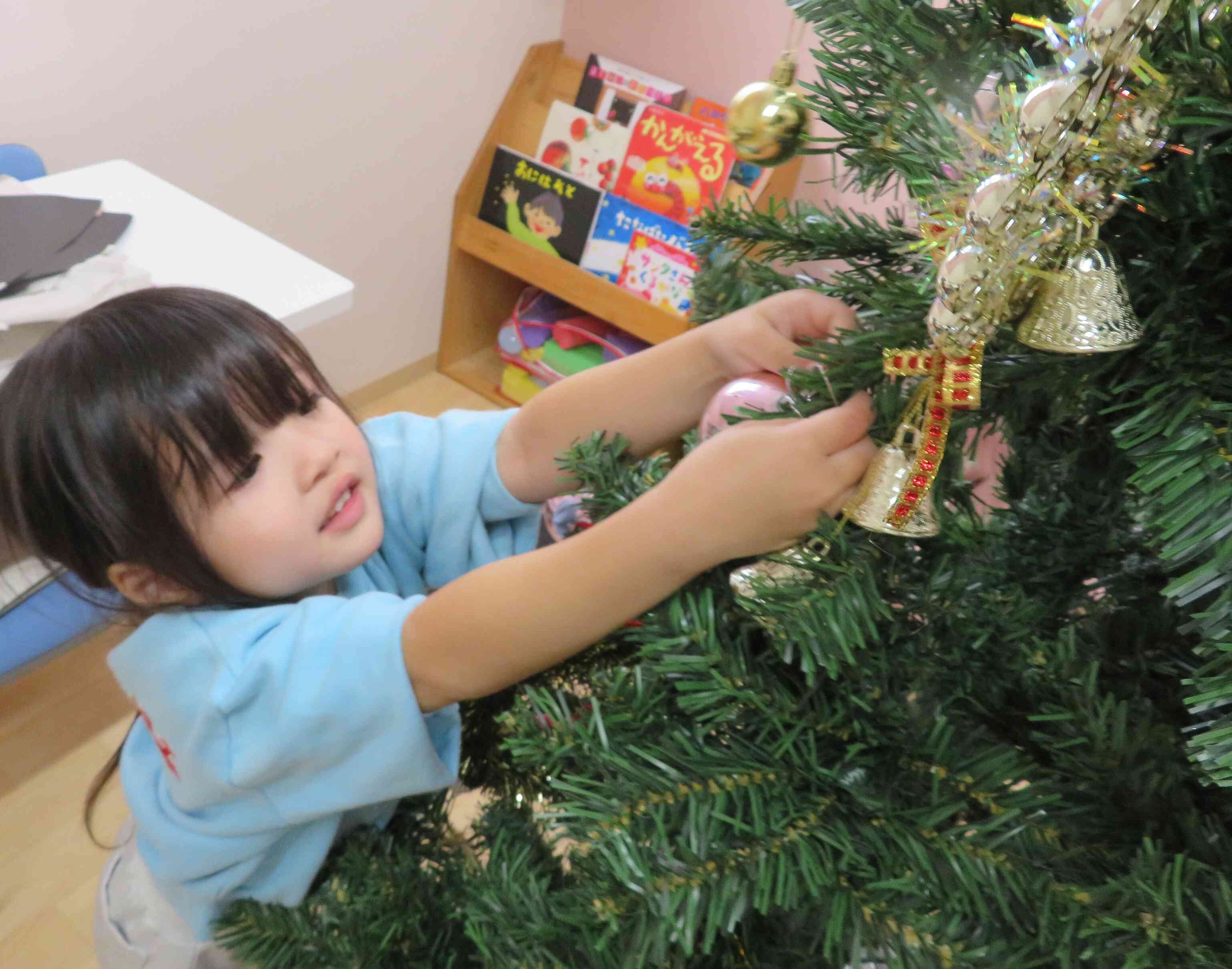 キラキラした飾りをワイワイと楽しそうに飾り付けをしていた子どもたち。