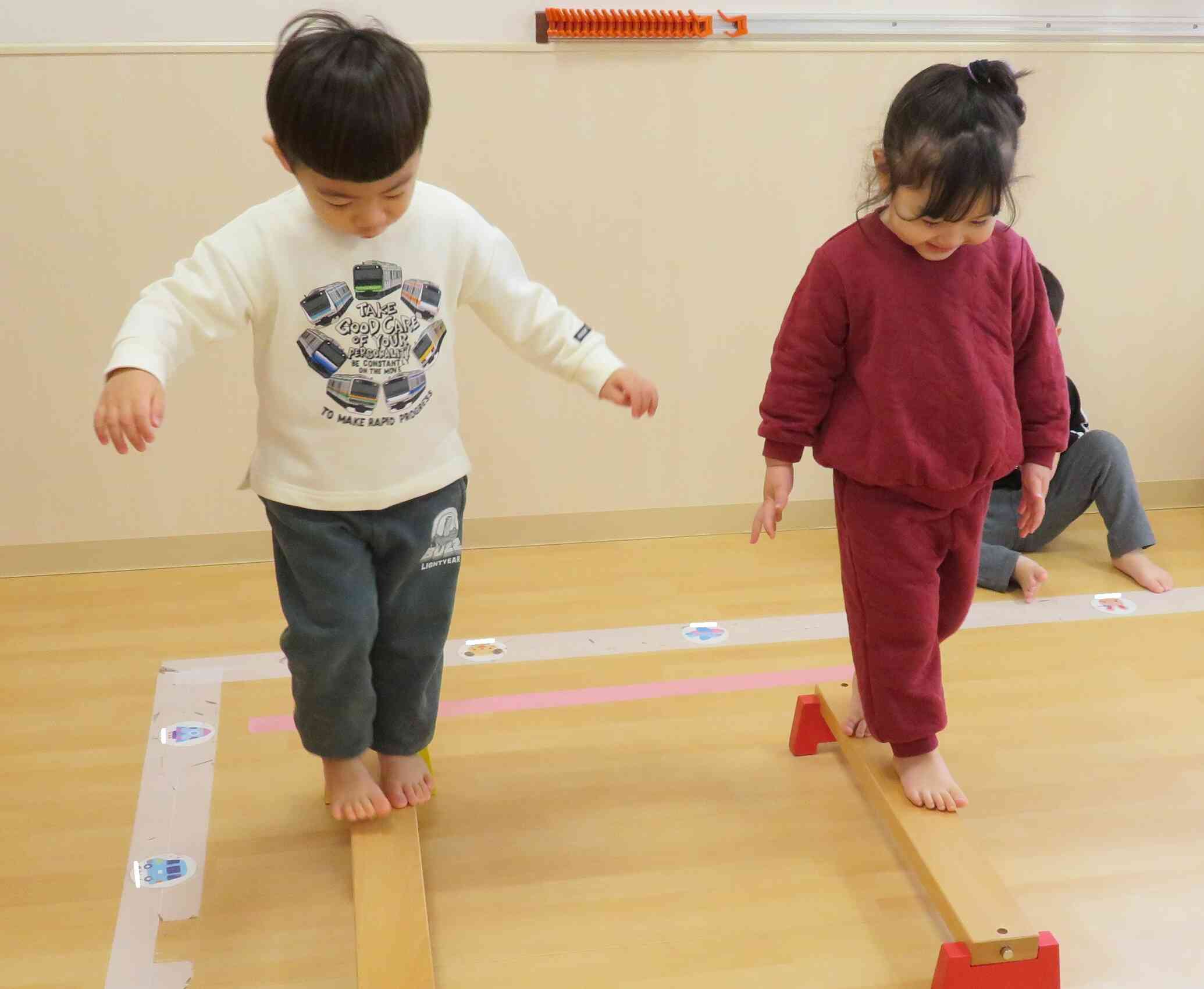 両腕を広げたり、歩幅を小さくしたりと工夫をしてしっかり歩けていますね。