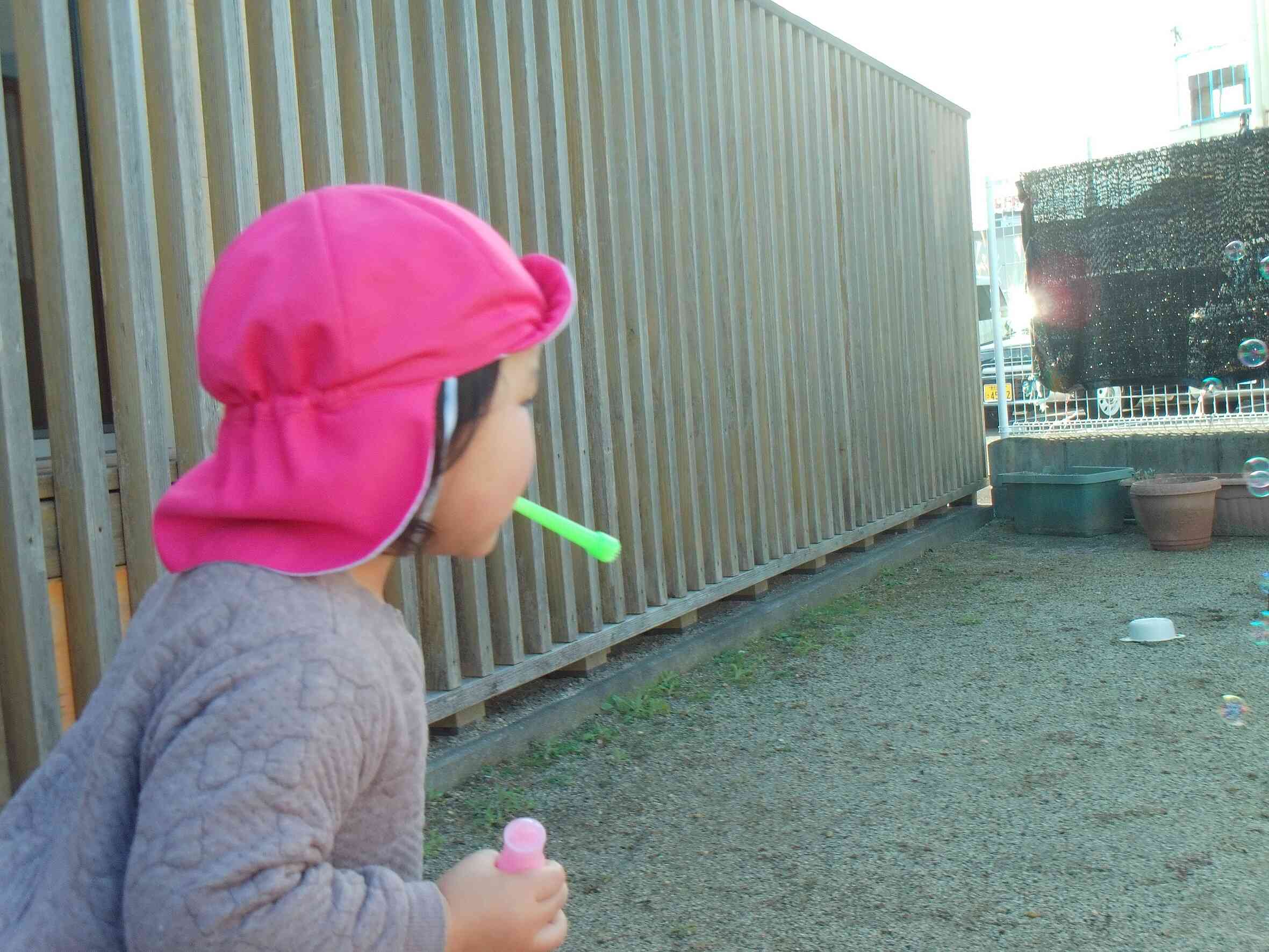 この日は「シャボン玉したい!」という子どもたちのリクエストがありましたのでシャボン玉遊びをしました^^