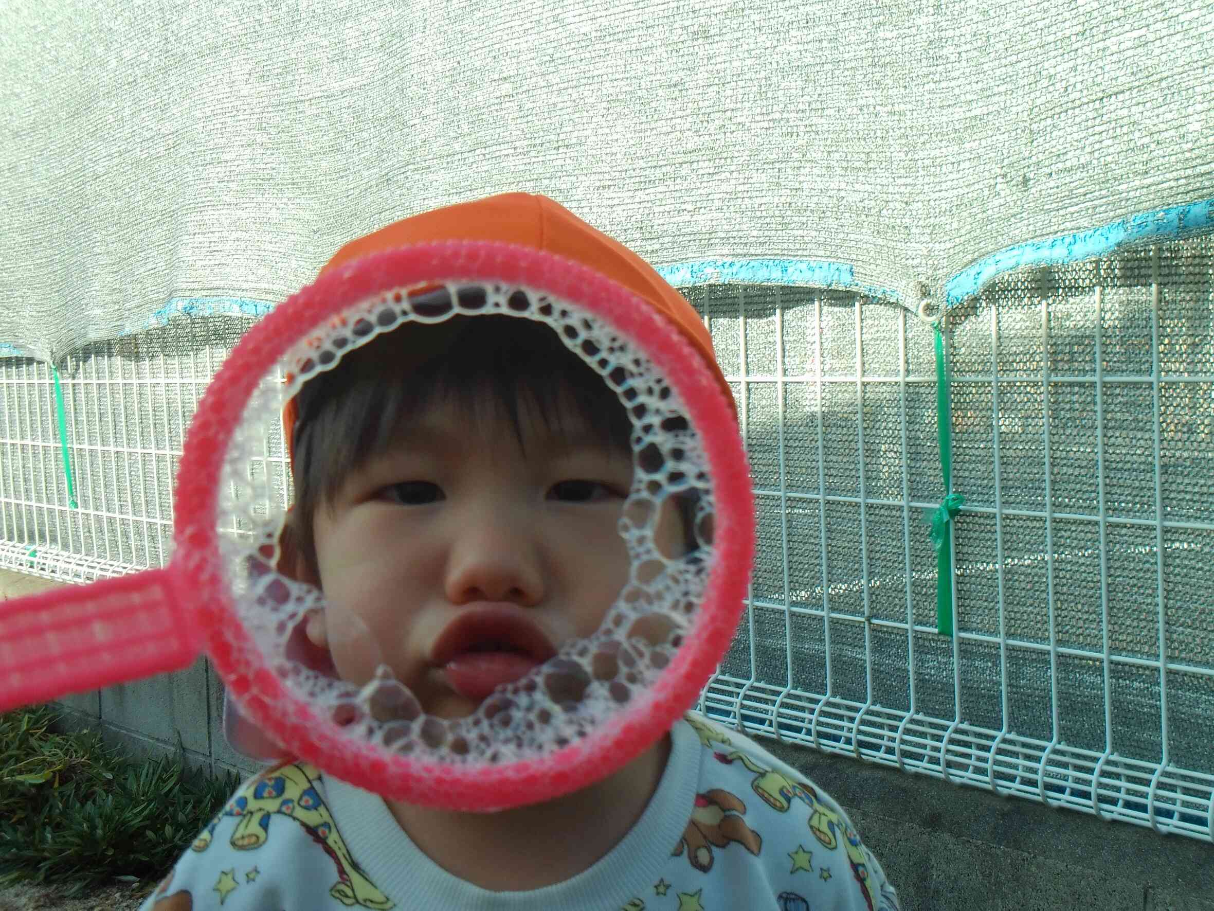 大きいシャボン玉ができると「おっきねぇーー!」と大喜び☆