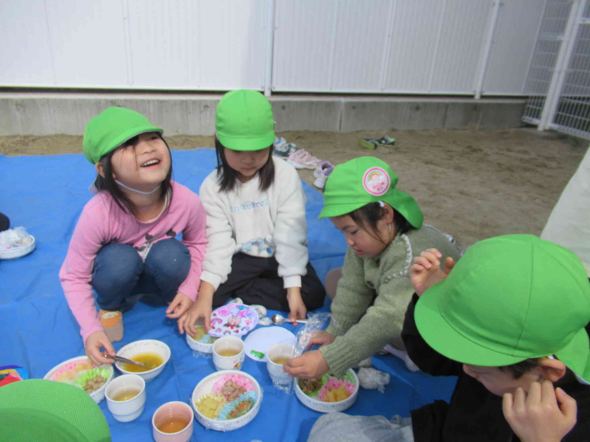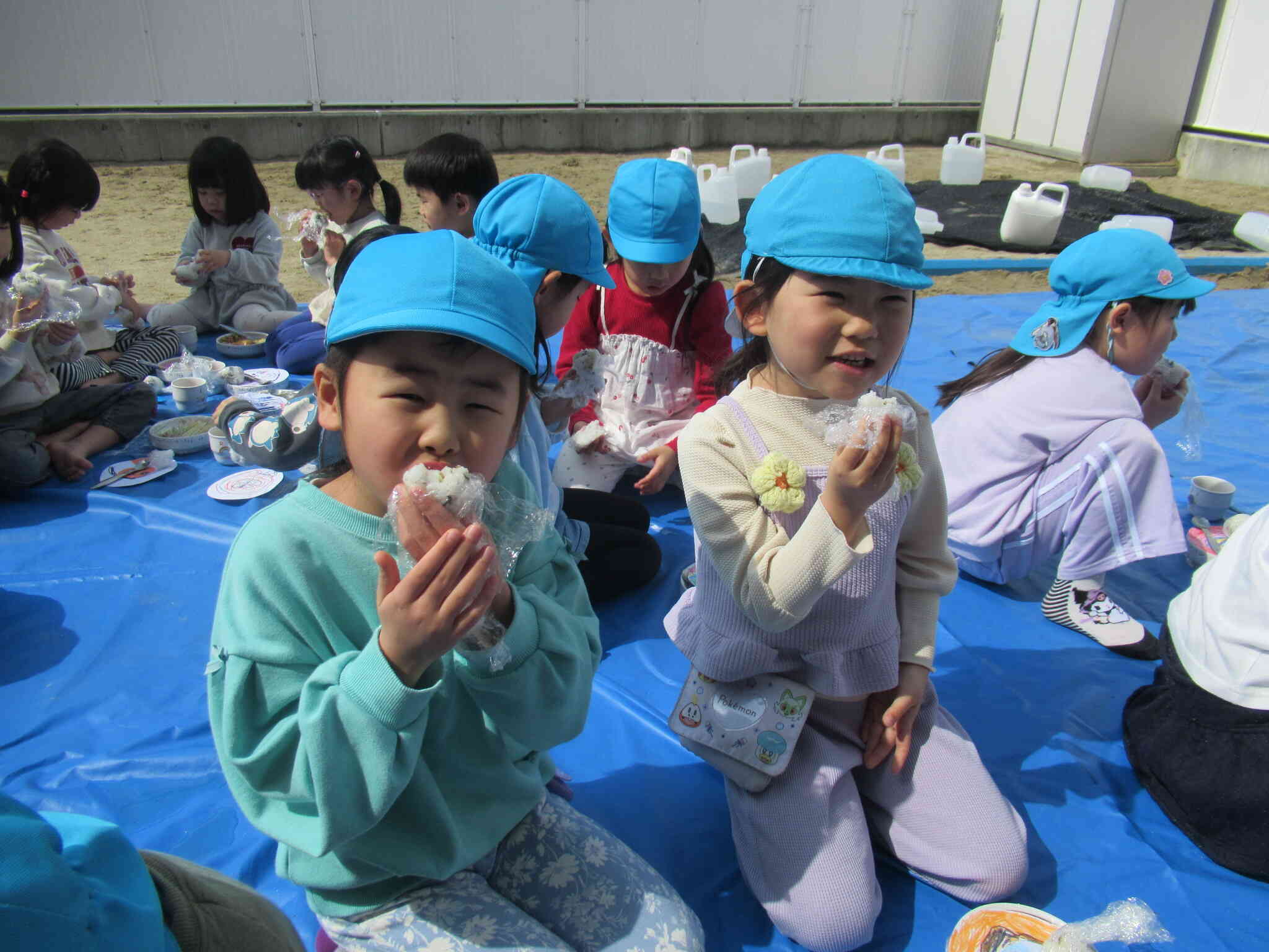 できたら園庭でみんなとお弁当を食べました!