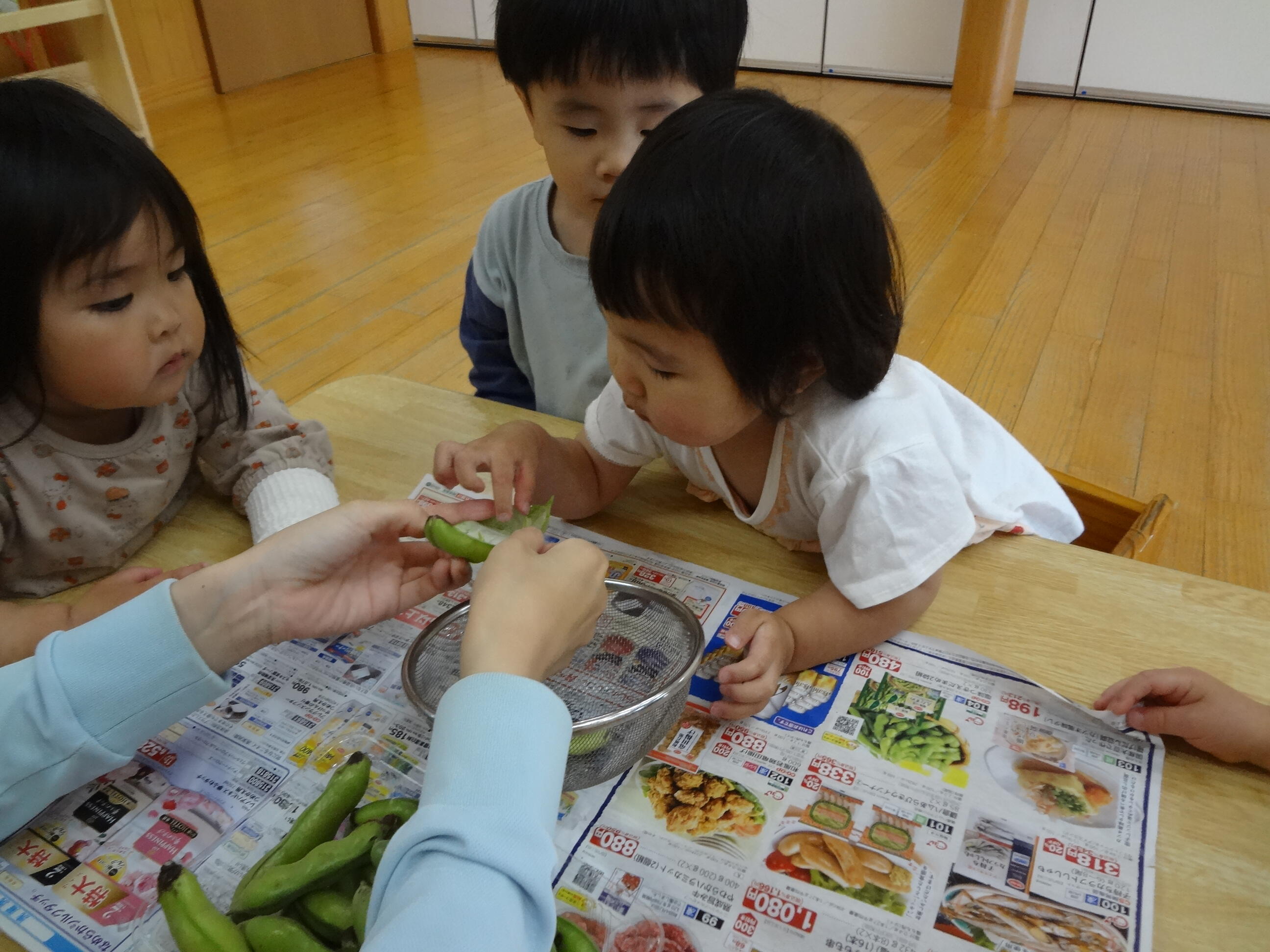自分でむいたそら豆はとってもおいしくてたくさん食べたよ!