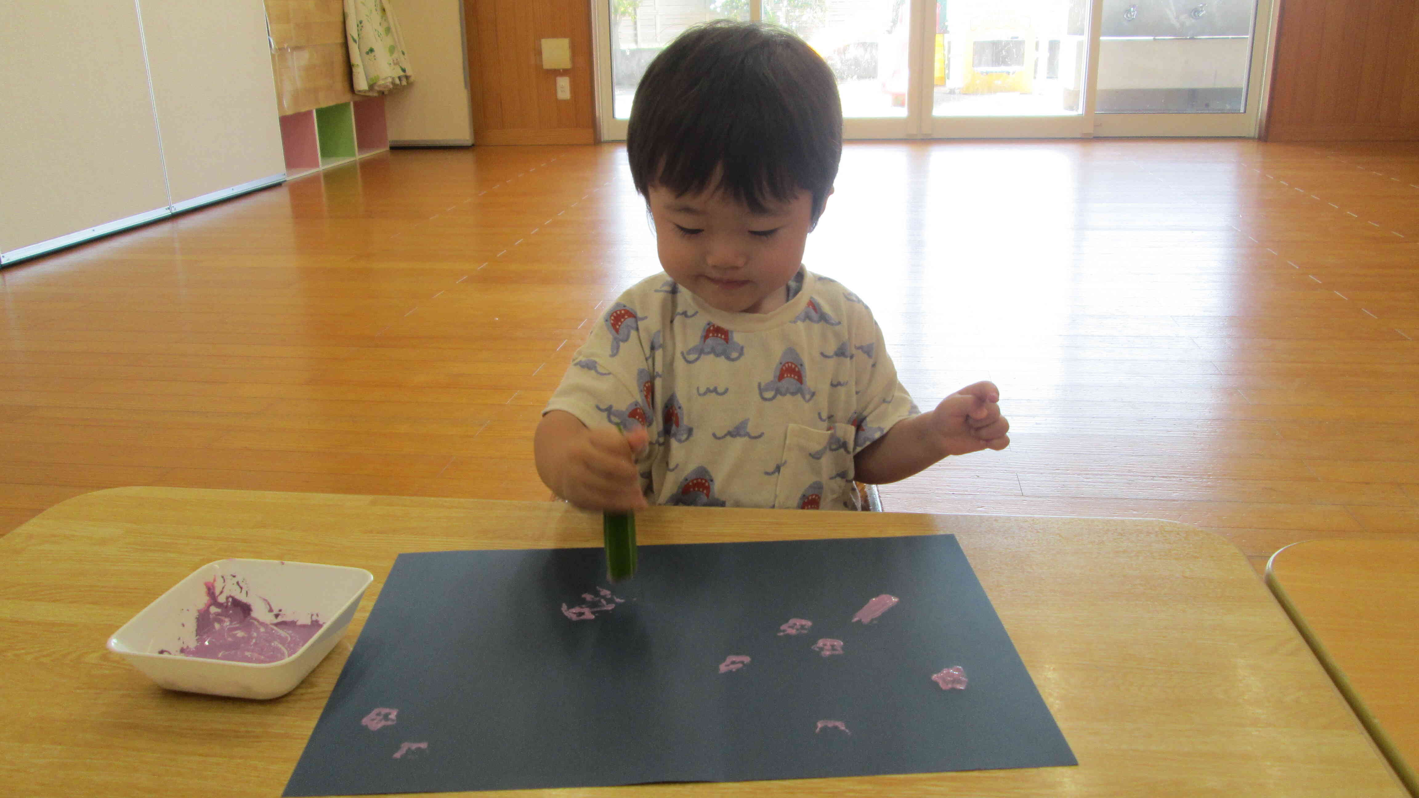 Mちゃんの大好きな色でのスタンプは快調に進んでいきます。