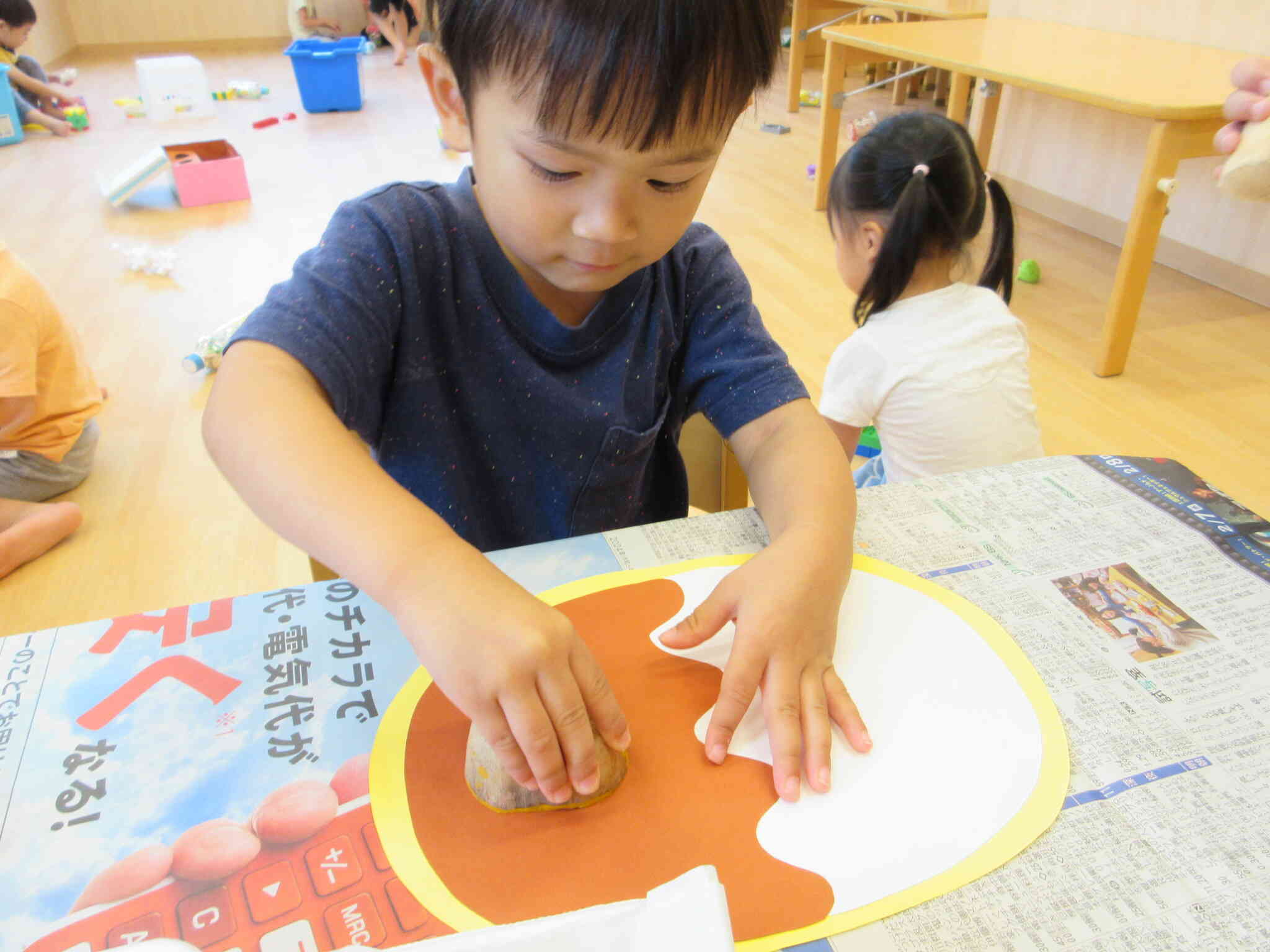 数日前から絵本で野菜スタンプを見て、興味津々だったみんな。