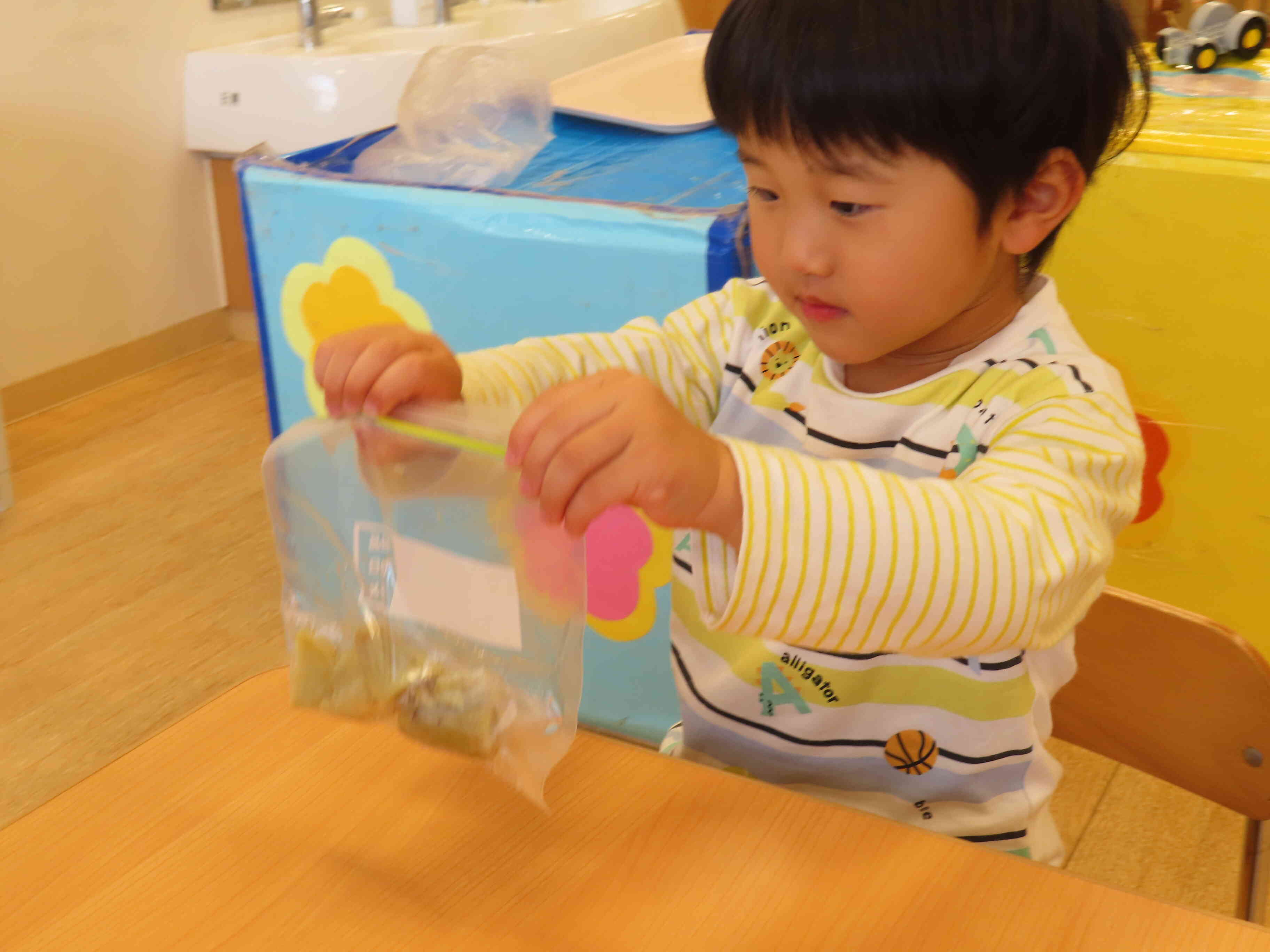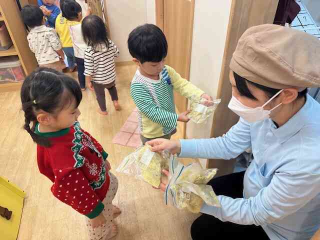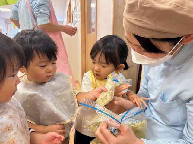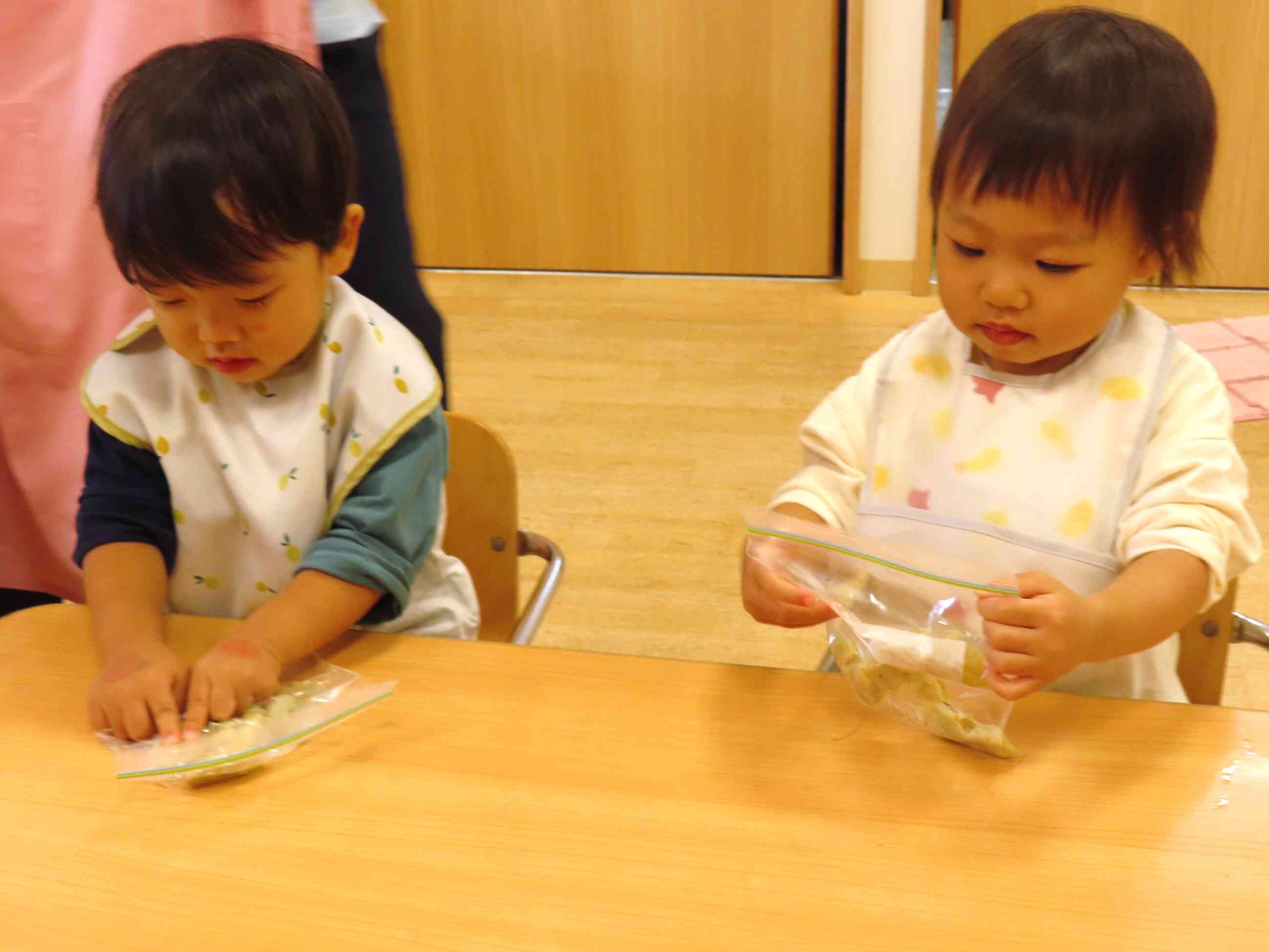 食育活動(さつまいもつぶし:あひる組・うさぎ組)