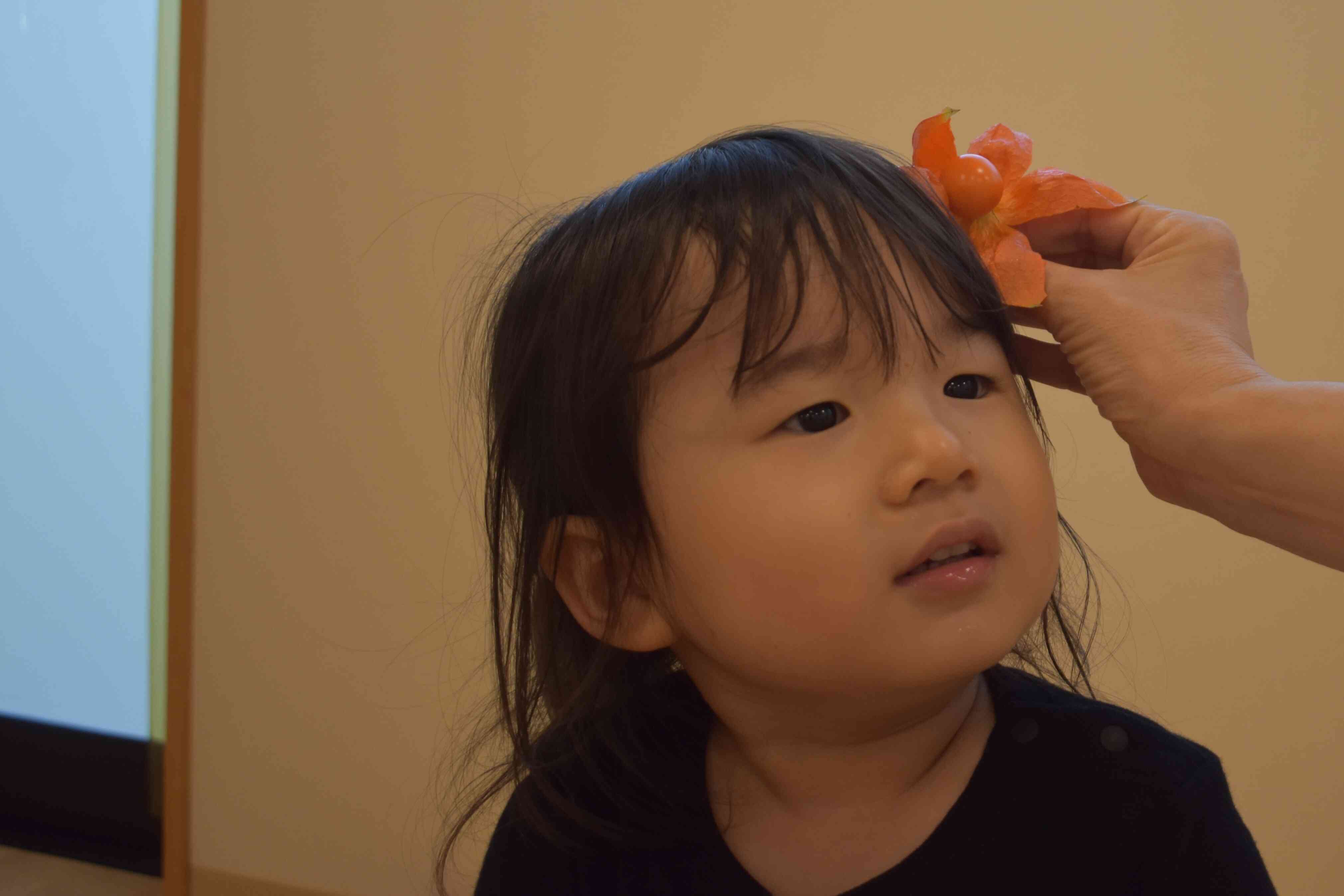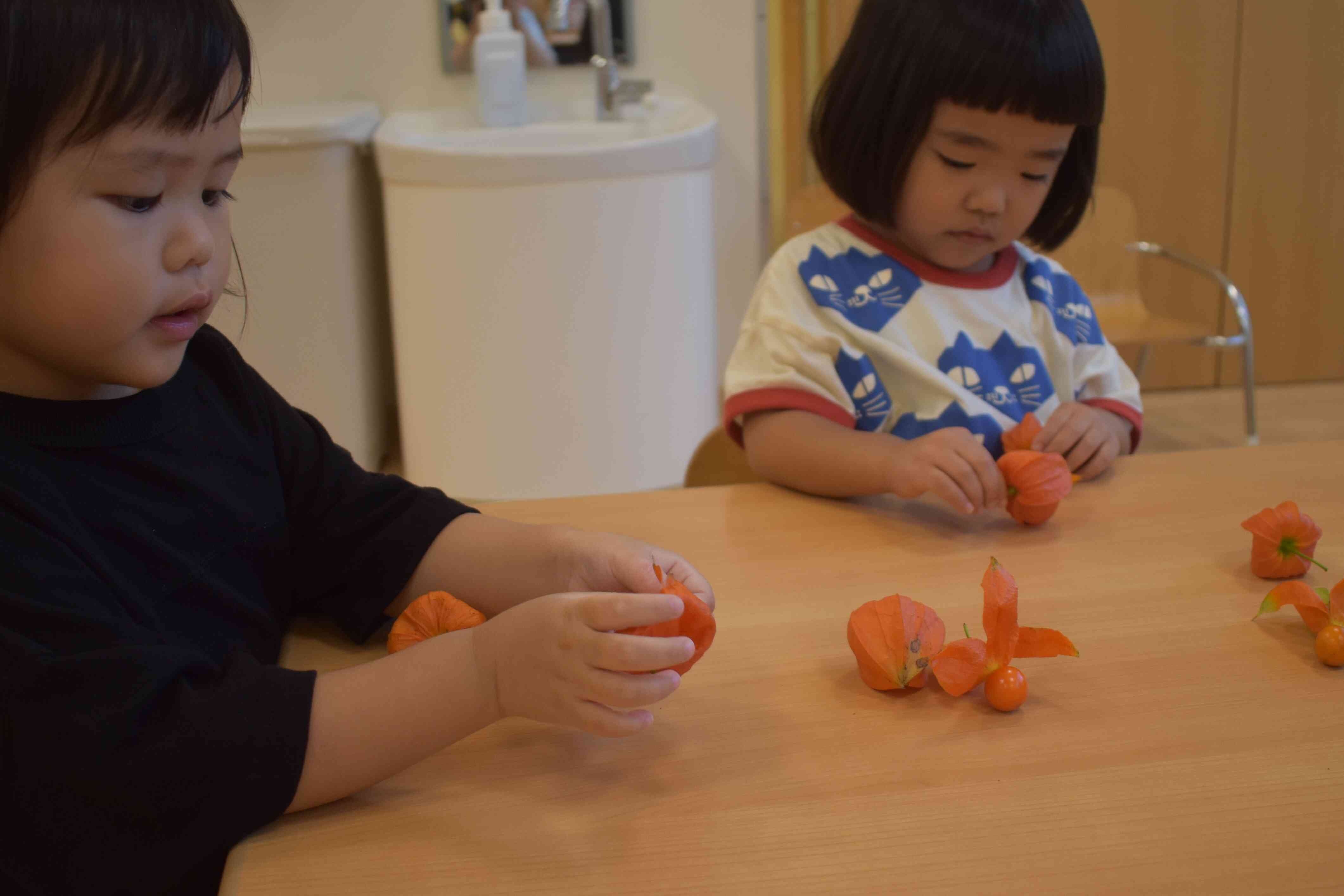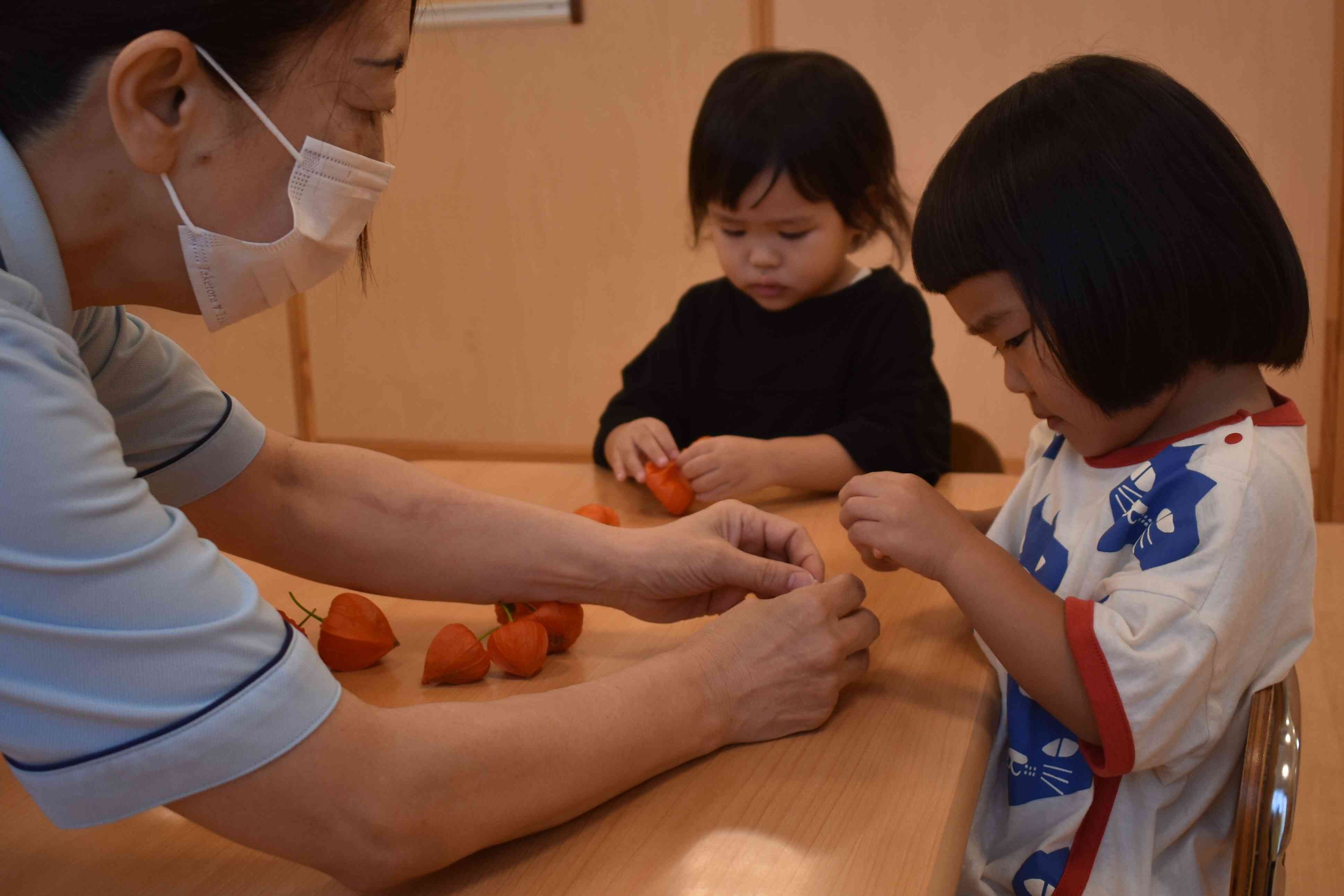 ほうずきを子どもたちに見せてみると、「風船みたい」「ちょうちんみたい」と声が聞こえます。