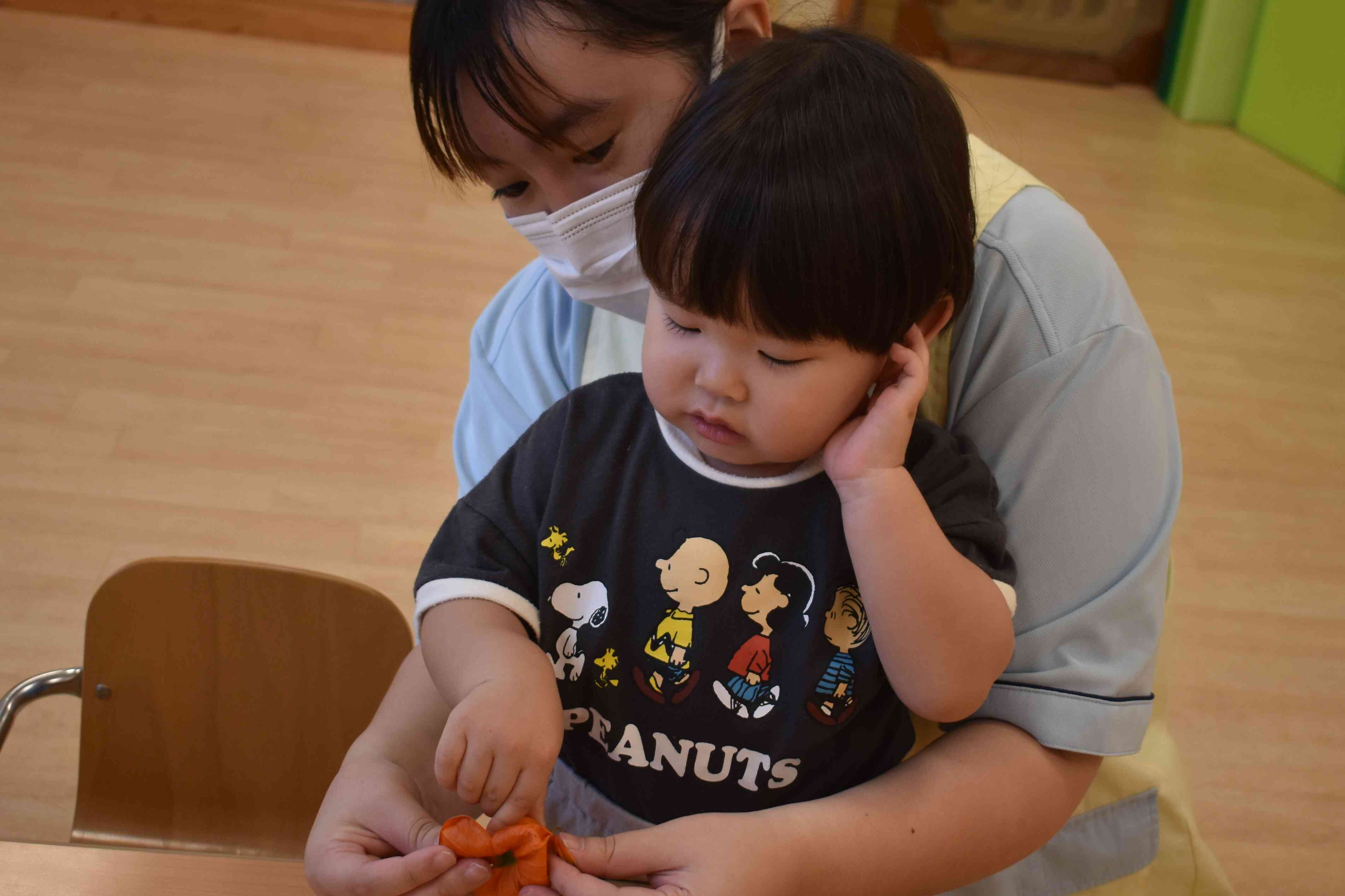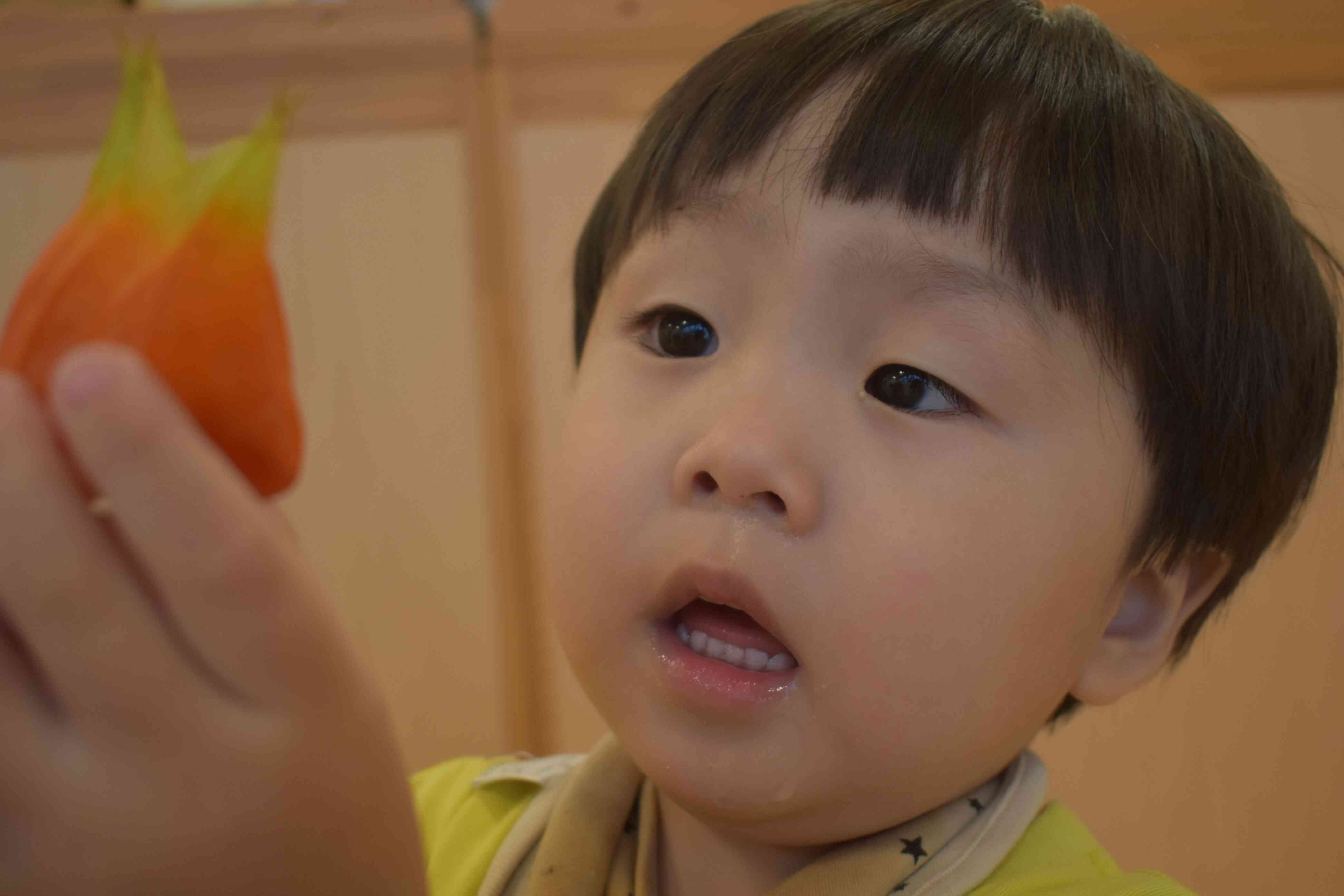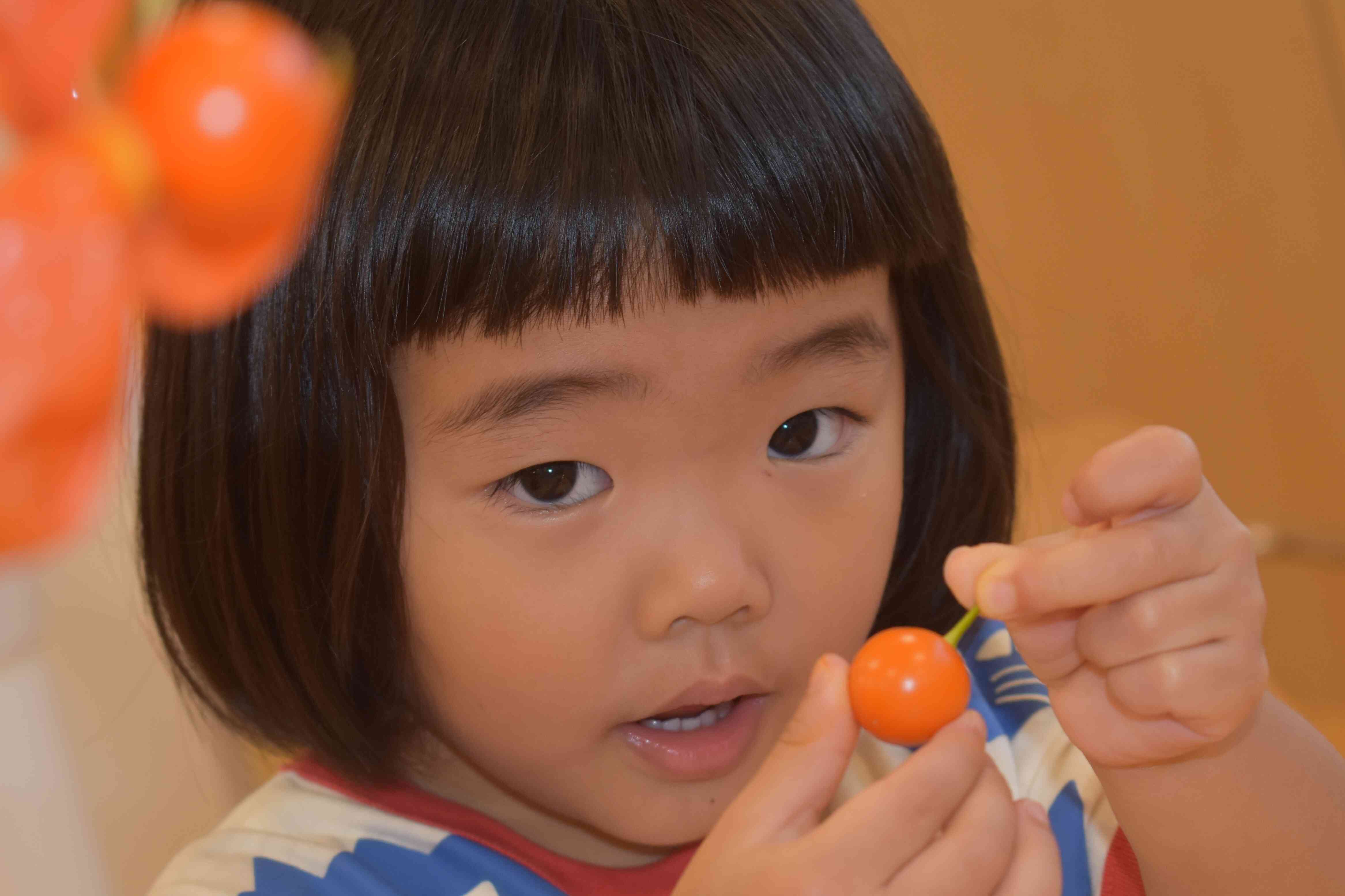 ほうずきを子どもたちに見せてみると、「風船みたい」「ちょうちんみたい」と声が聞こえます。