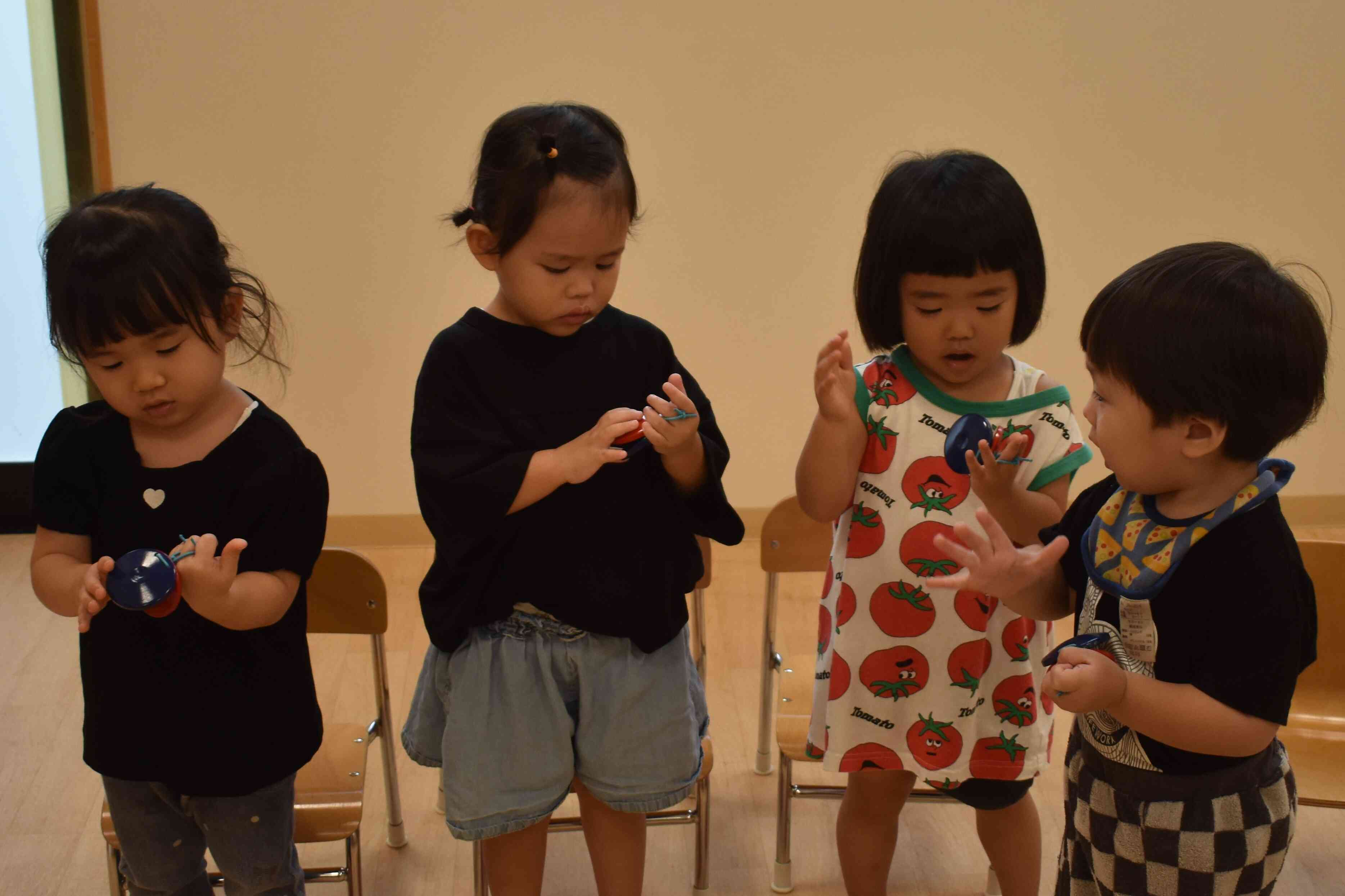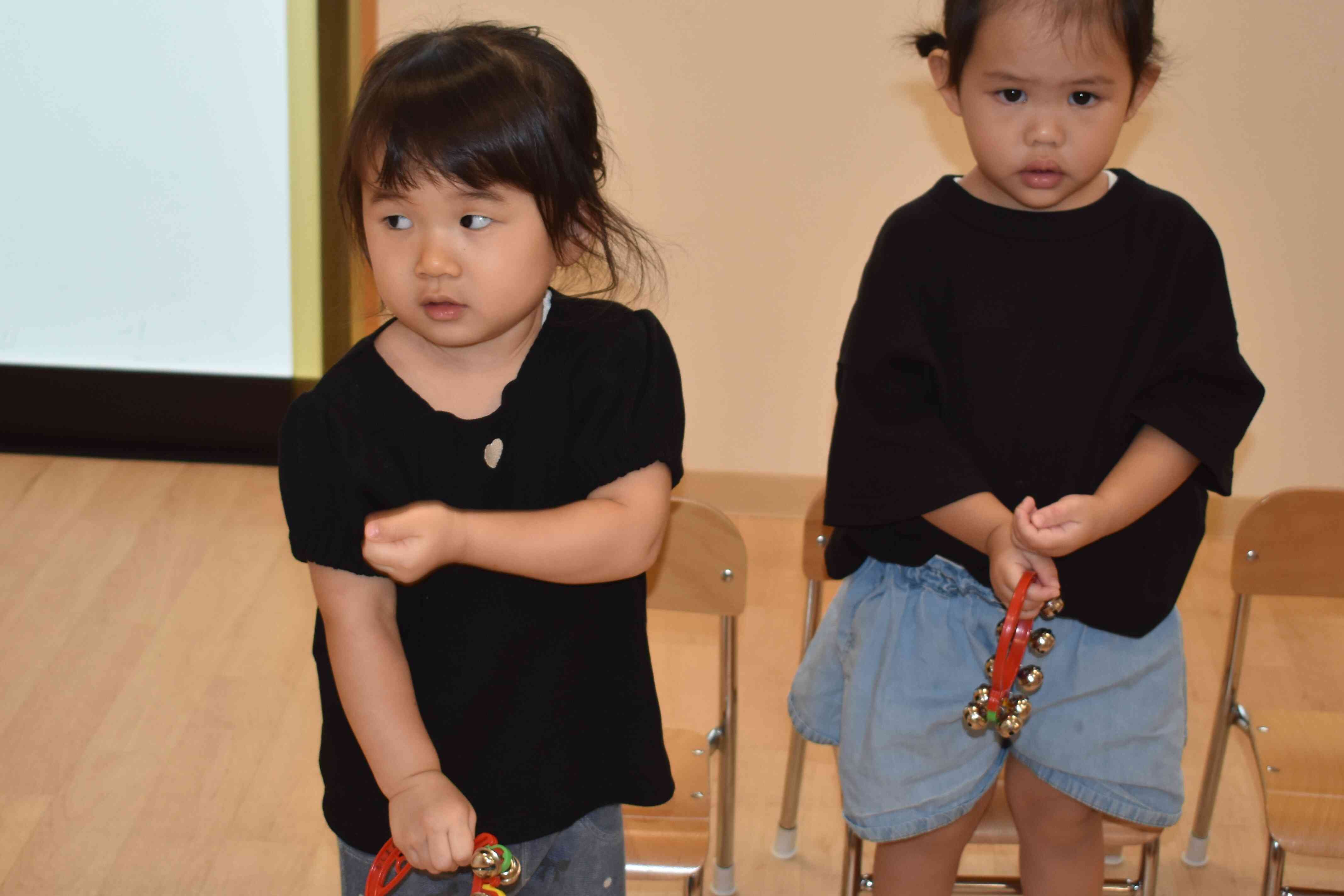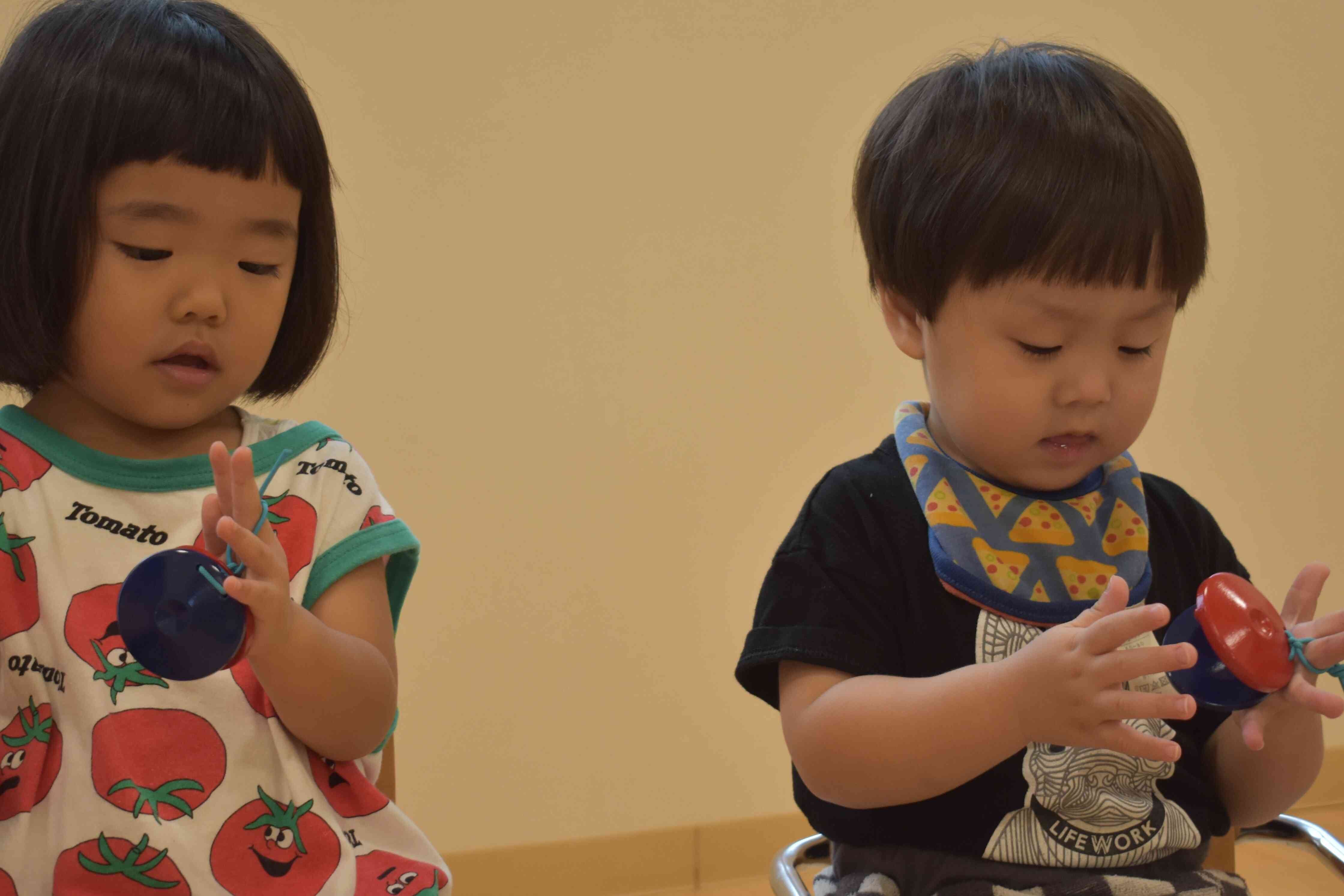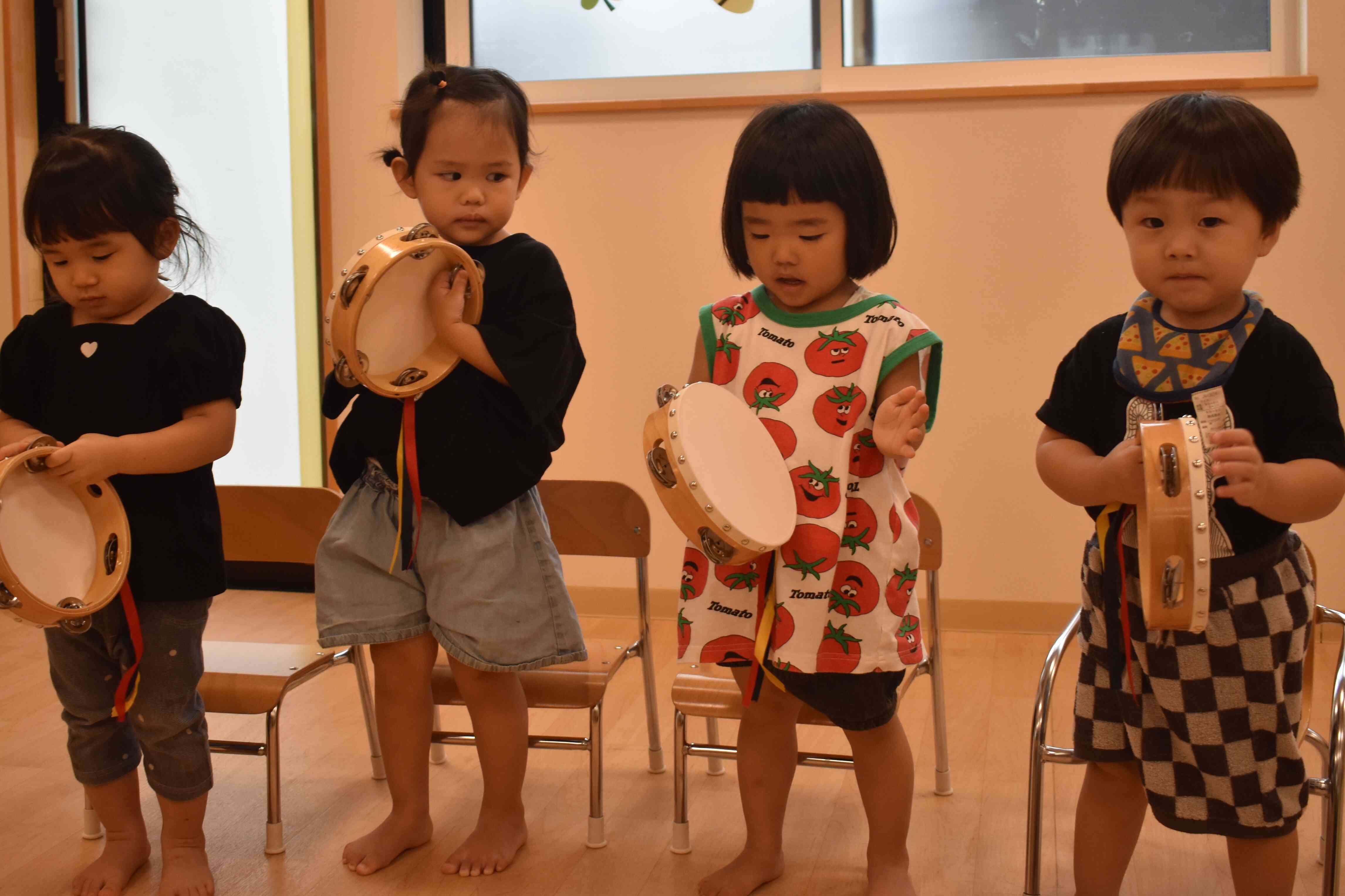 タンバリンやカスタネット、スズを鳴らしてみて