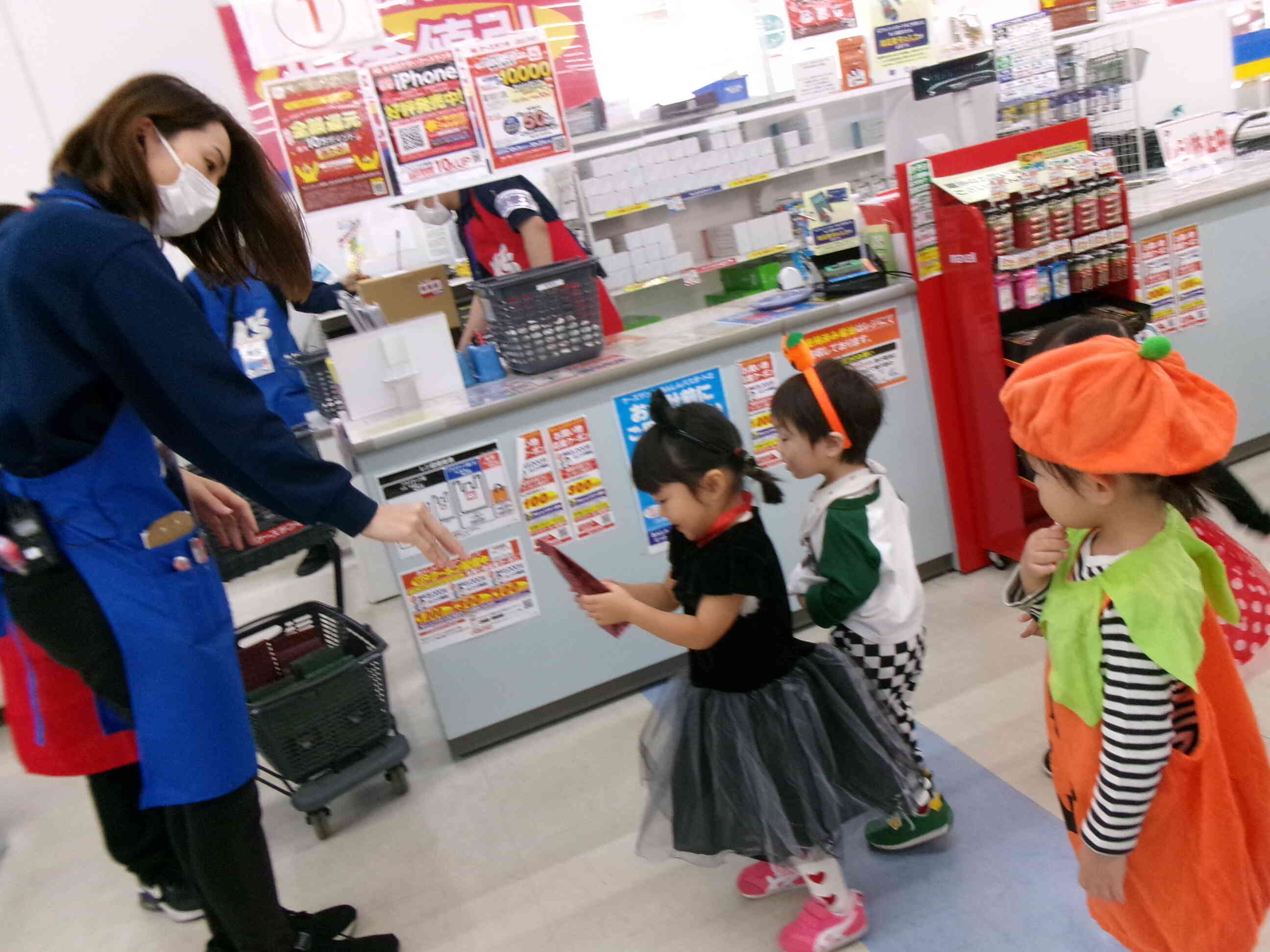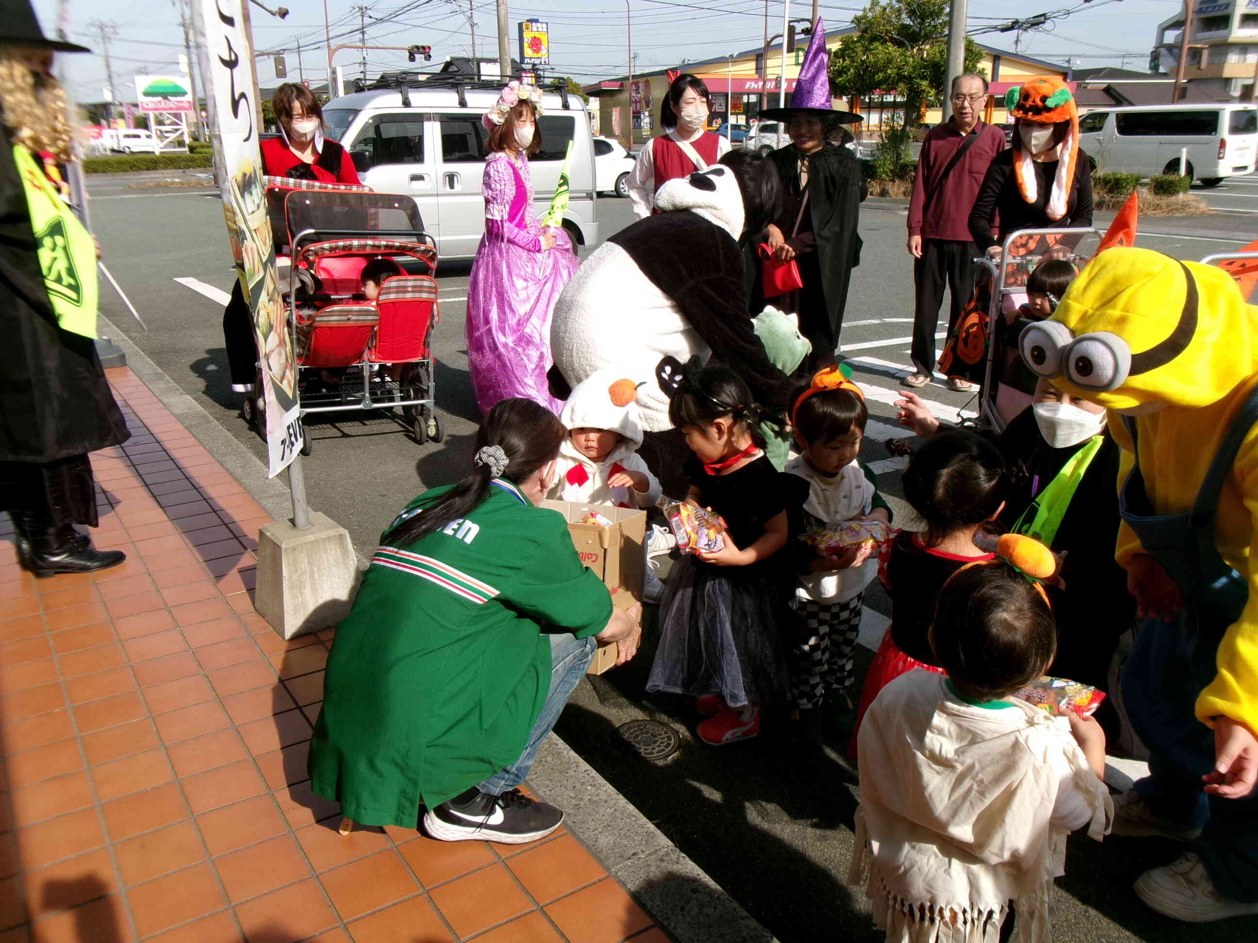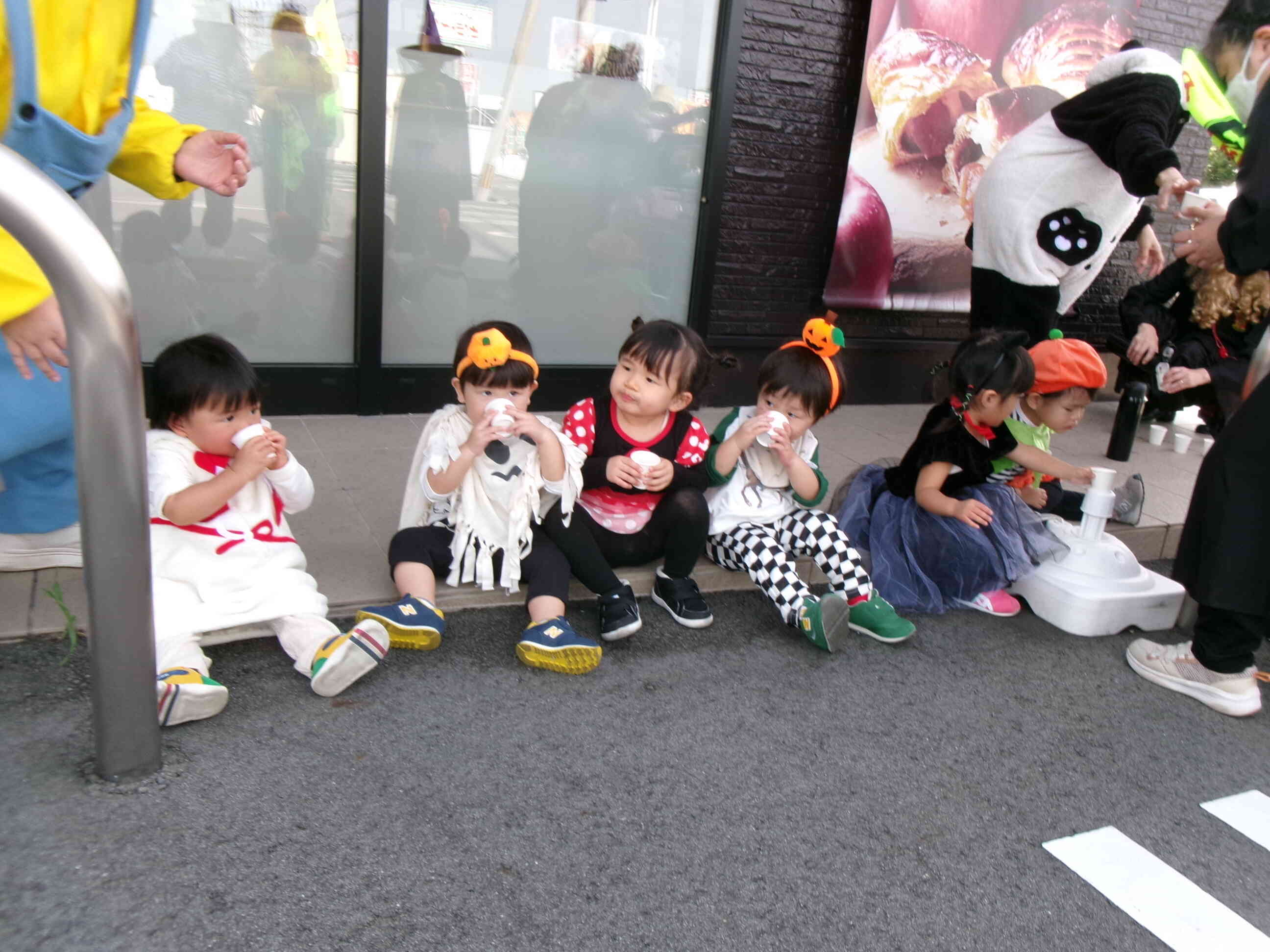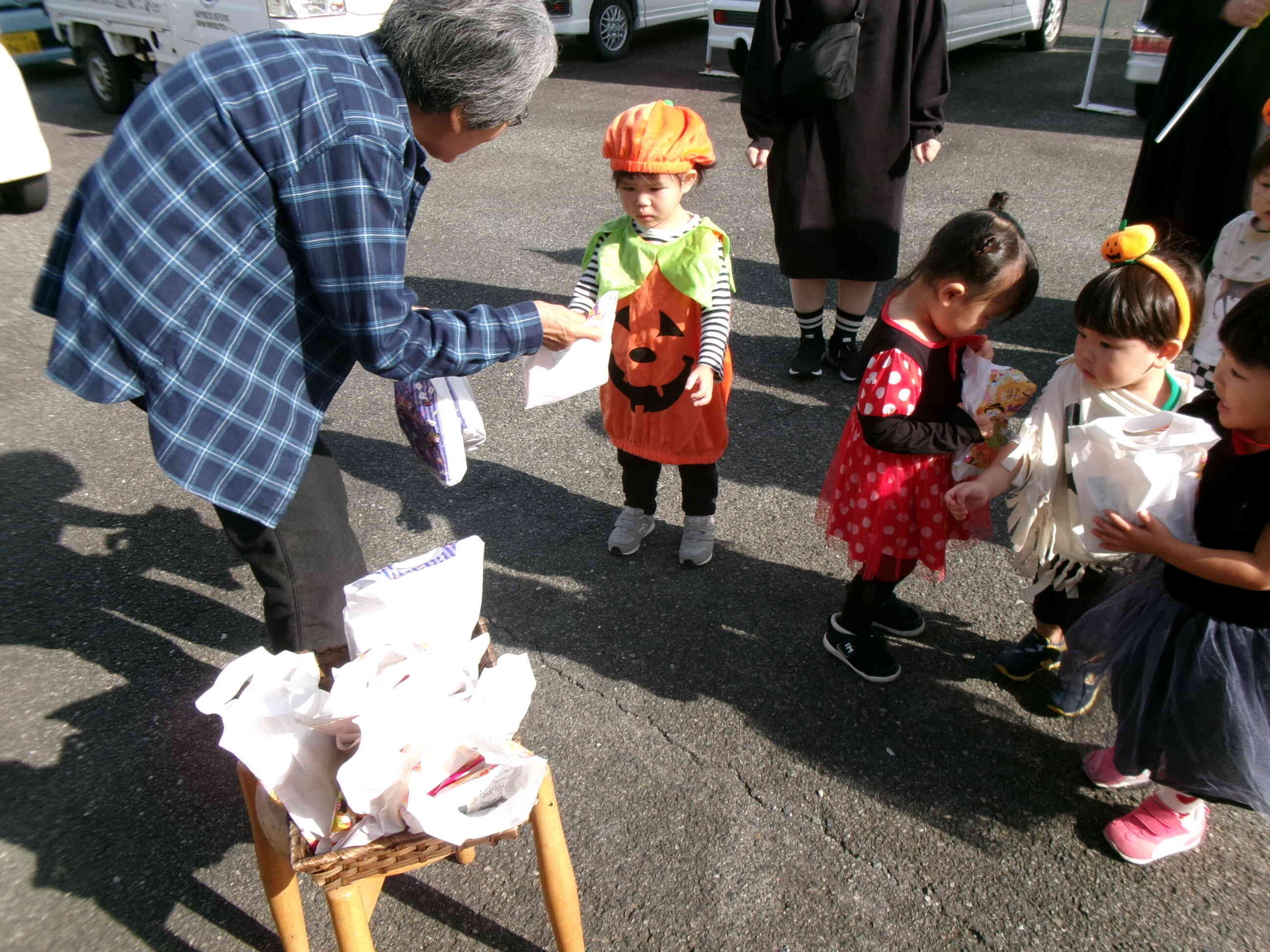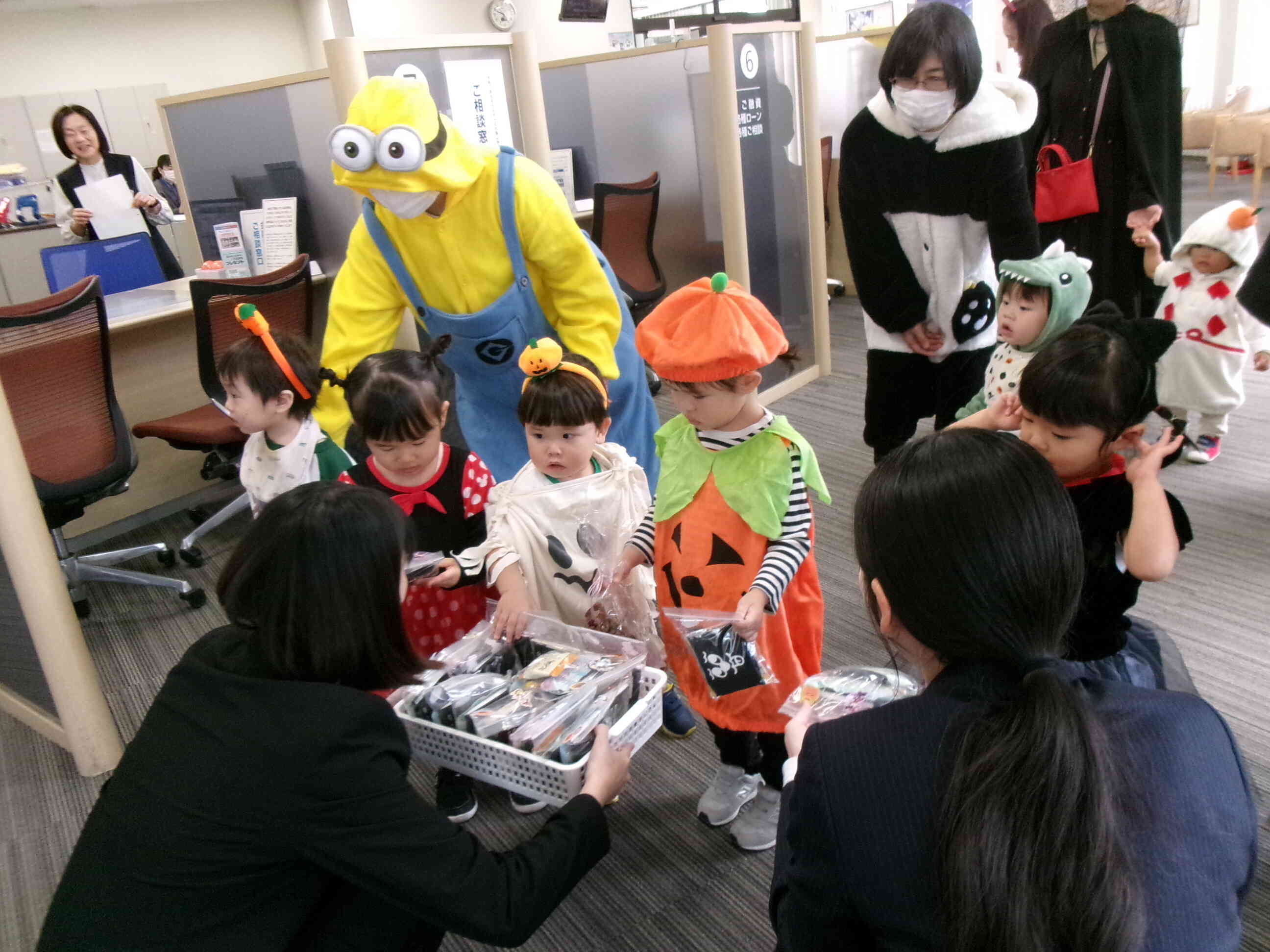 銀行では、行員の方々が子どもたちに一人ひとりに「かわいいね」と言いながらおかしを手渡してくださいました。