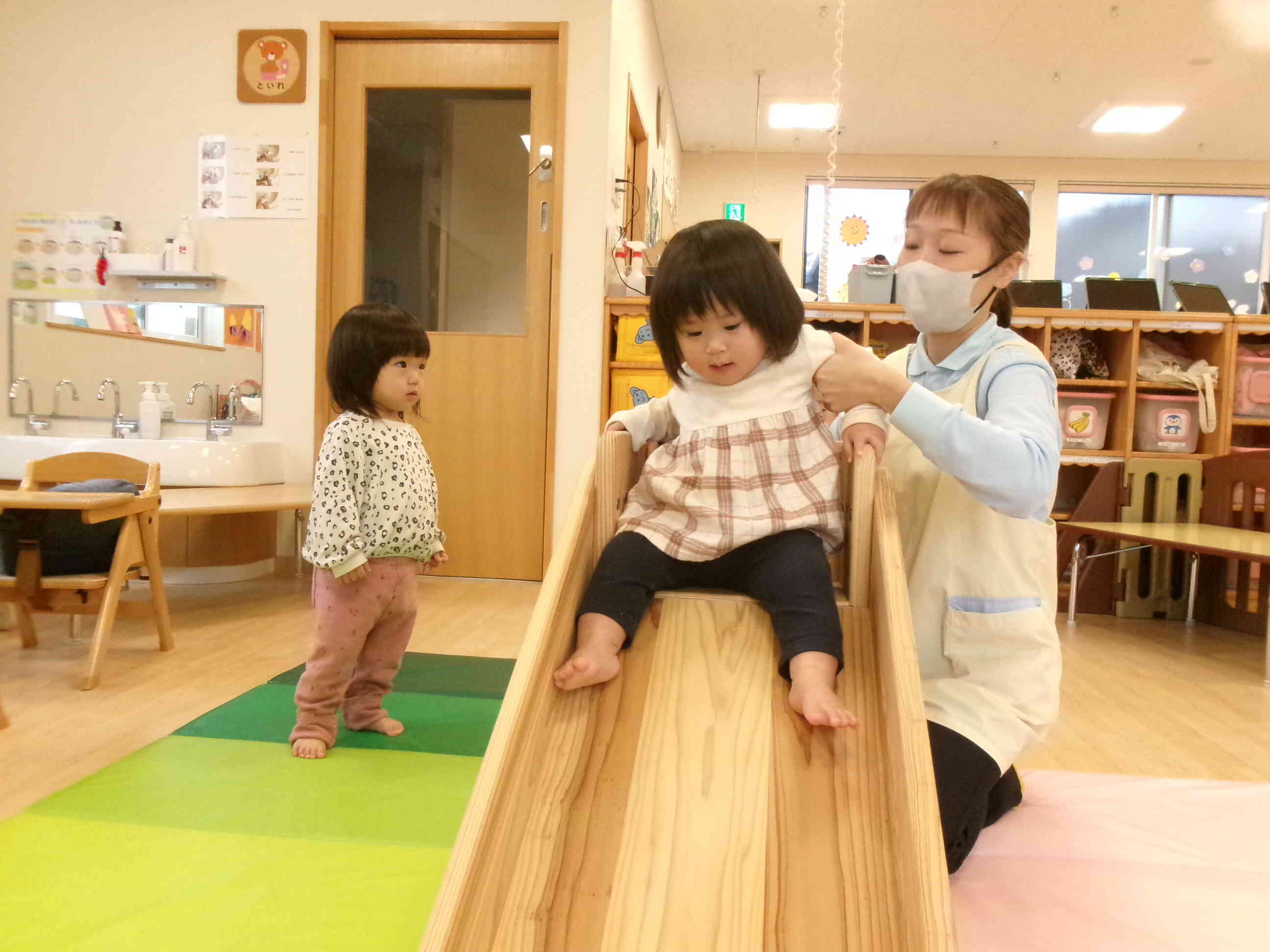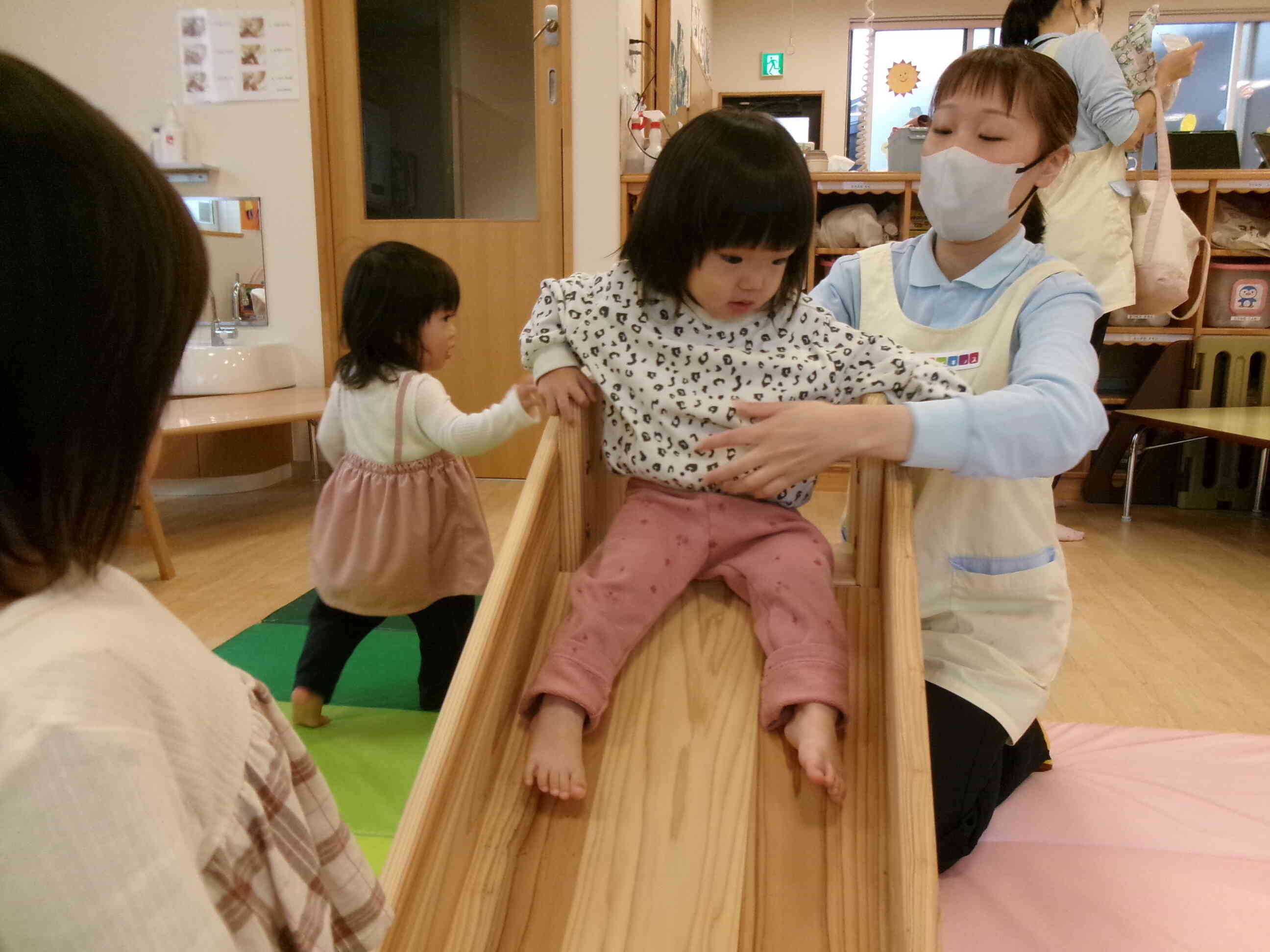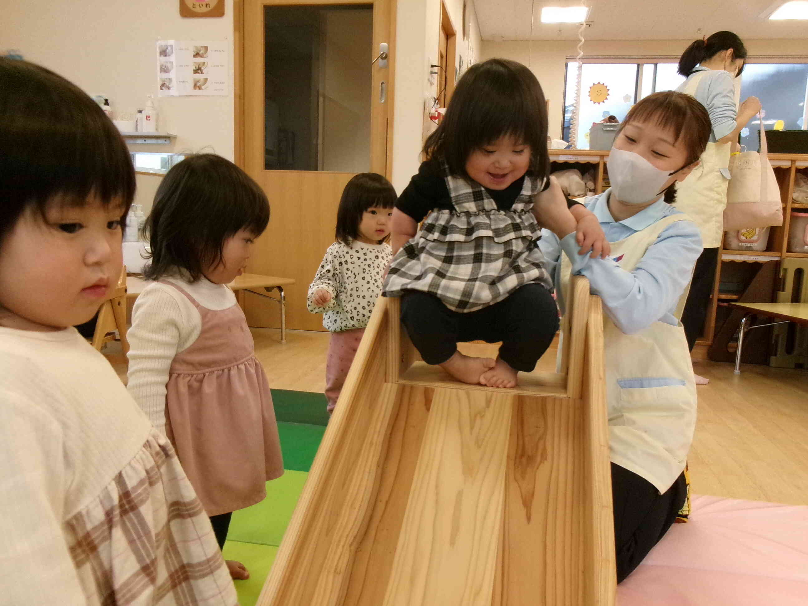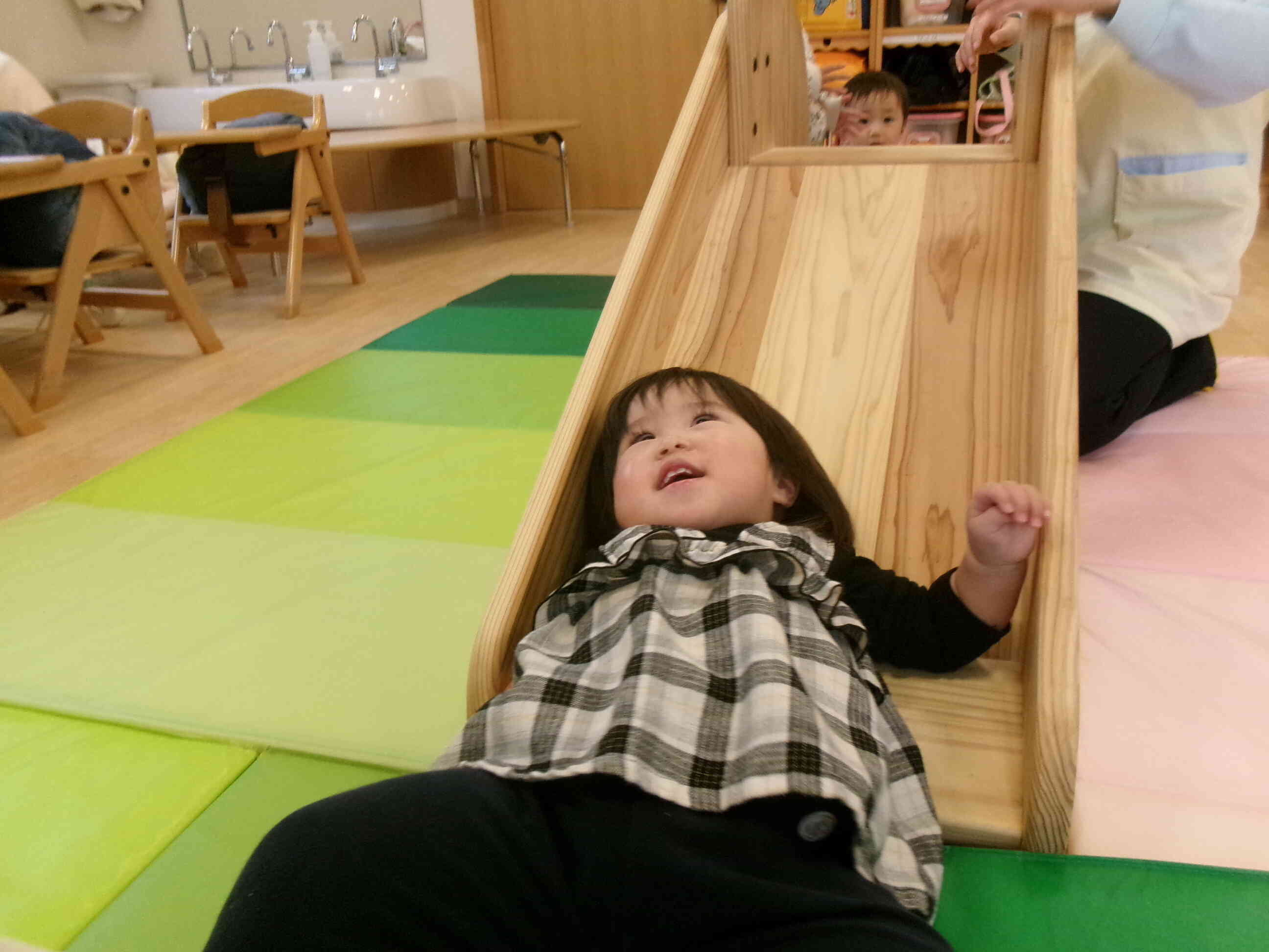 順番に階段を登って先生に支えられながらシューと滑ります。