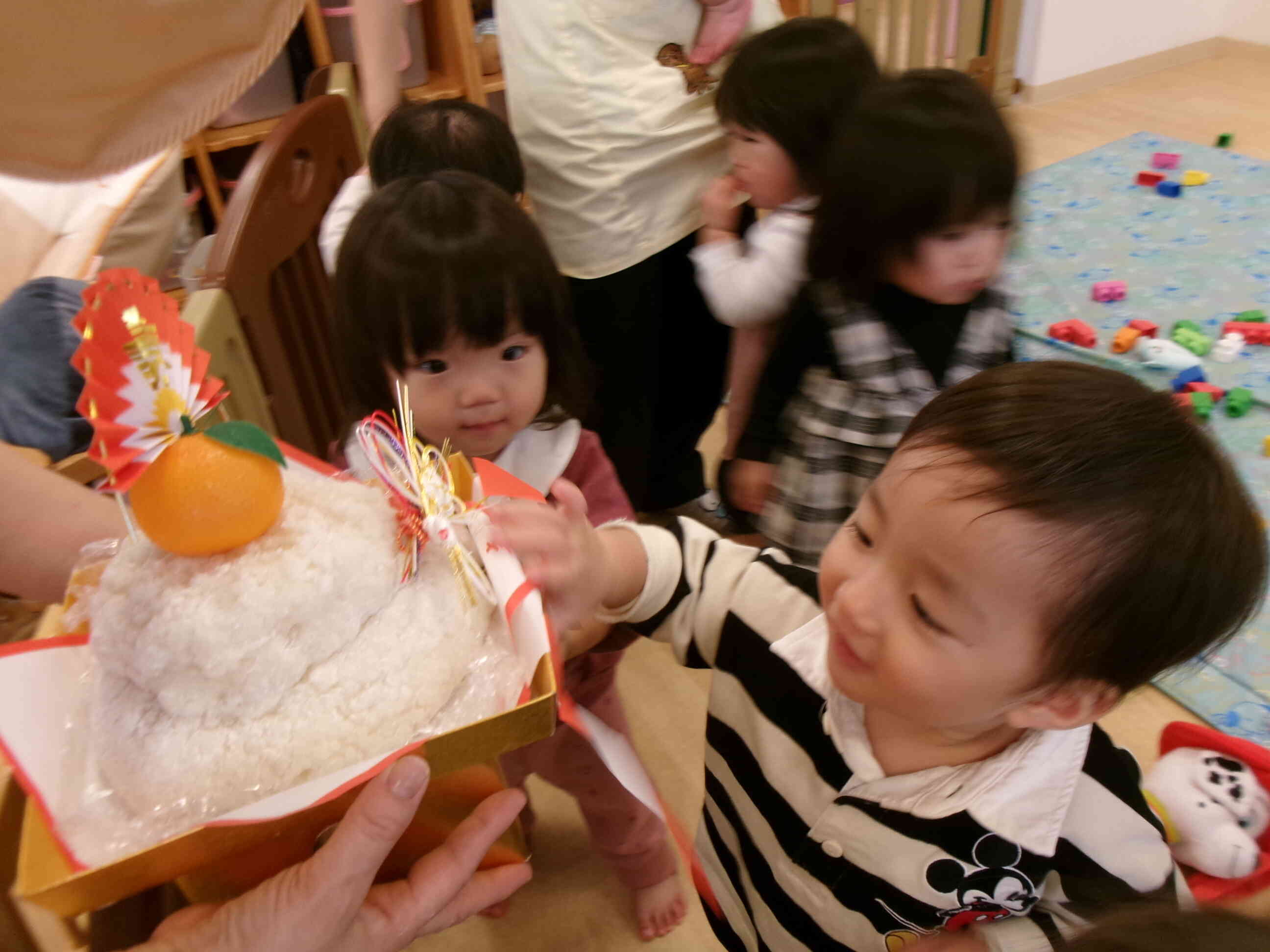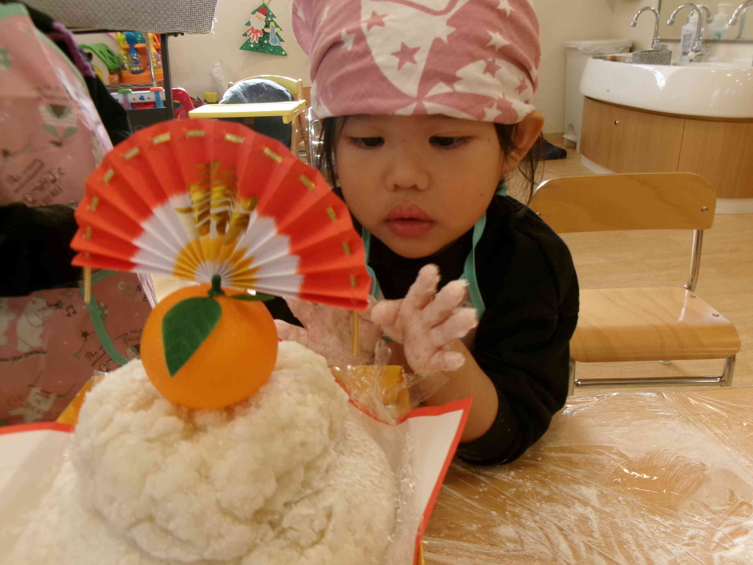 最後は先生に手伝ってもらい飾りをつけると、立派な鏡餅ができました。