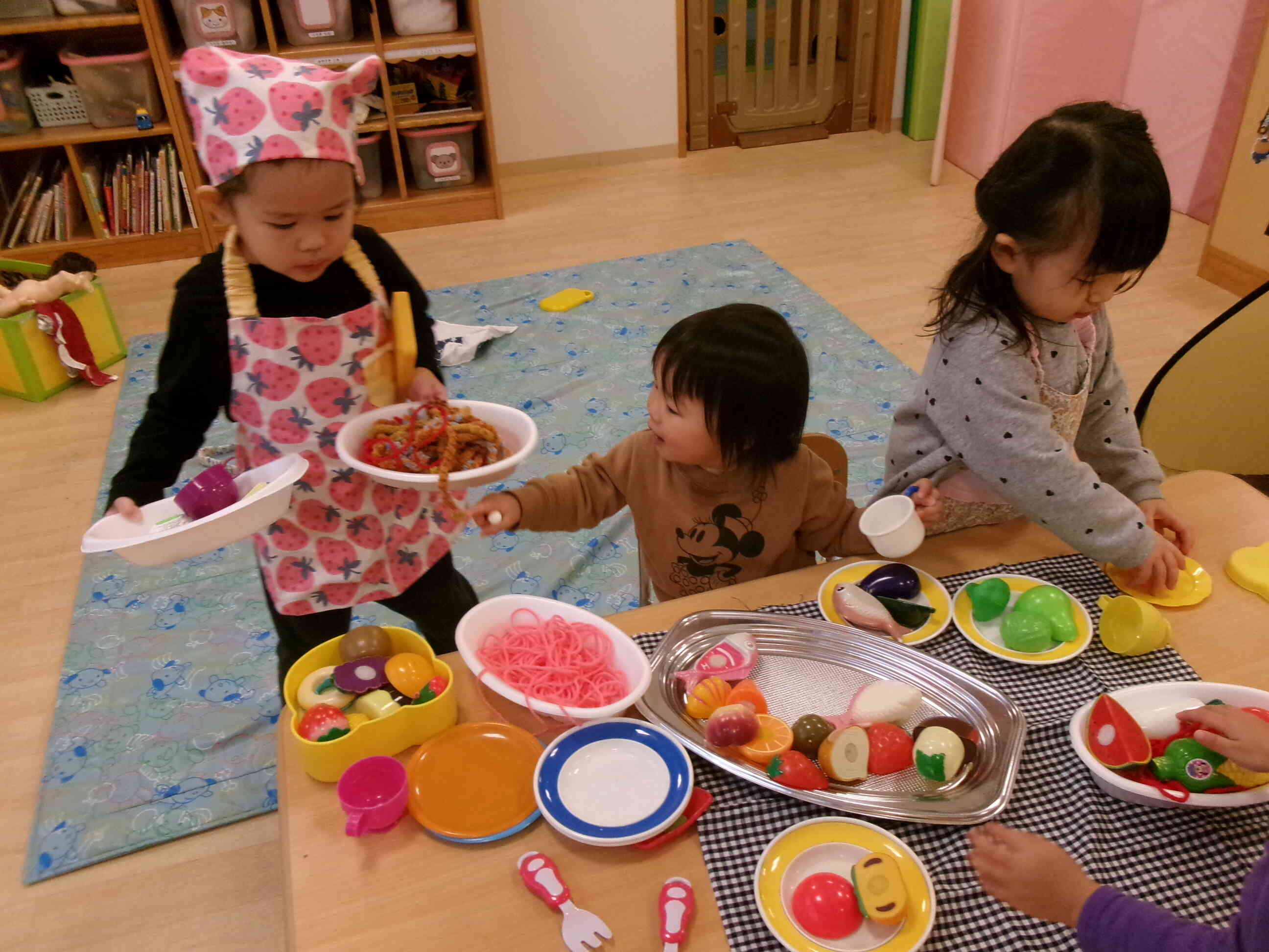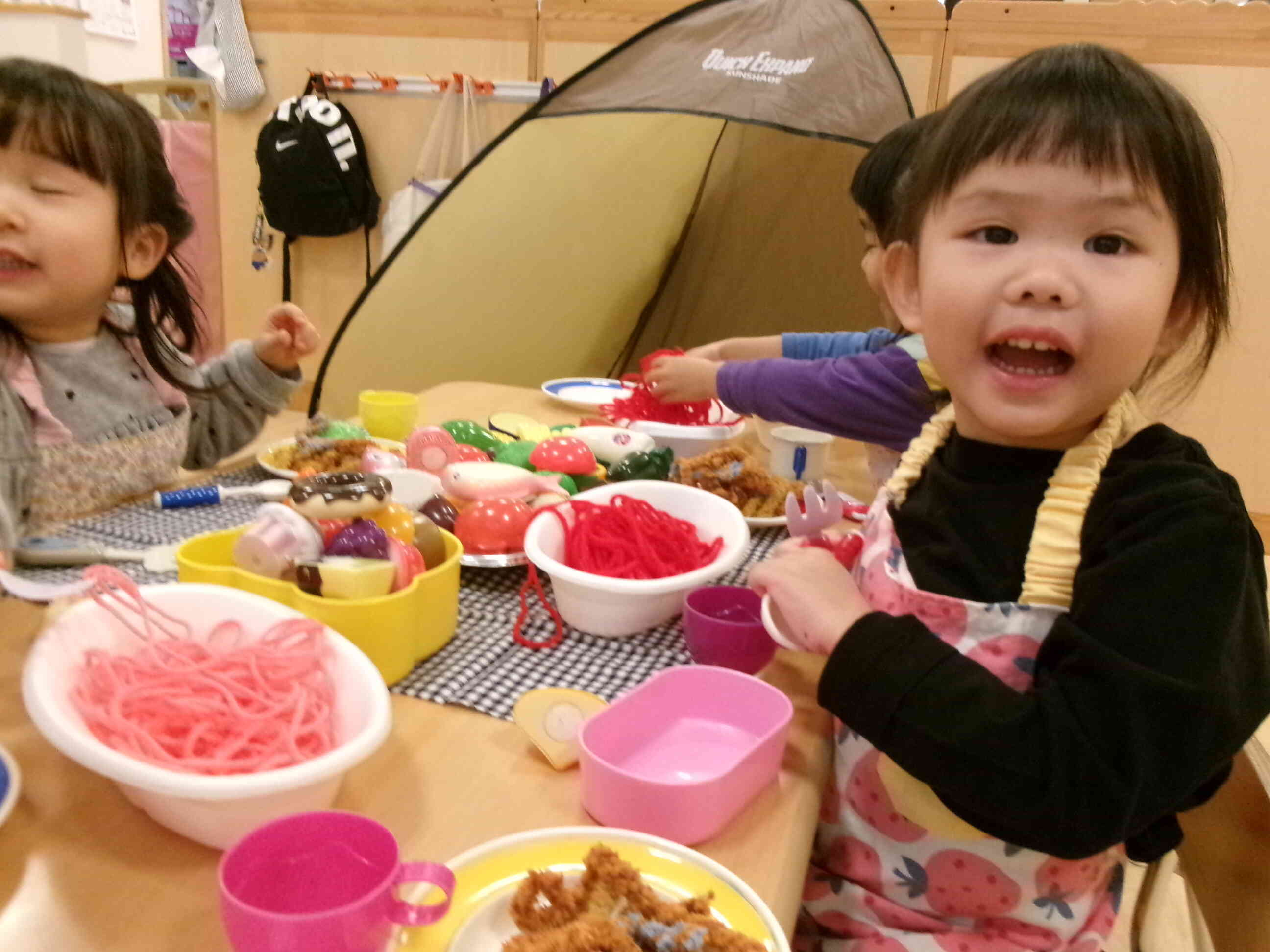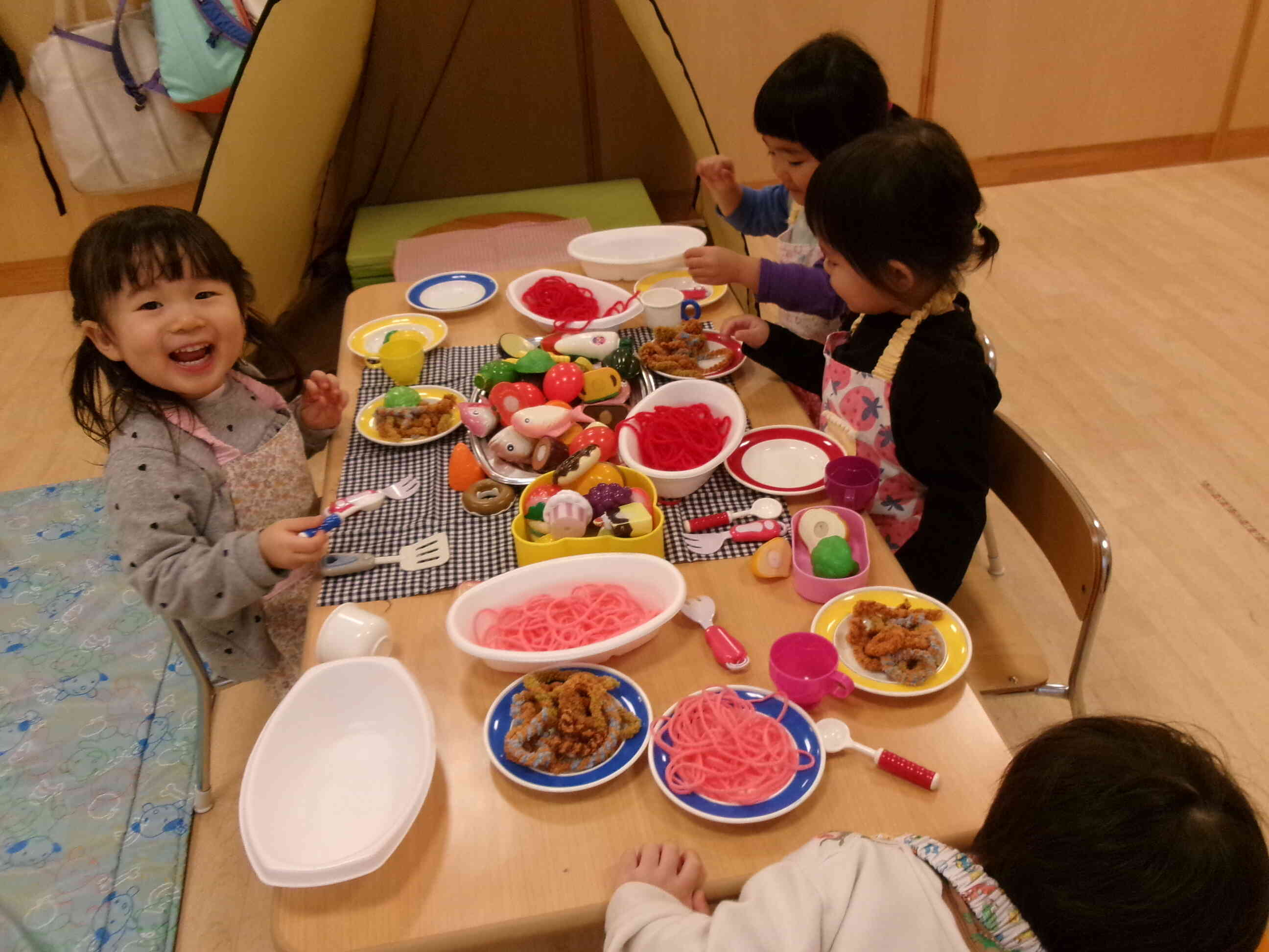 色とりどりのおいしそうなお料理がテーブルに並ぶと子どもたちの顔にも笑顔があふれます。