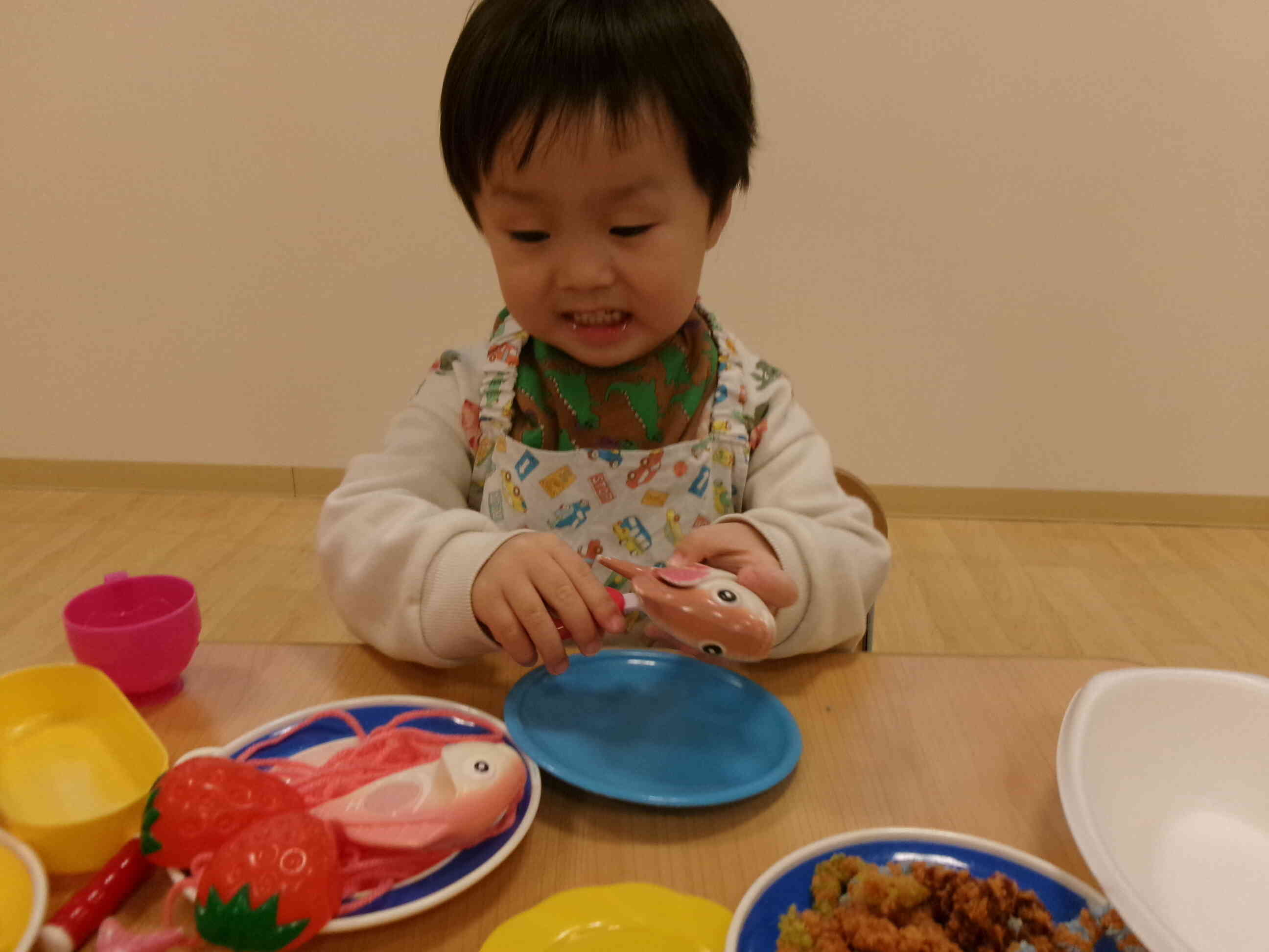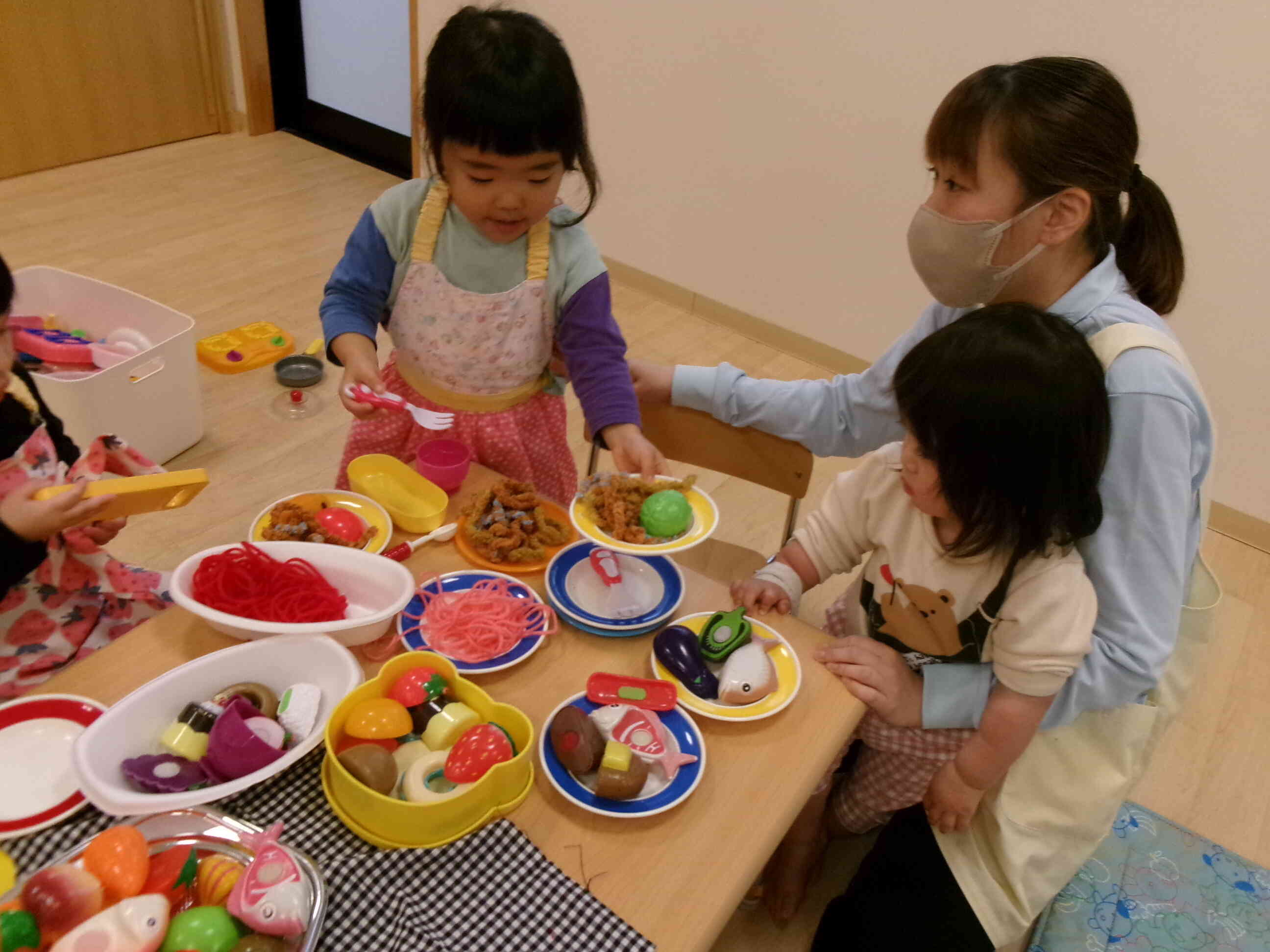 楽しいことは分かち合いたくて、0歳児さんにも「一緒に遊ぼう」と声をかけてくれる優しさも見せてくれました。