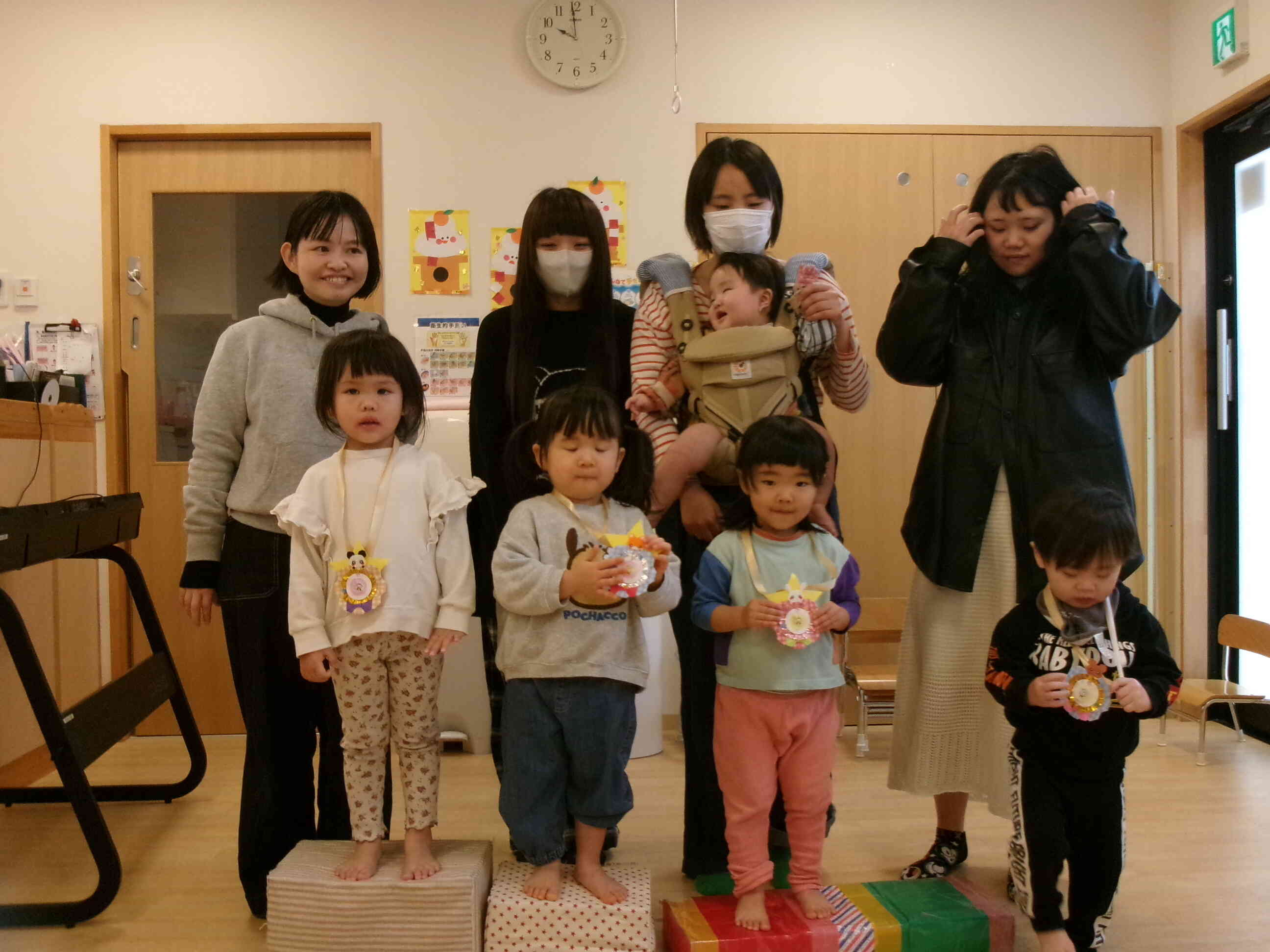 表彰式では、手作りメダルを首にかけてもらい嬉しそうでした。