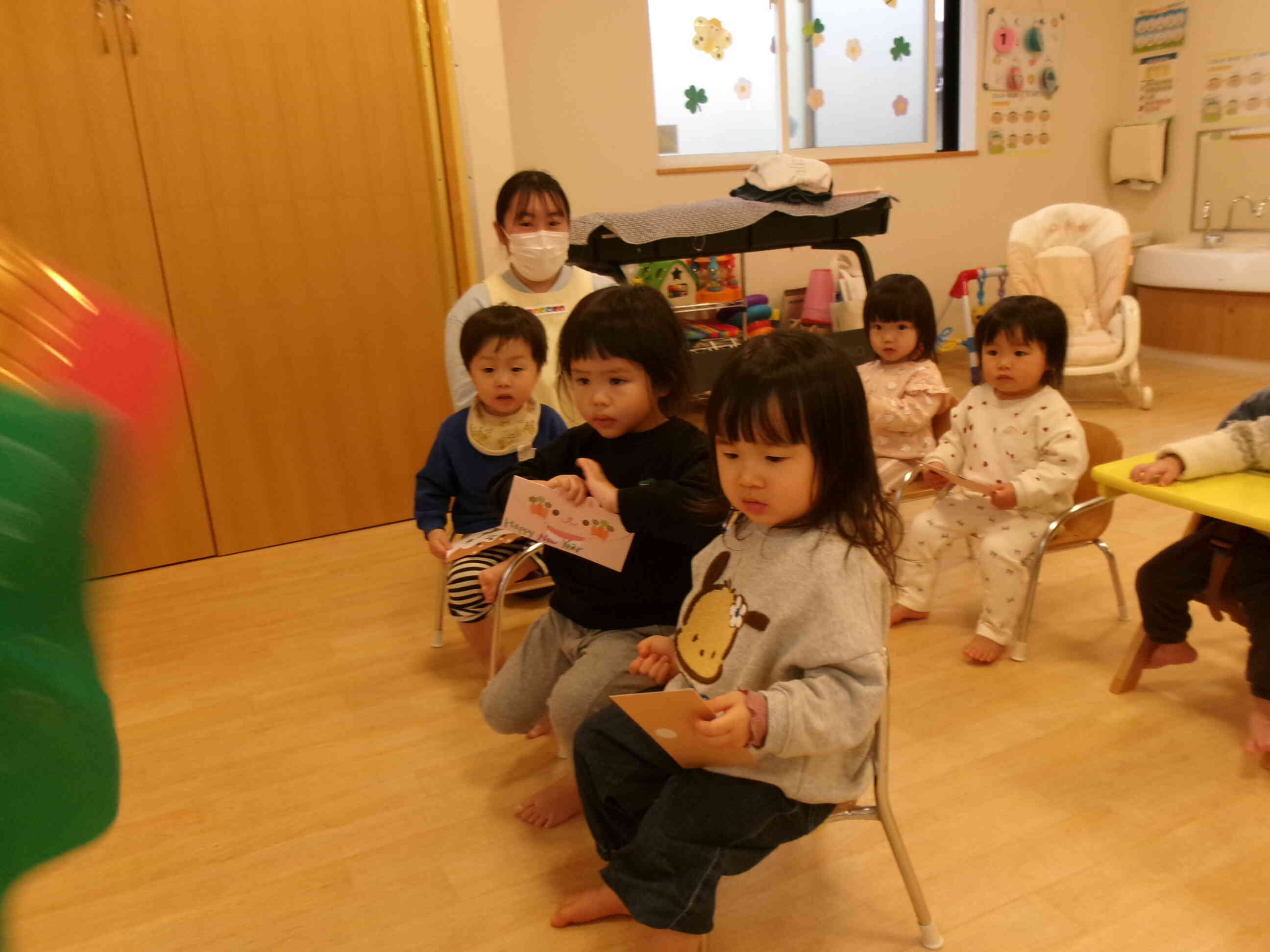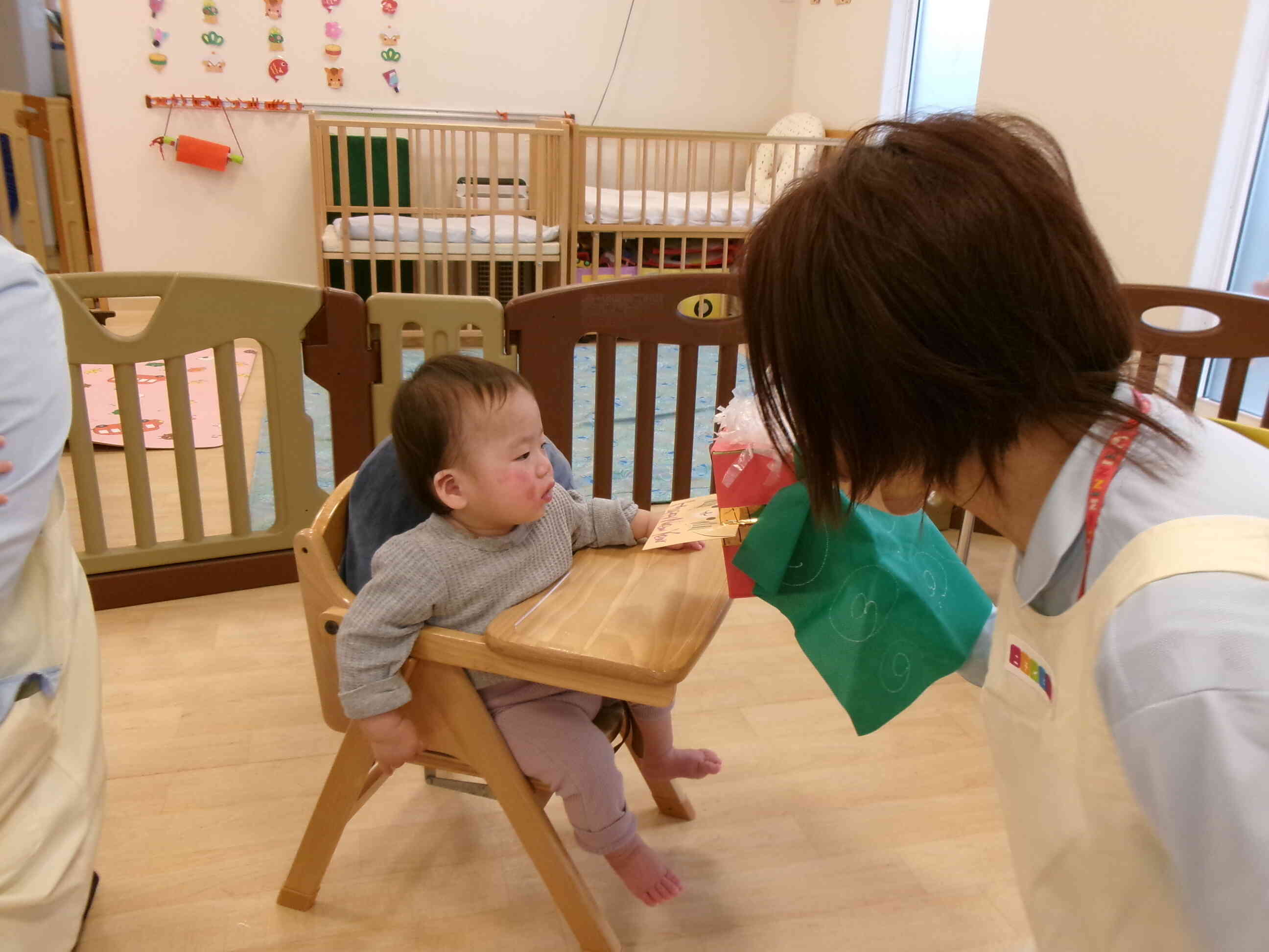 1人ずつ獅子舞が子どもたちの健康を祈りながら渡していきます。