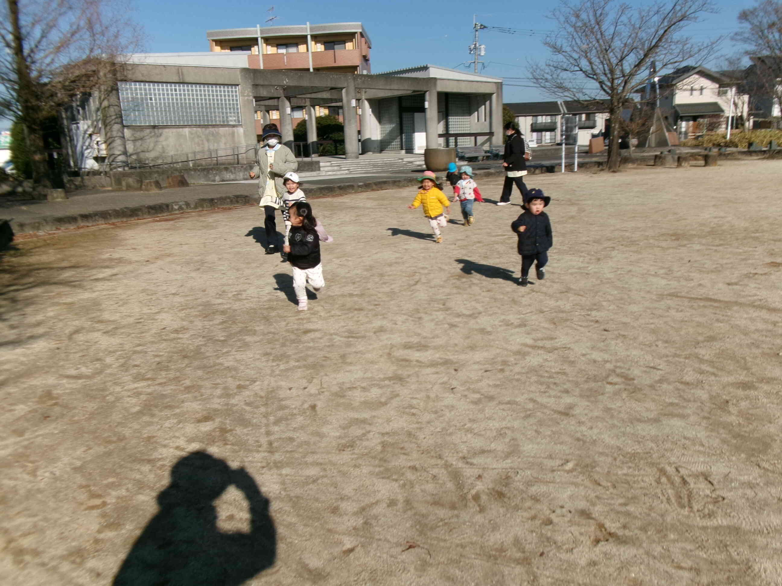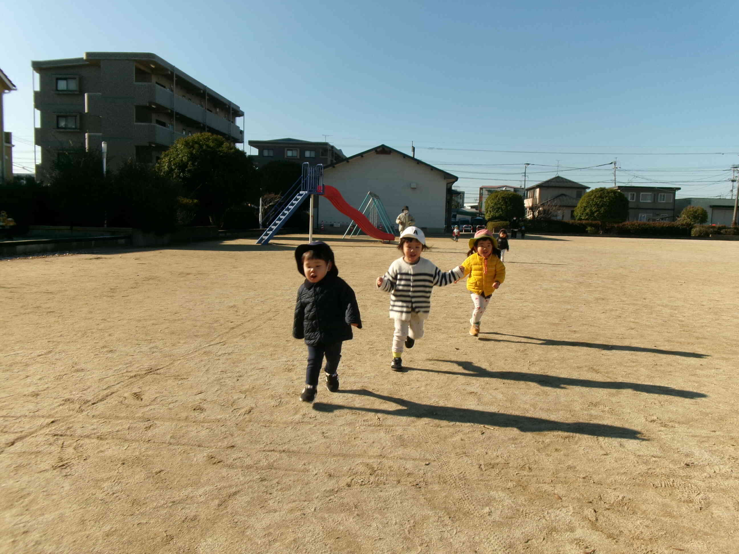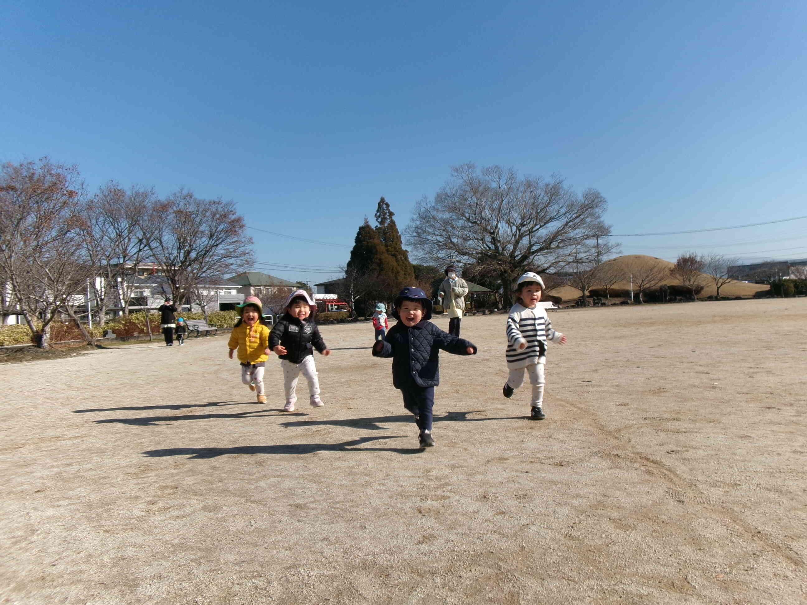 公園に出かけるとみんなでかけっこをします。
