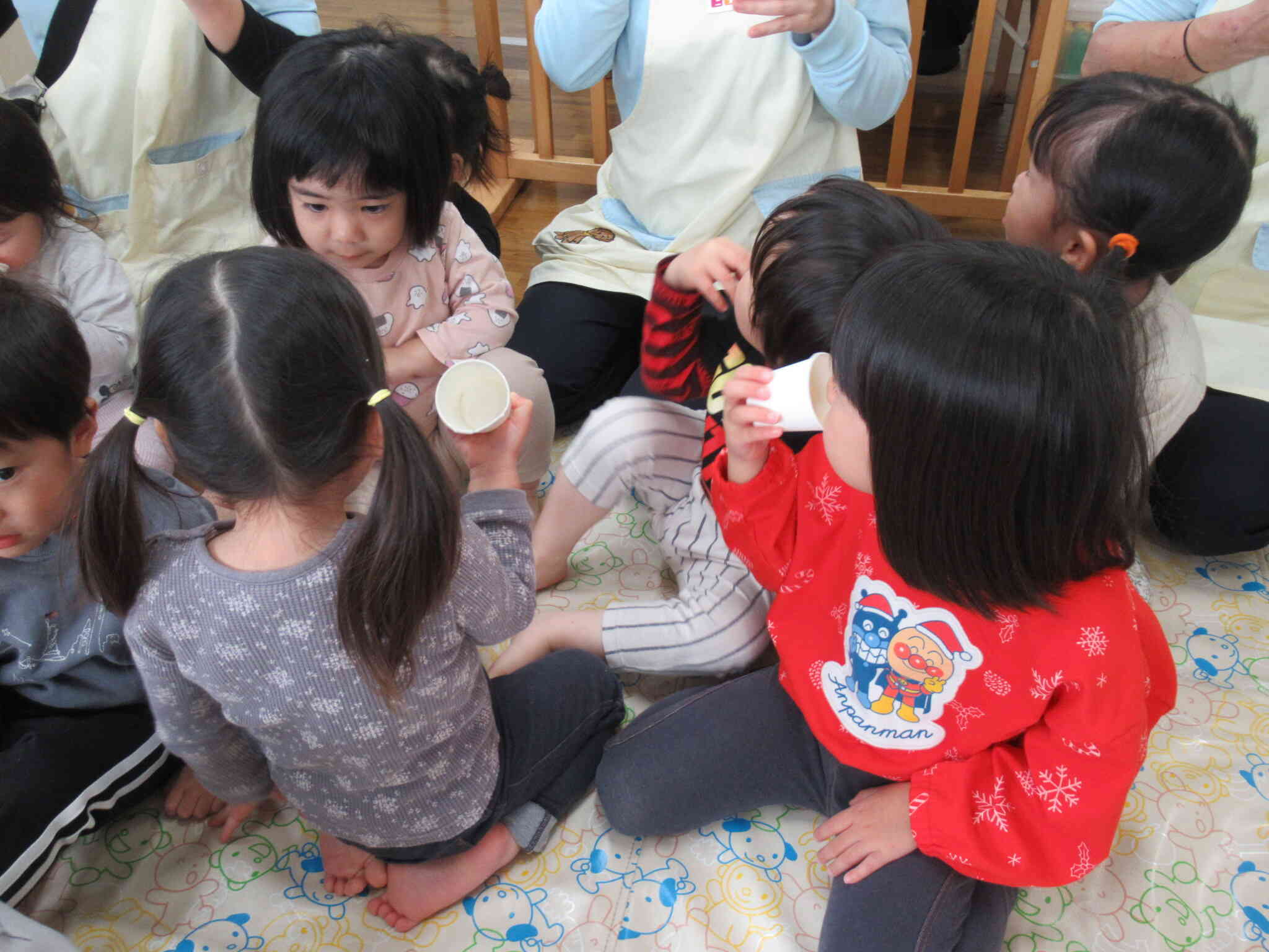 だしの試飲をすると、「おいしい!」と言って飲み干す子どもや、「変な匂いがする」と言って恐る恐る飲む子どもと好みが分かれました♪