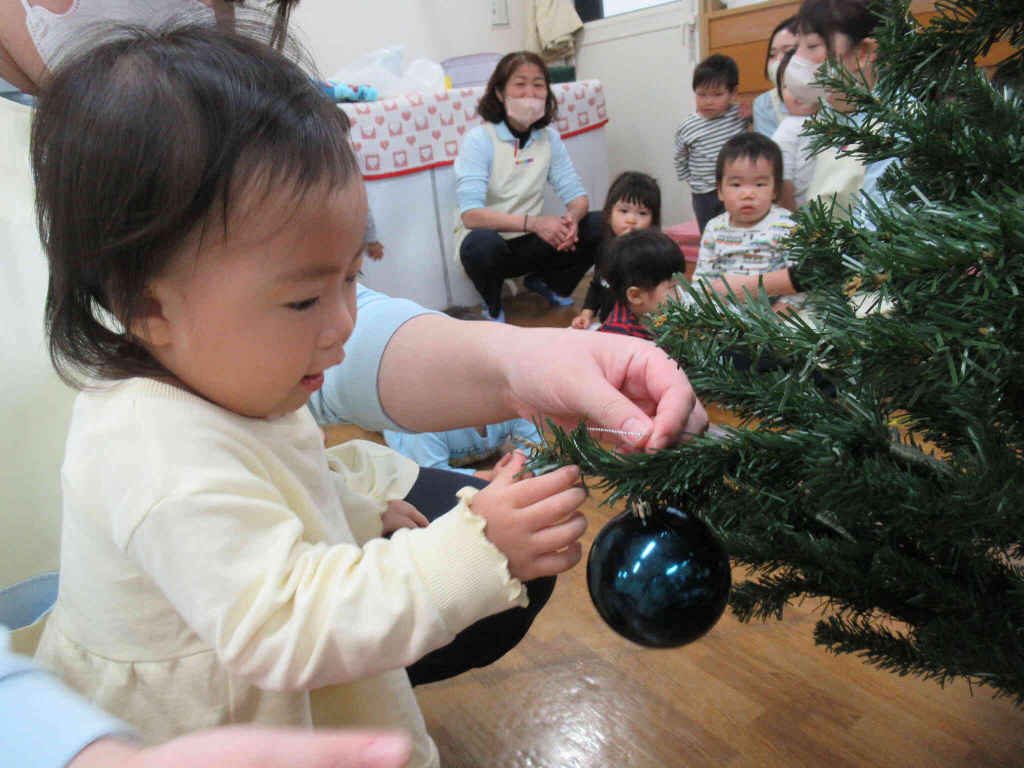 ひよこ組のお友だちもがんばって飾りつけました♡