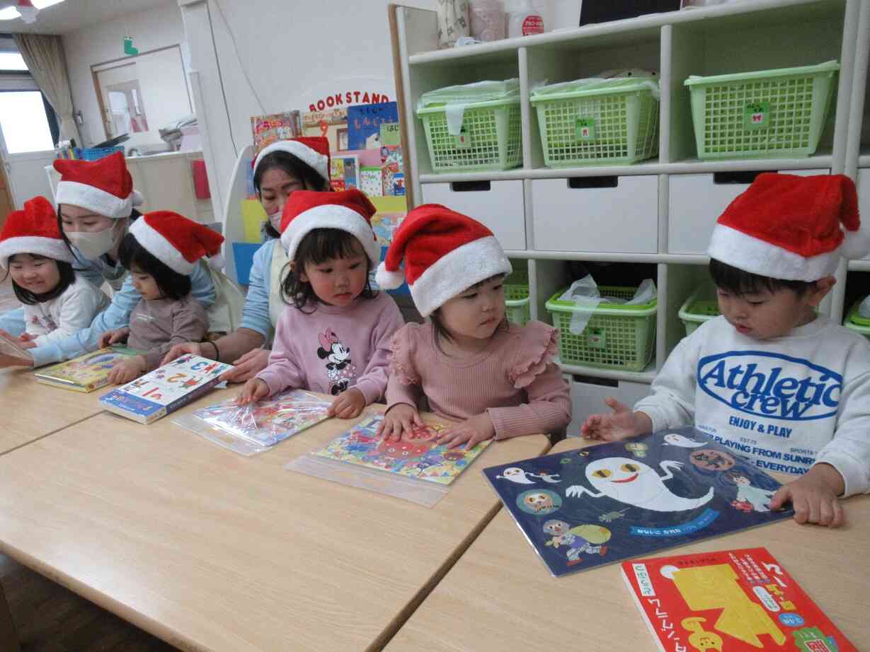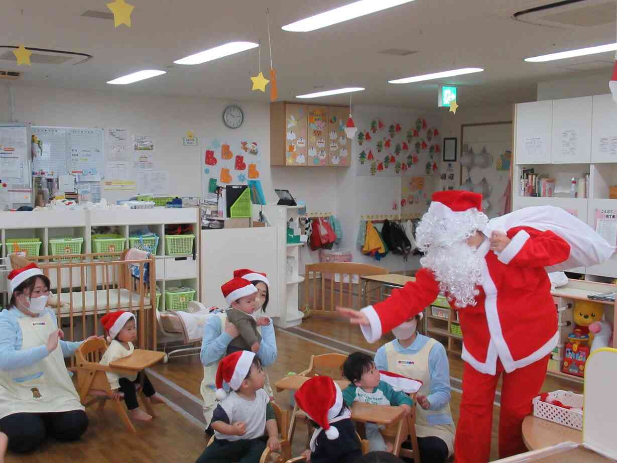 今年は感染症の流行により、各クラスごとでの開催となりましたが、皆でサンタさんの帽子をかぶり、小さなサンタさんになりきってクリスマスをお祝いしました☆