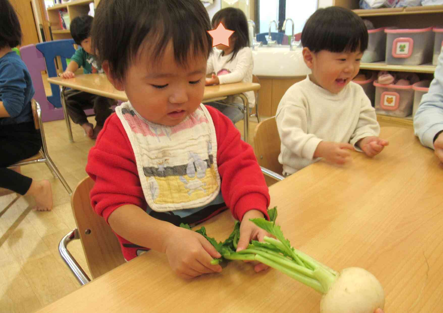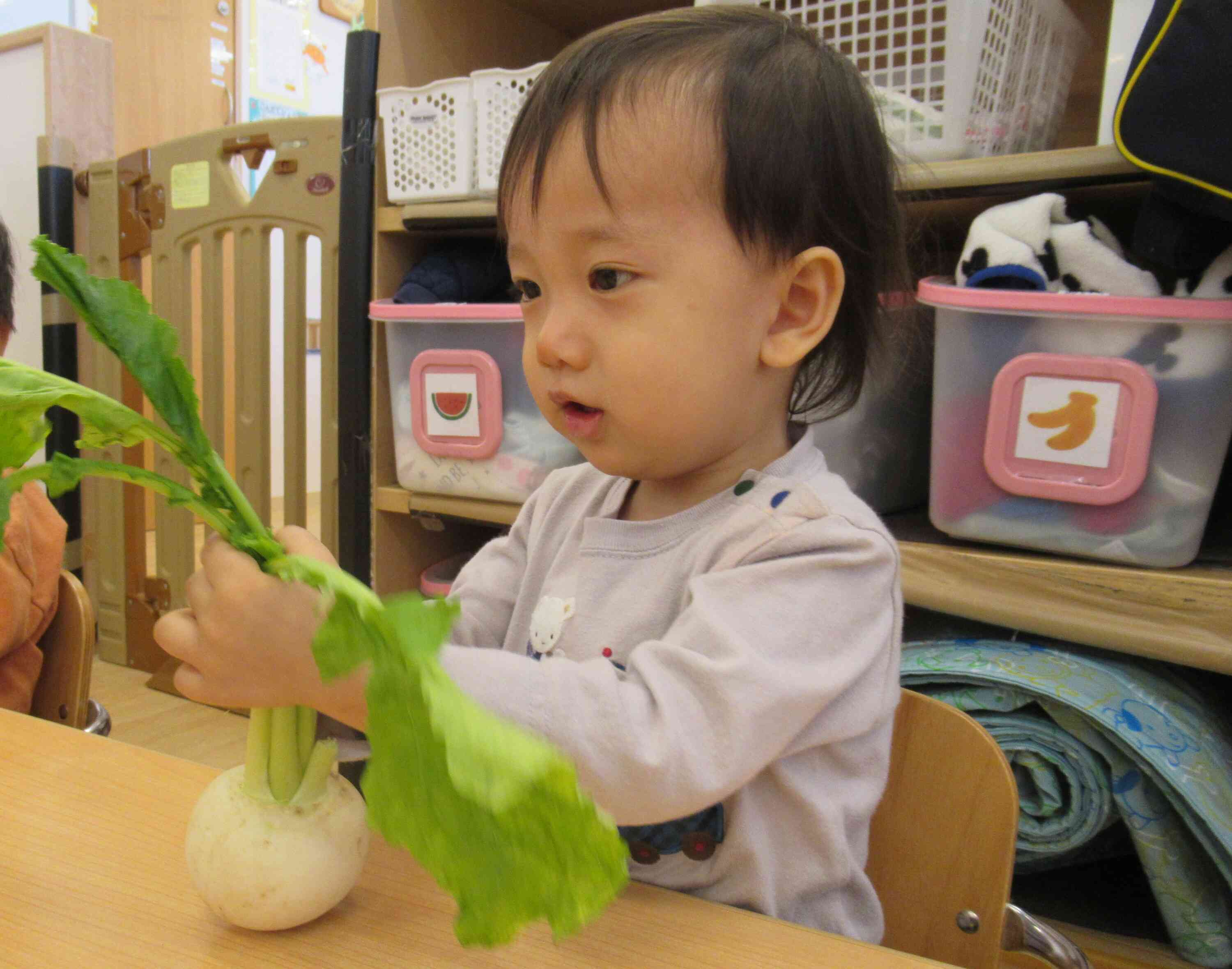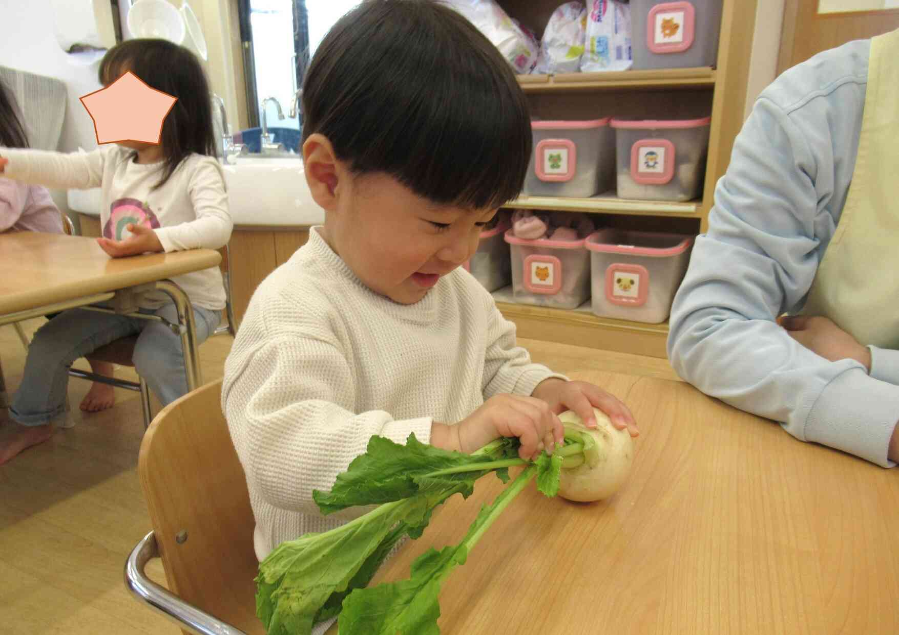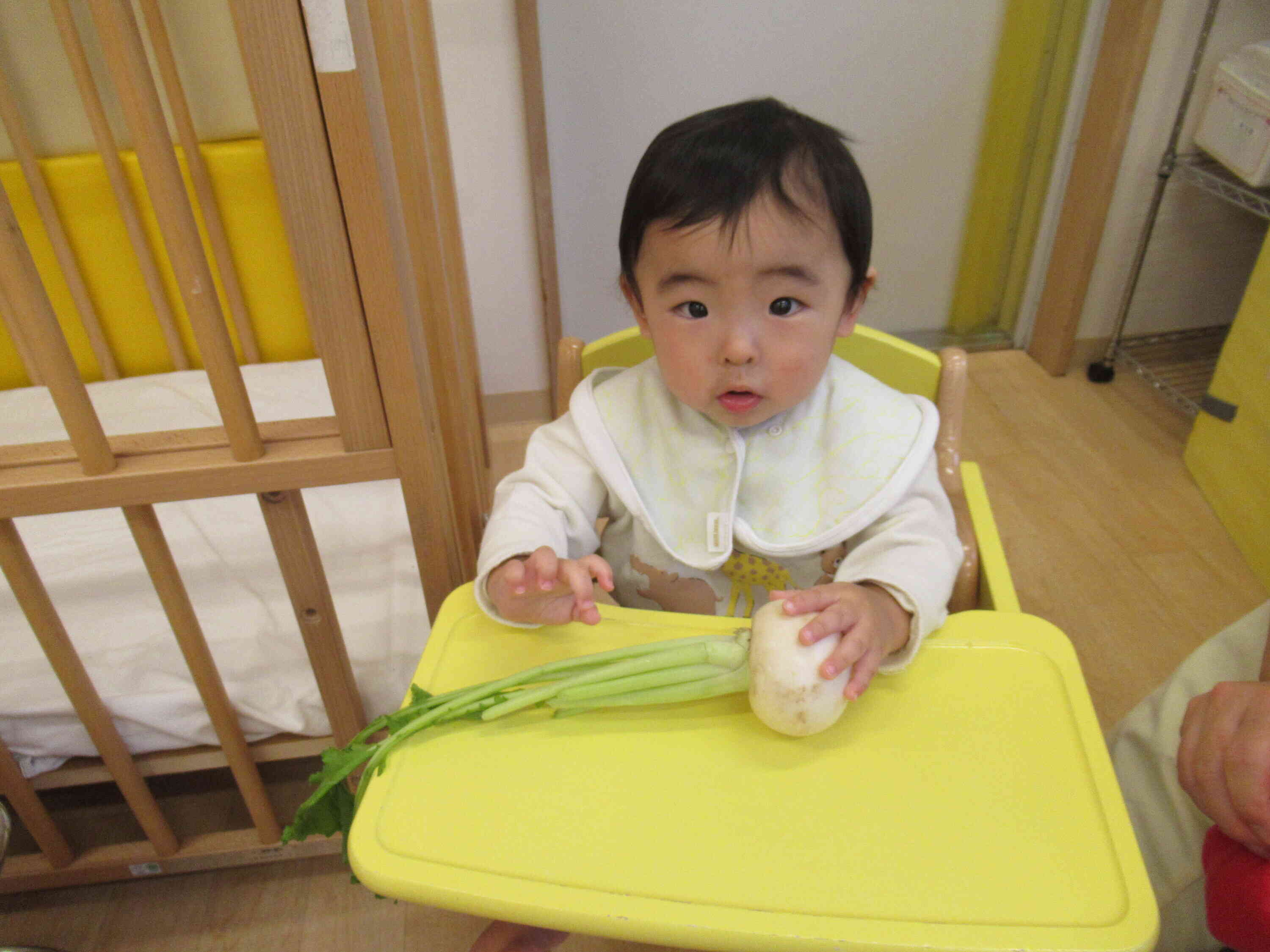 今月の食育は和食の日にちなんで、だしの試飲と柏市の特産品である『かぶ』を紹介しました。
