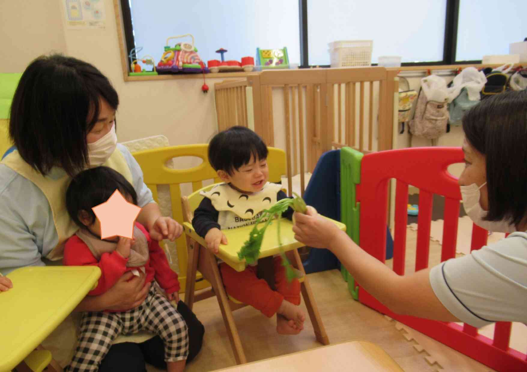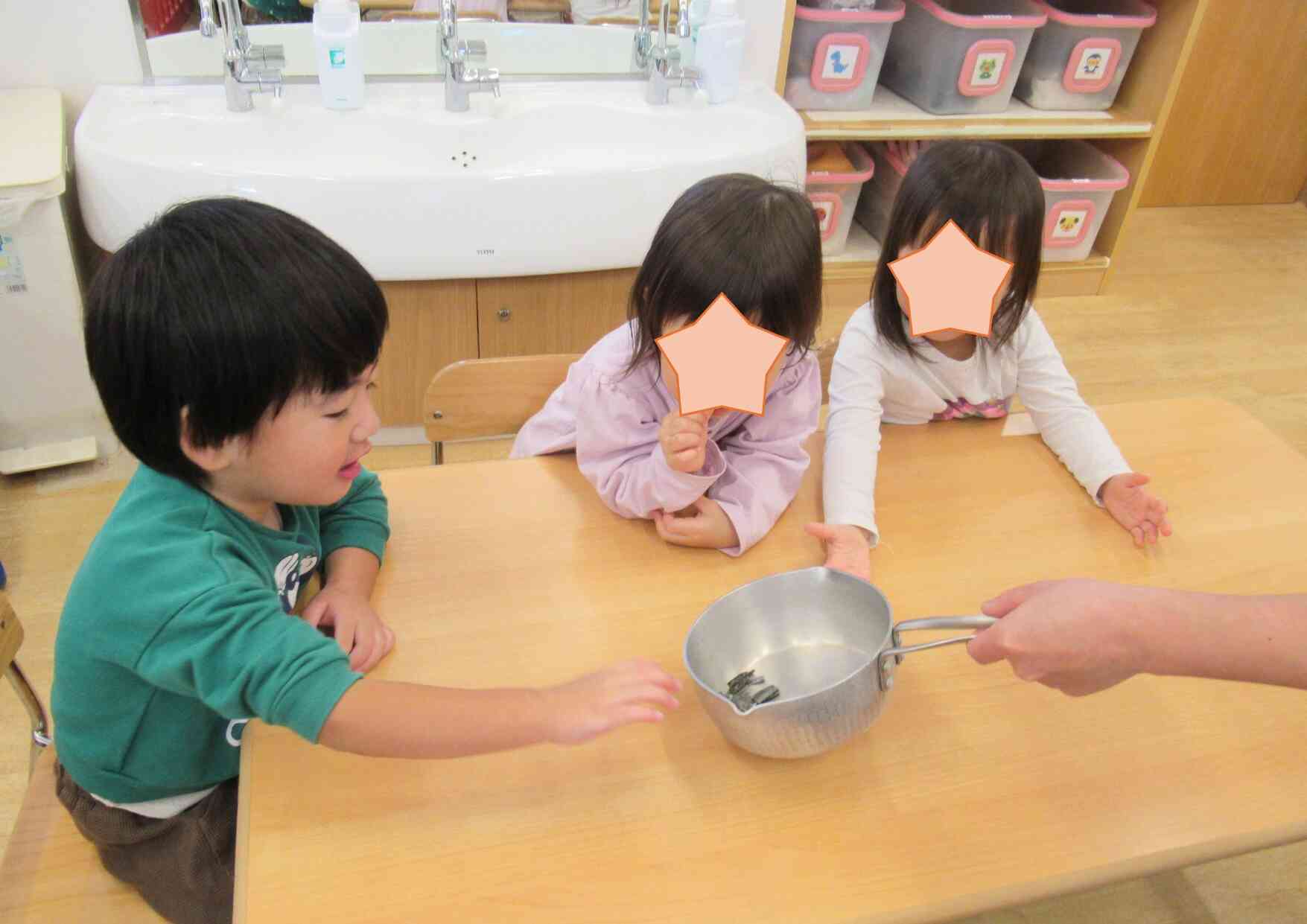 水を吸って大きくなった乾燥昆布を見て、「大きいね~」と興味津々な様子でした。