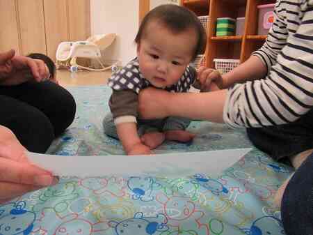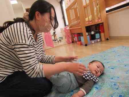 0歳児の在園児と一緒に和やかな雰囲気の中、