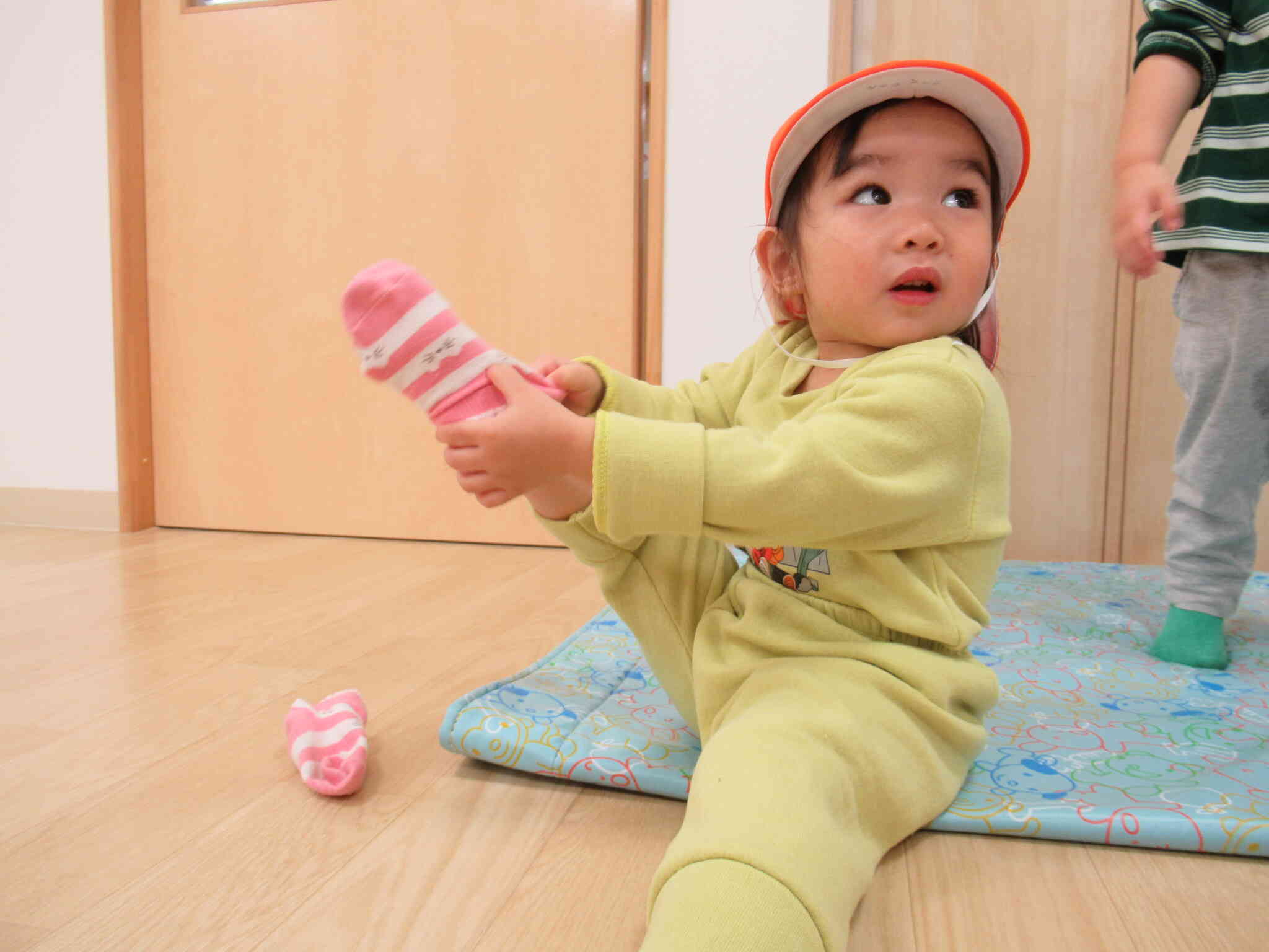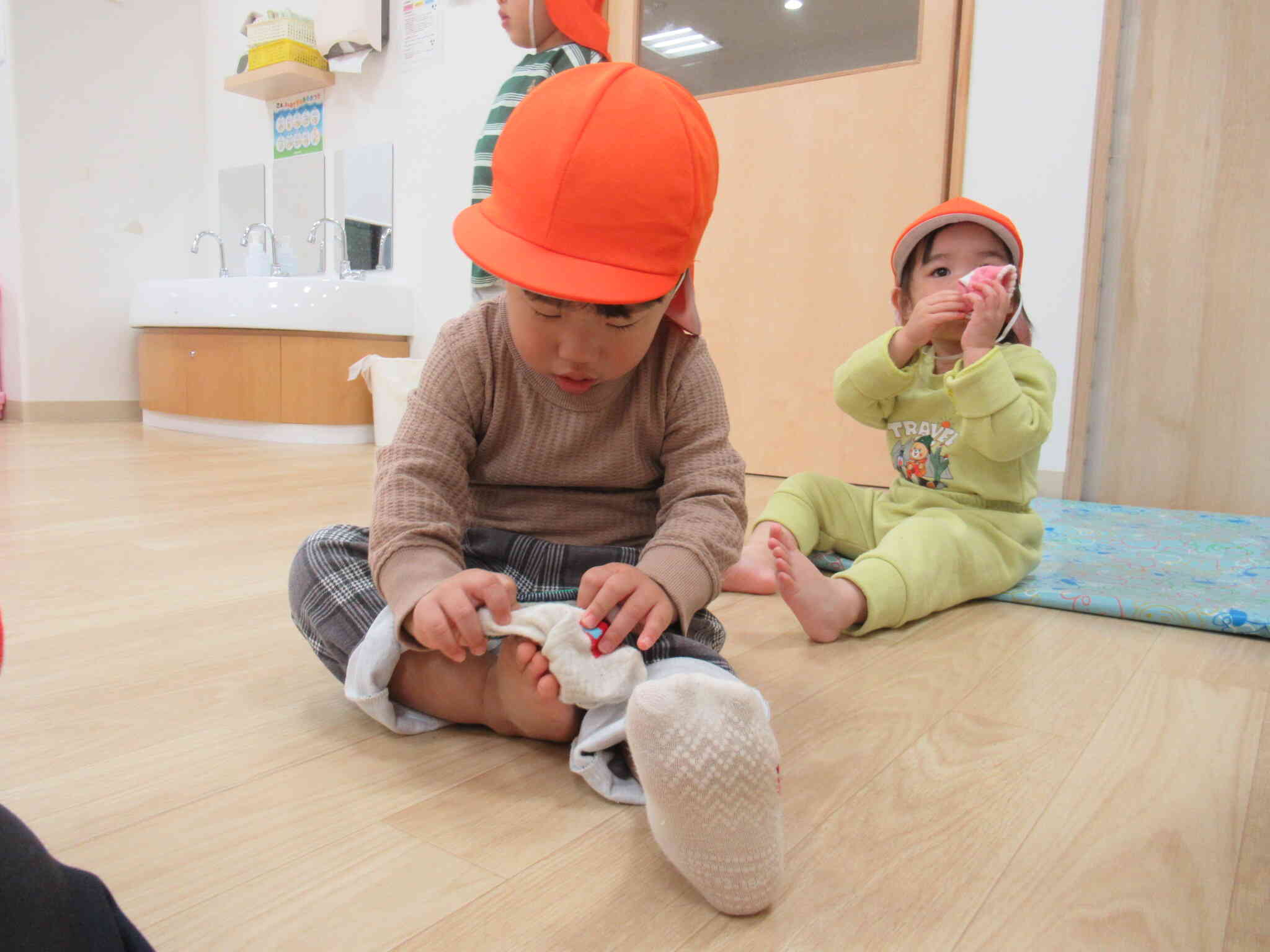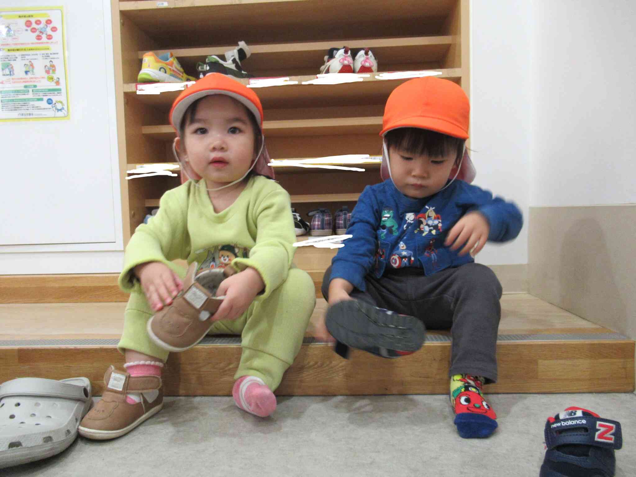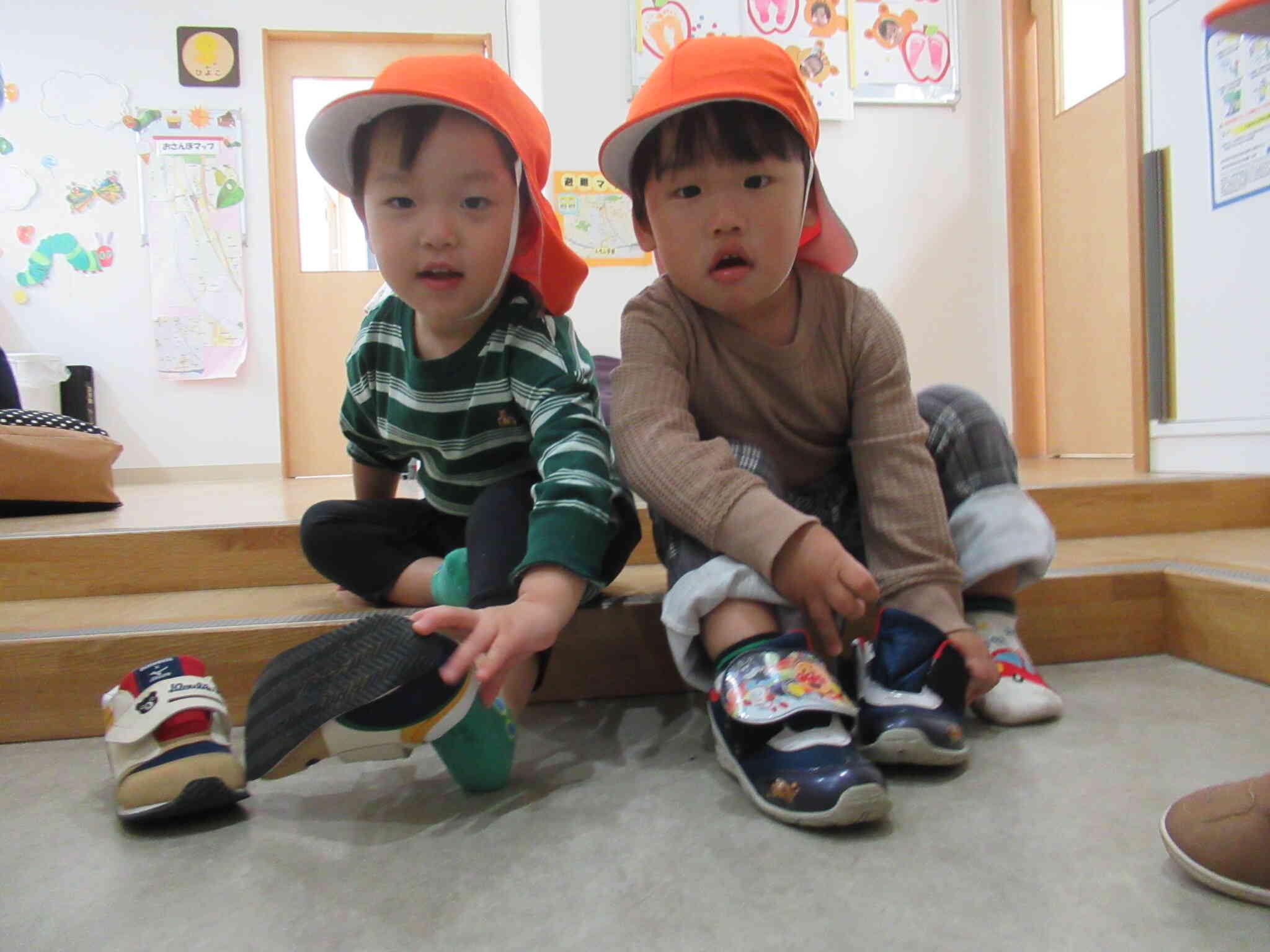 早く行きたくて、自分で靴下や靴を履くのを頑張っていますよ。