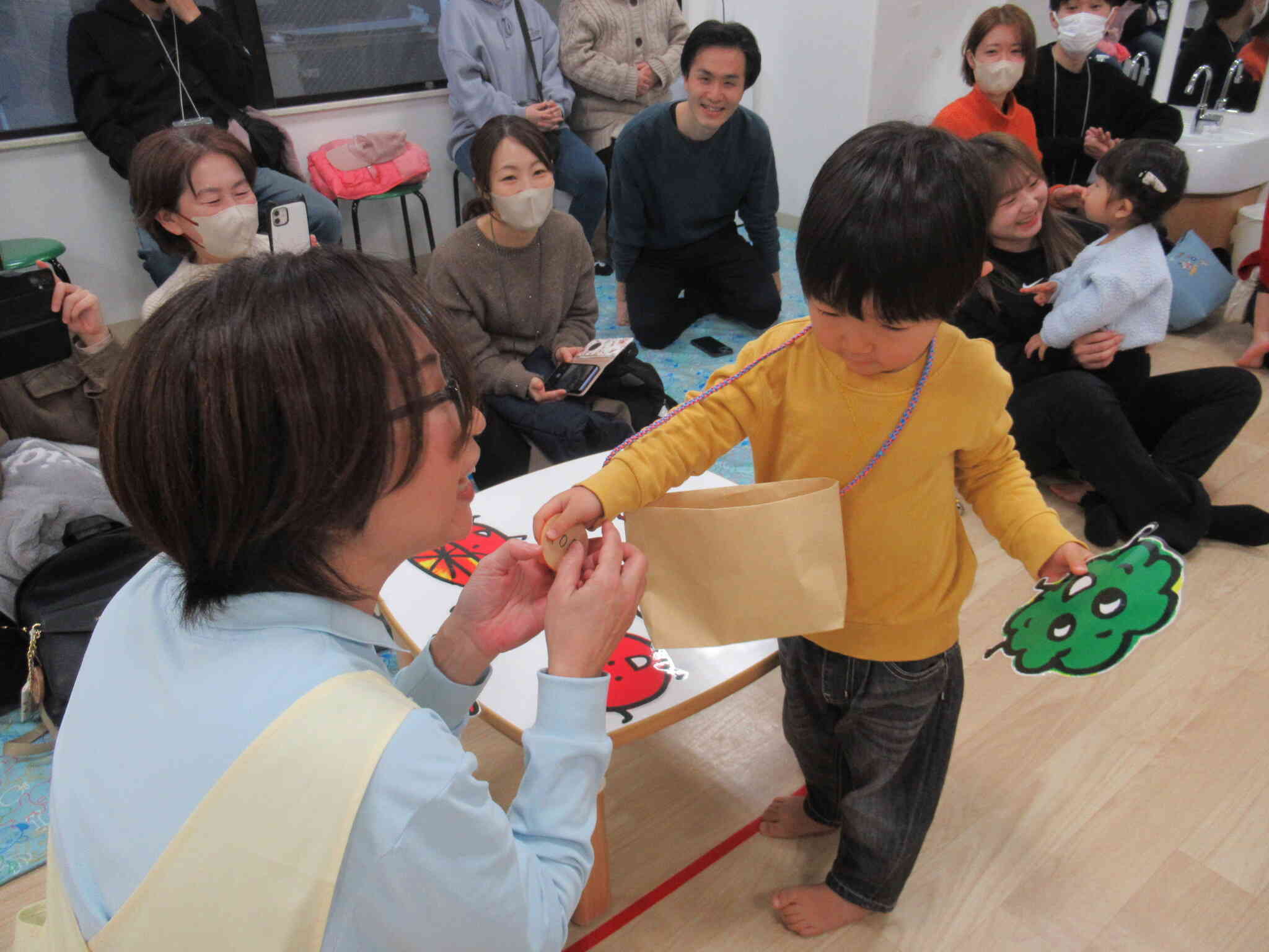 自分の名前を言って、バスに乗せる食材を選びます。