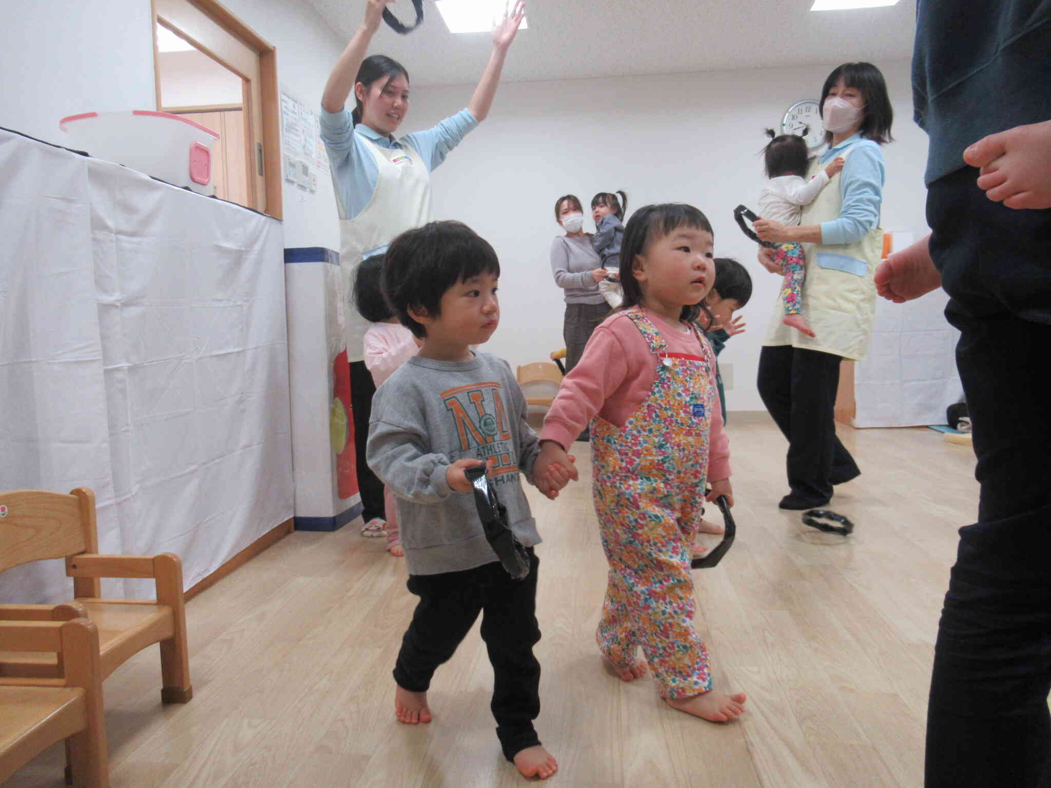 うさぎ組さんはカバンをかけて登場!
