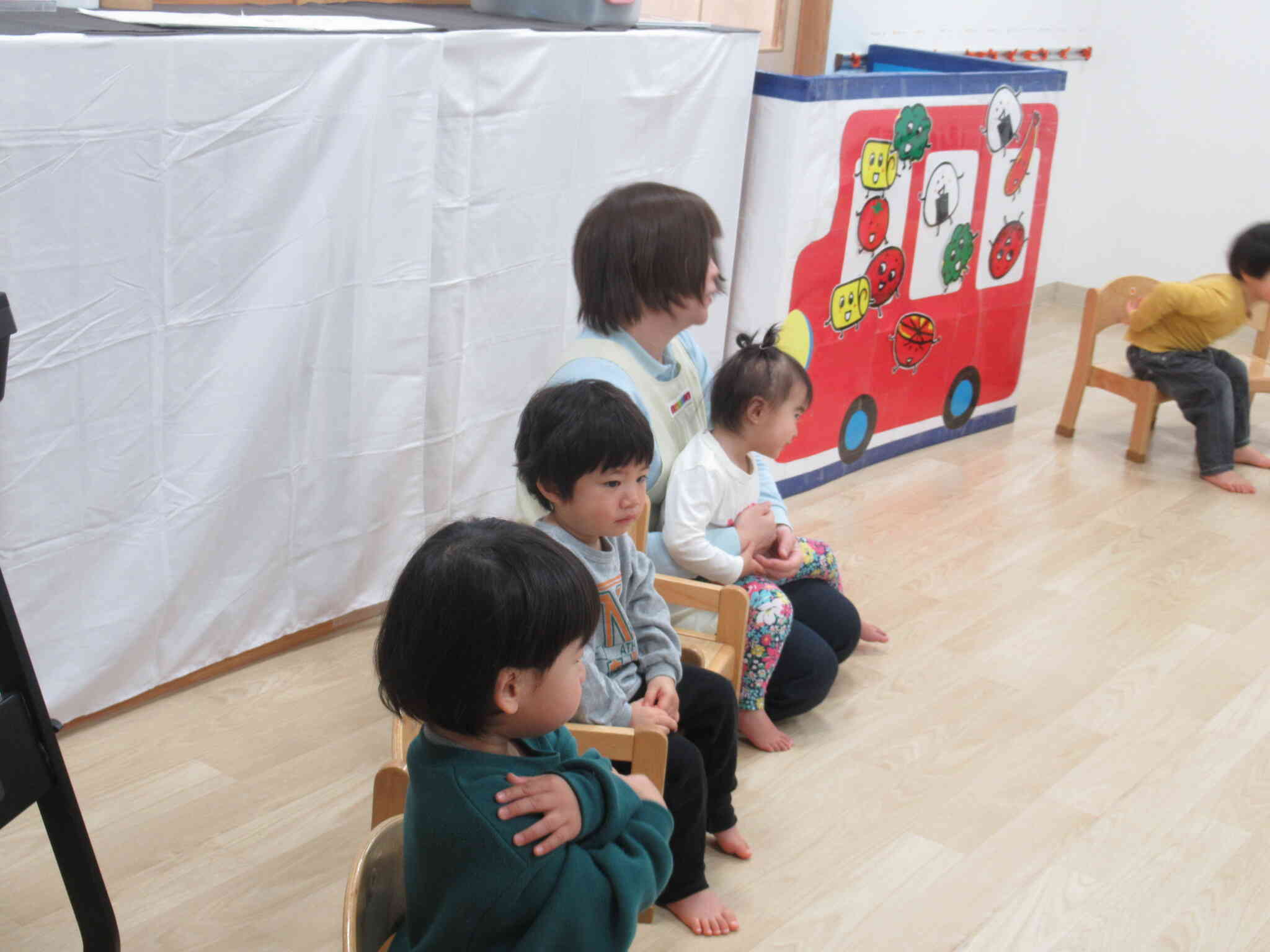 あひる組とうさぎ組はおべんとうバスの劇遊びをしました。