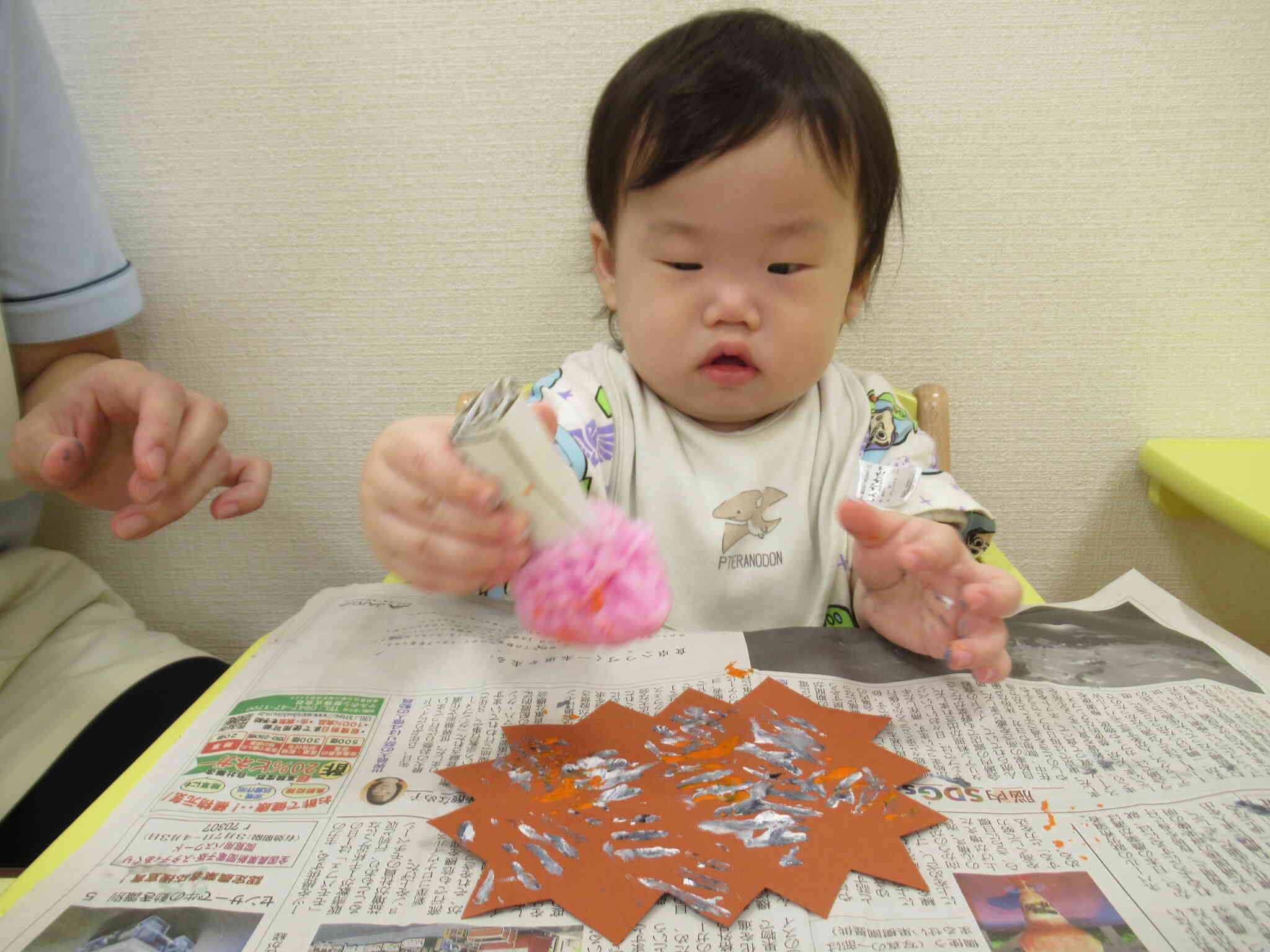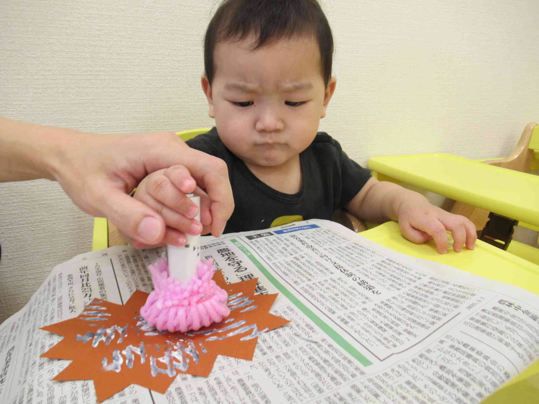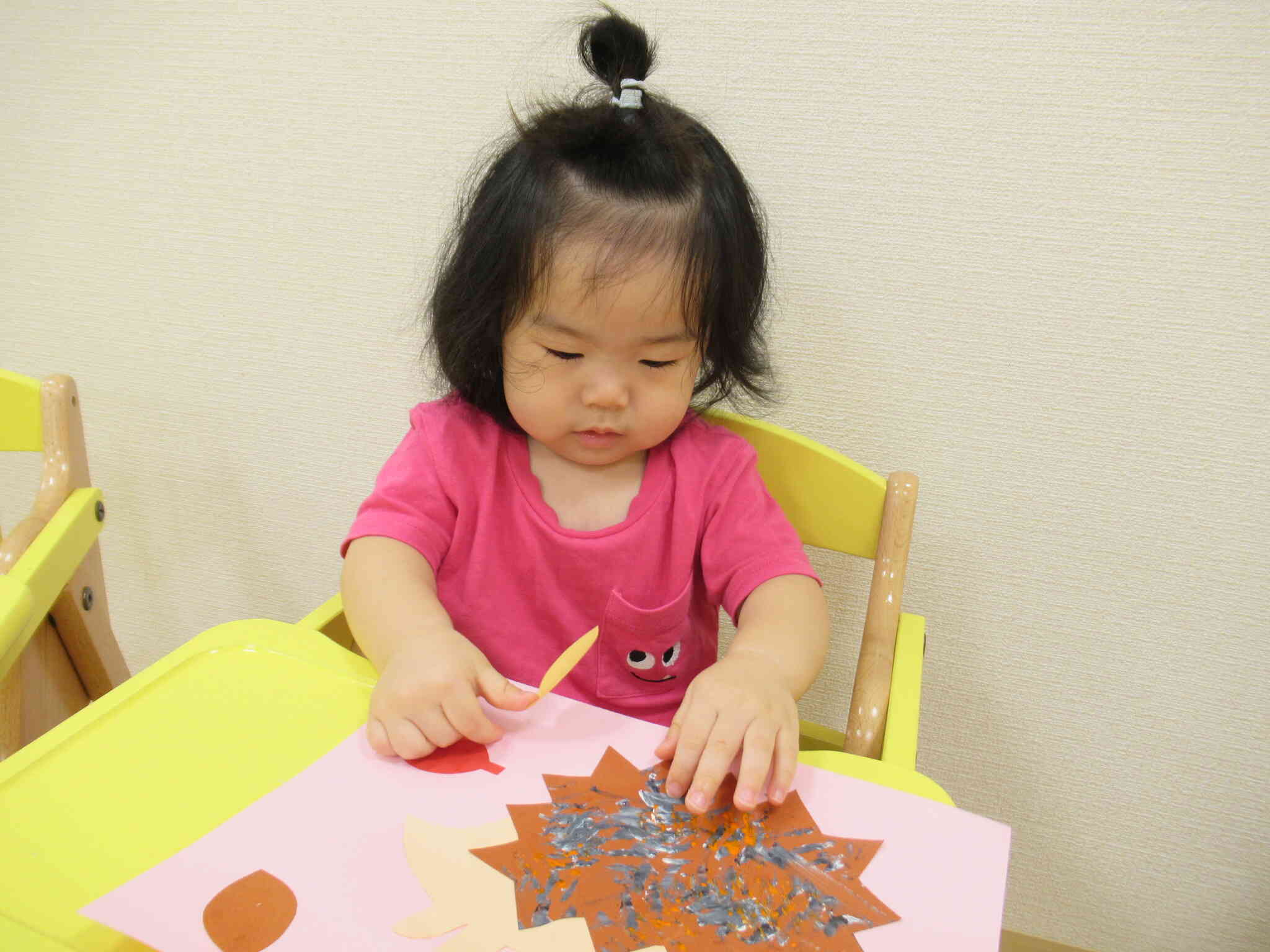 9月の製作をしました☆スタンプポンポン♪ ハリネズミさんに素敵な模様がつきましたよ
