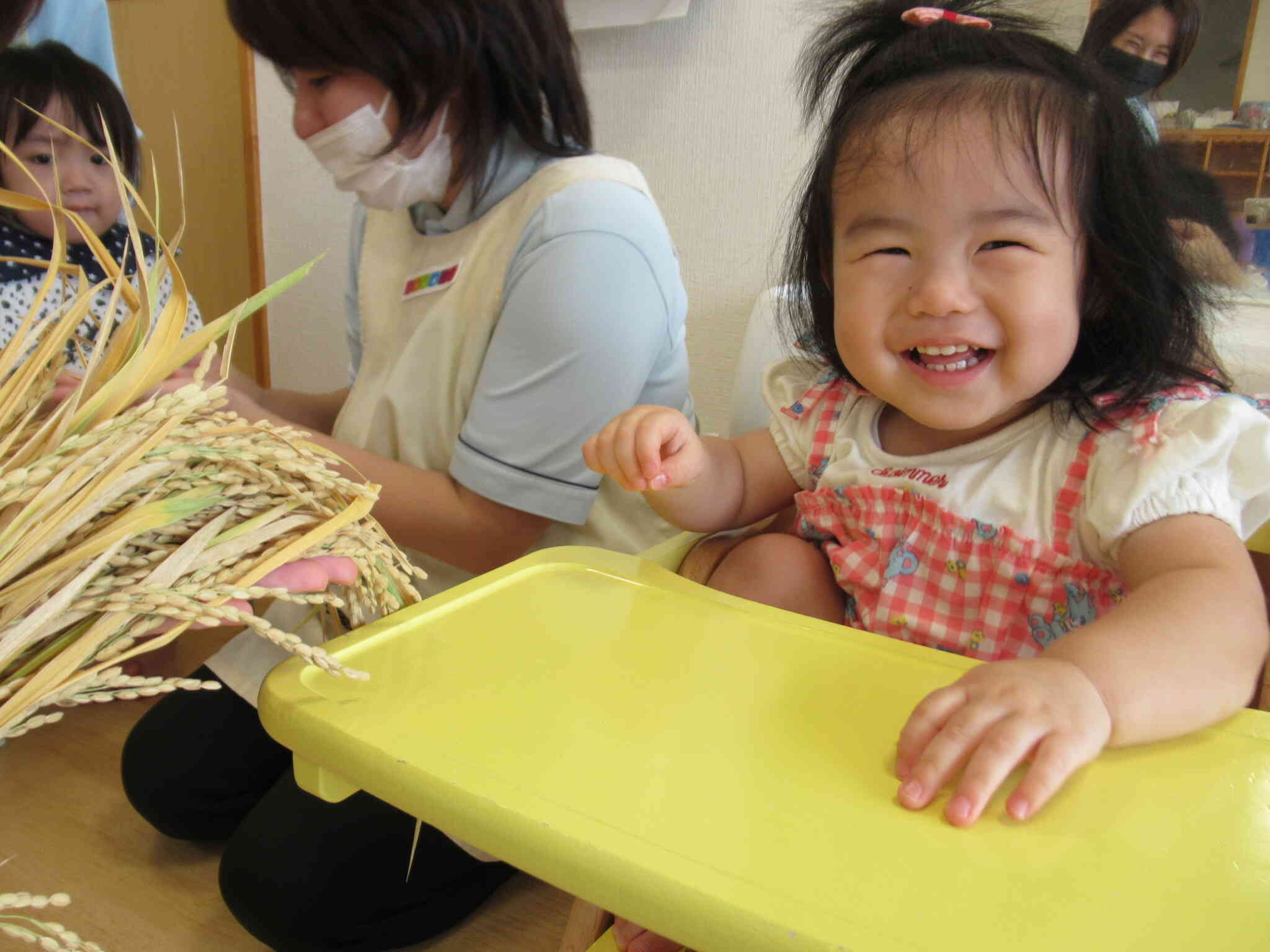 給食の先生が本物の稲穂を持ってきて見せてくれました。