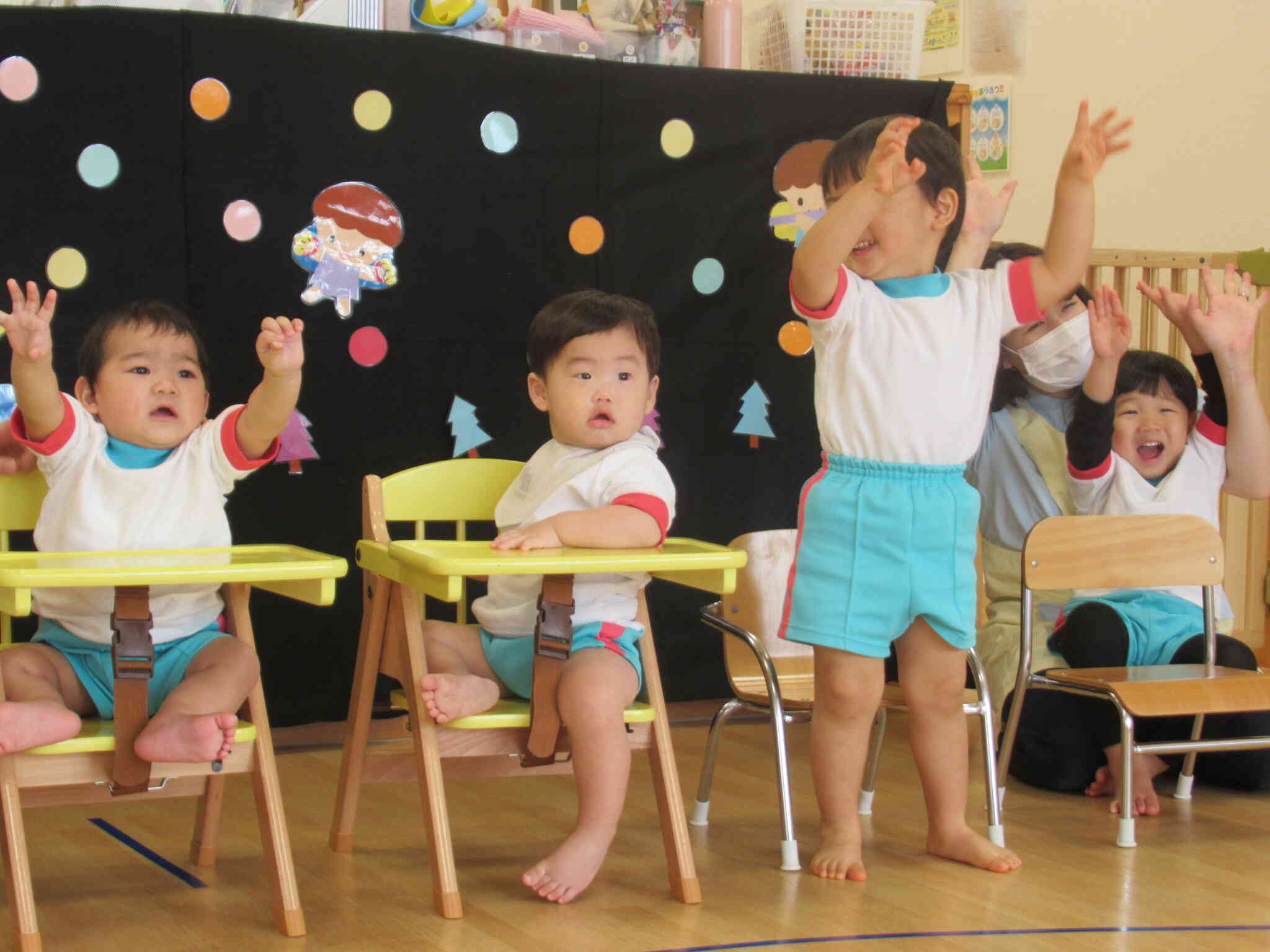 朝の会が発表会バージョンになってみんなペープサートを見たり