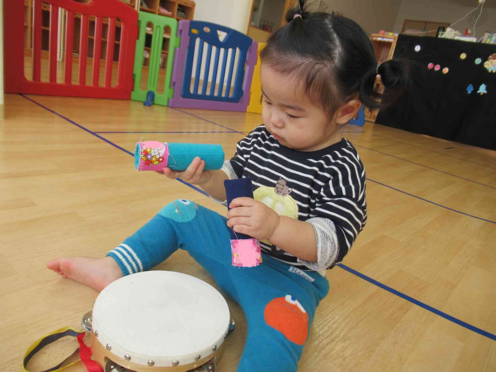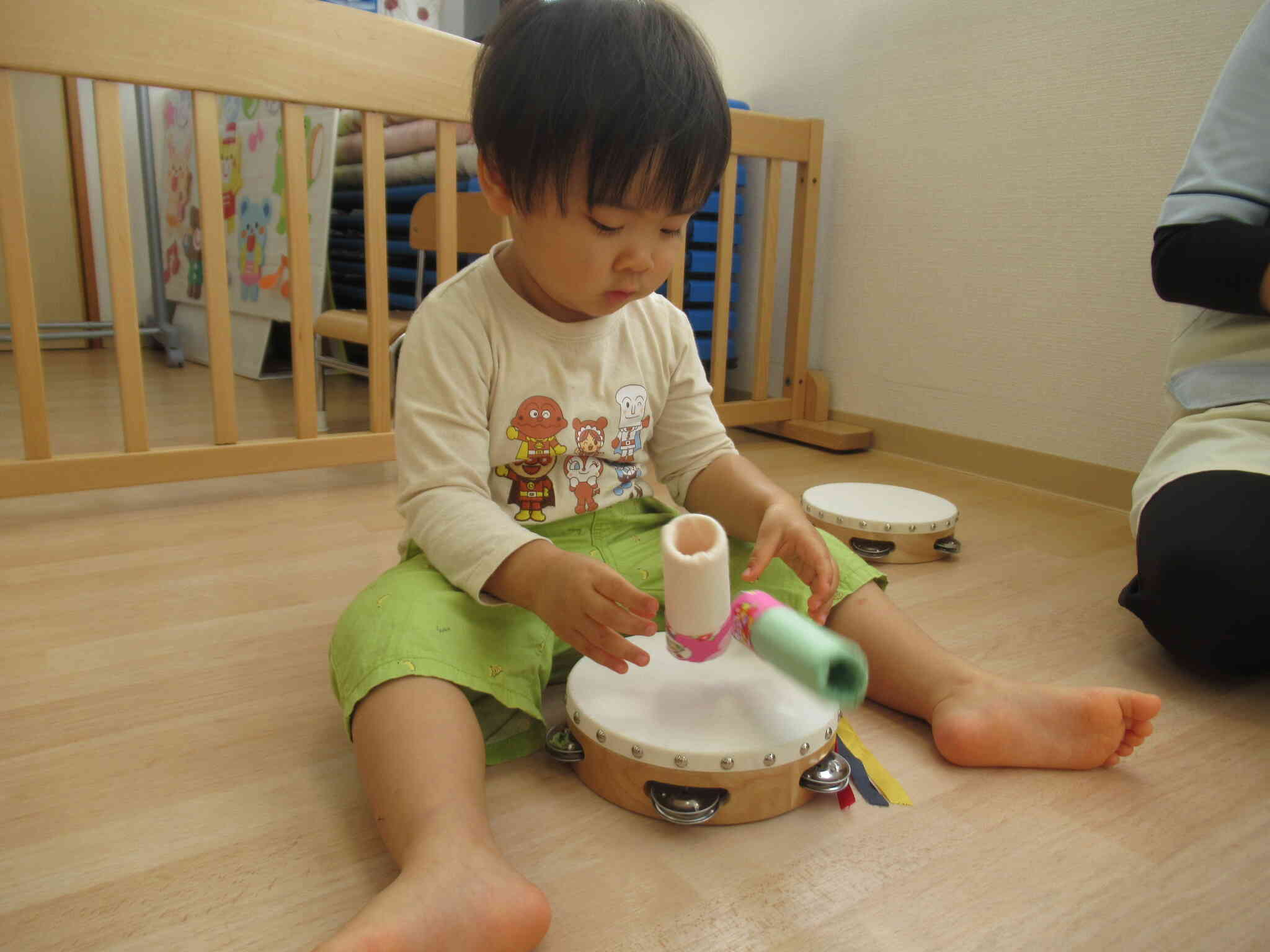 楽器あそびでは、タンバリンを太鼓のようにバチでたたくこともありました