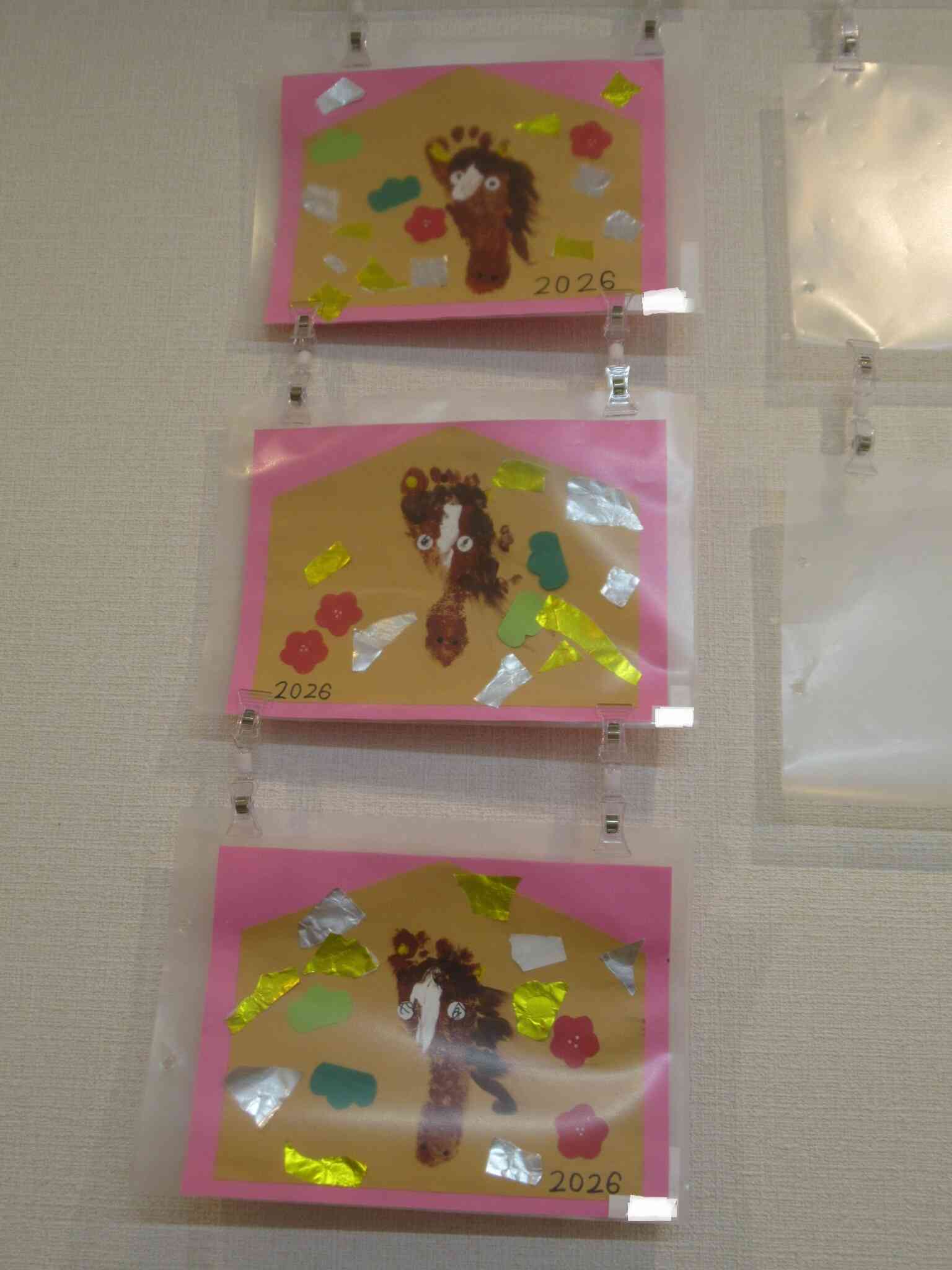 今年はじめの製作を飾りました。かわいいおうまさんがいっぱいです♪