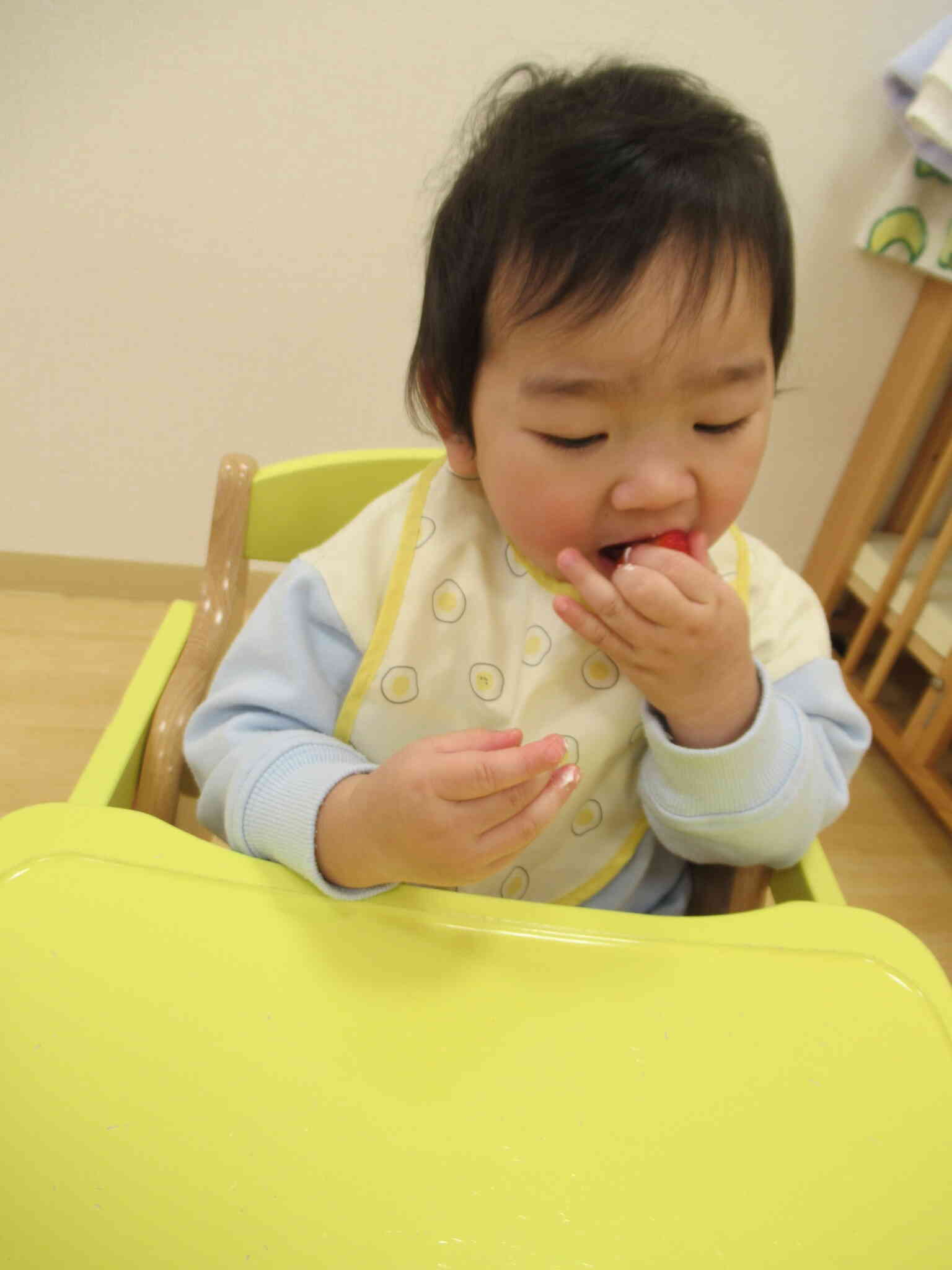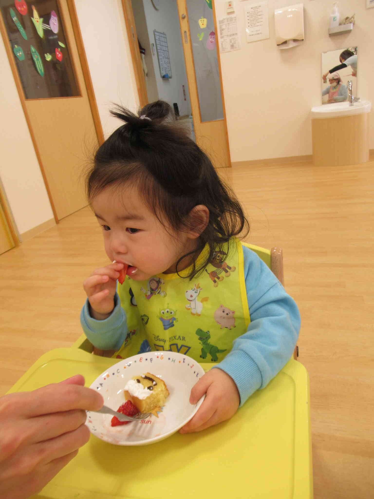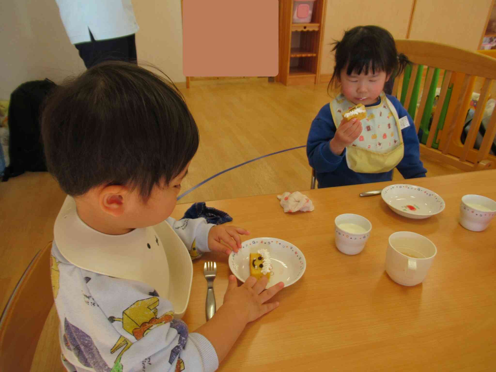 15時のおやつは鬼さんのケーキでした!子ども達が「おにだー」と喜んでいてかわいかったです♪