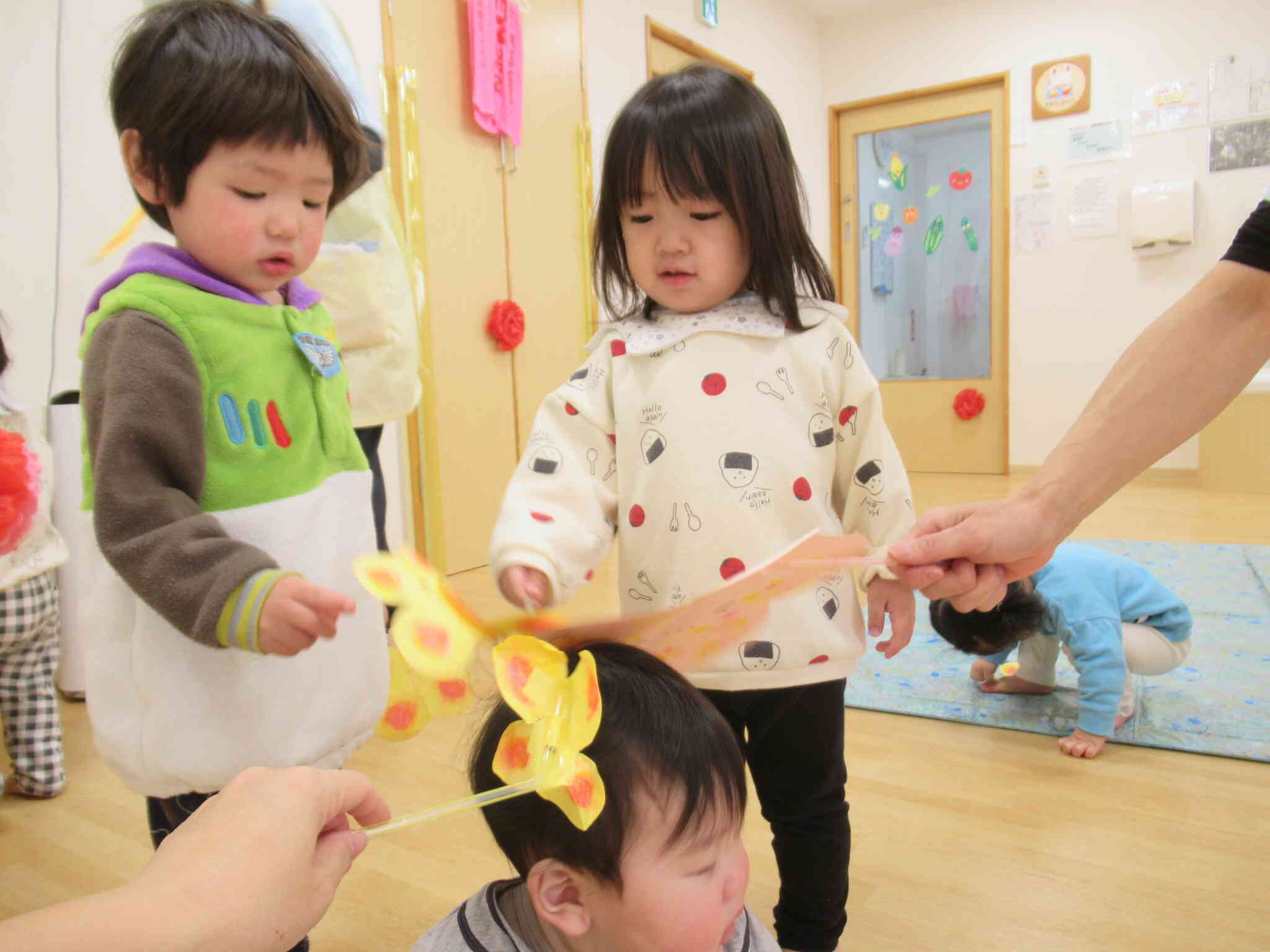 歌に合わせながらちょうちょのペープサートを使って遊びました☆