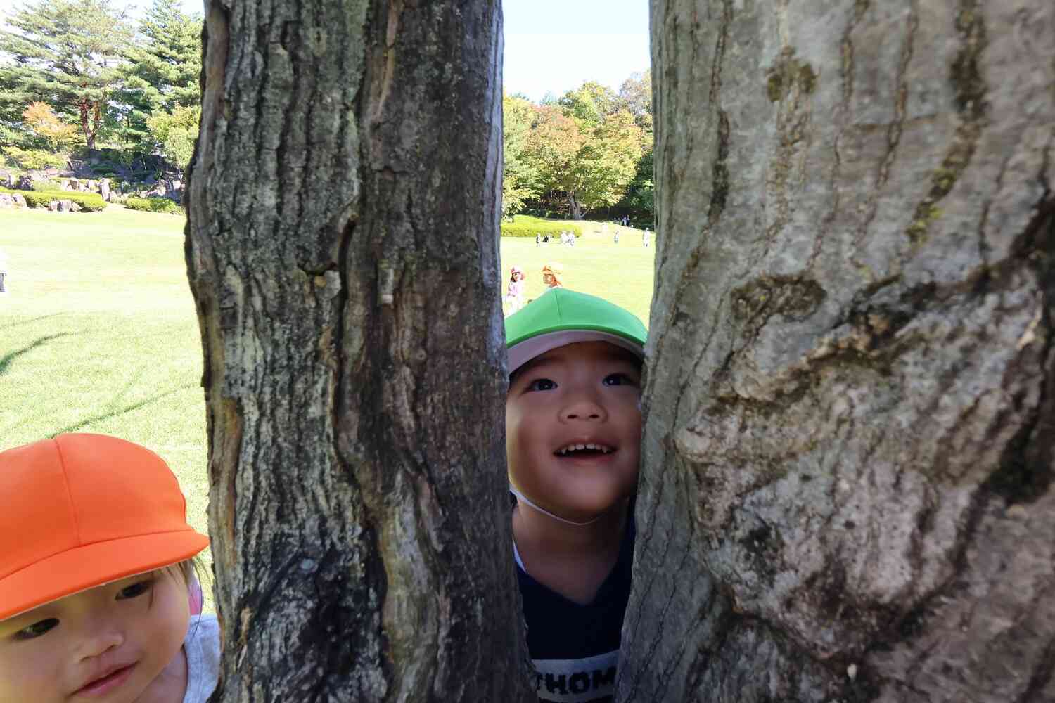今日は待ちに待った遠足です。秋晴れの下おもいっきり公園で体を動かしました。鳥や虫の鳴き声が聞こえたり、蝶やとんぼが飛んでいたりと子どもたちは大喜び。