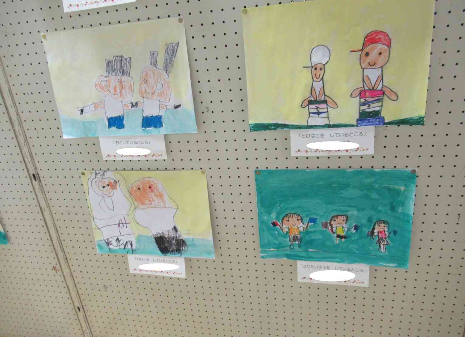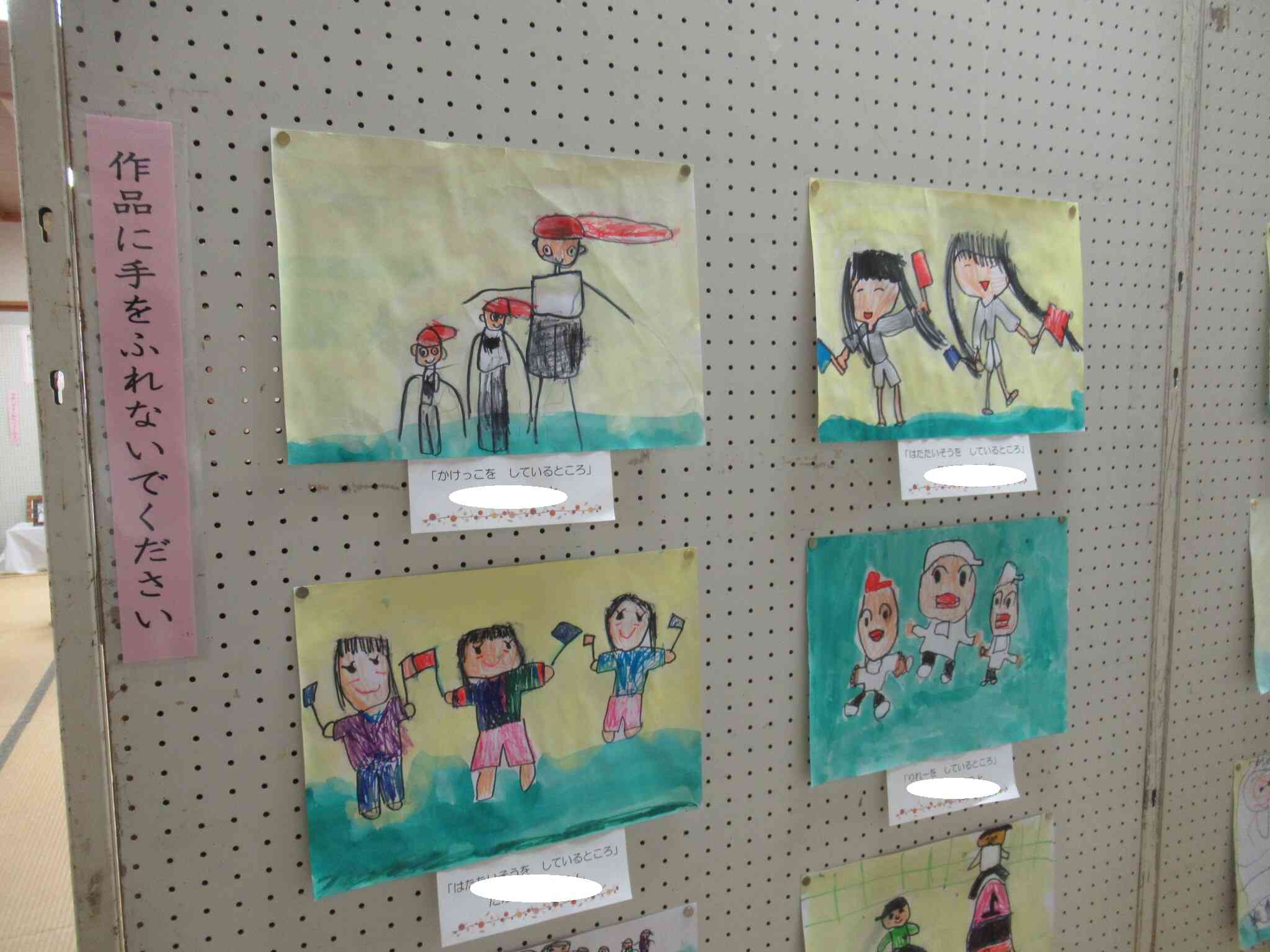 11月1日、2日、飯豊地区の文化祭がありました。5歳児きりん組は、運動会の絵を展示して頂きました。一人一人、楽しかったことを思い出しながら、一生懸命に描いた絵です。