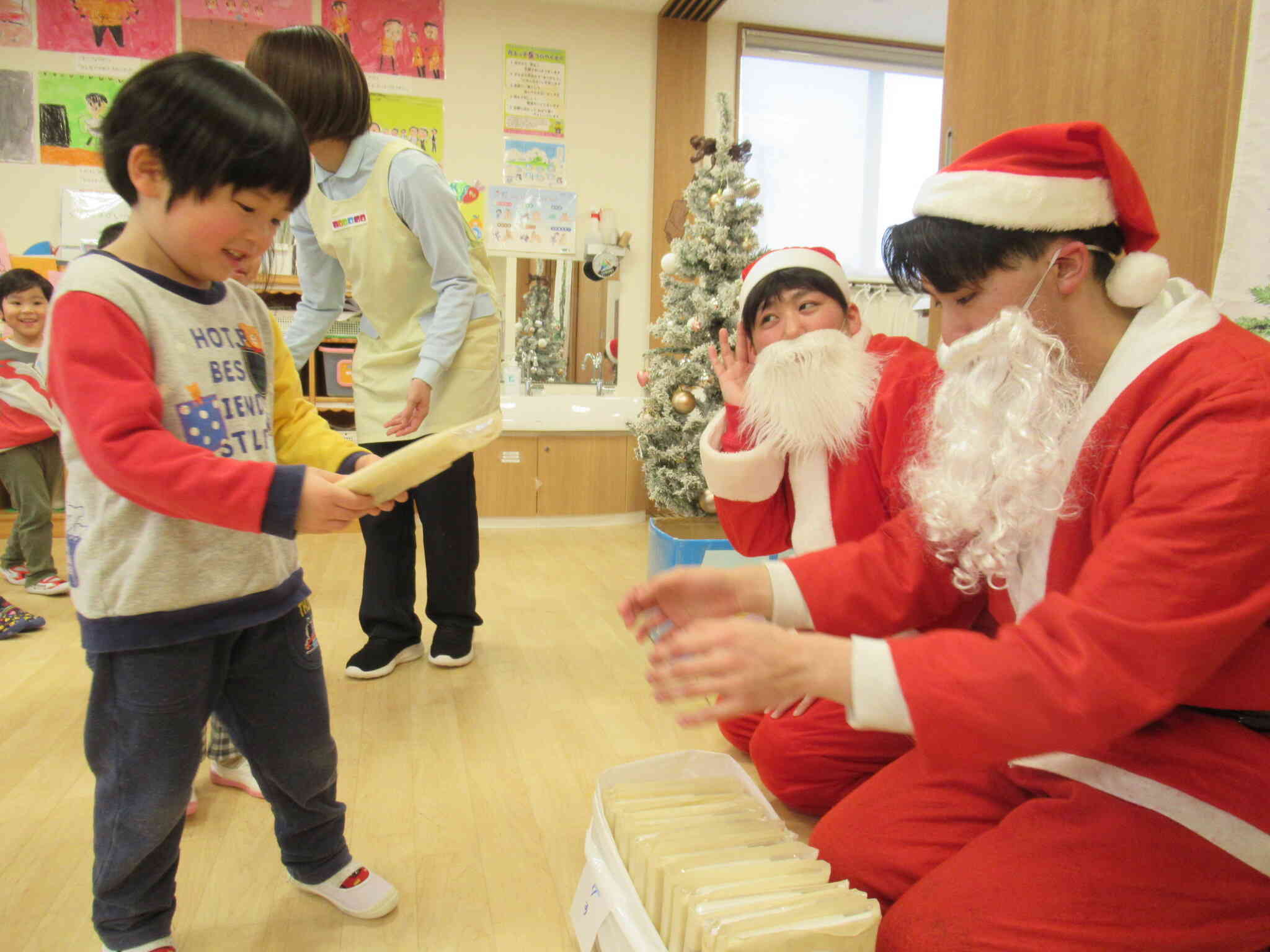 かっこいいお兄さんサンタさんが三人も来てくれて、みんなの目はくぎ付け。