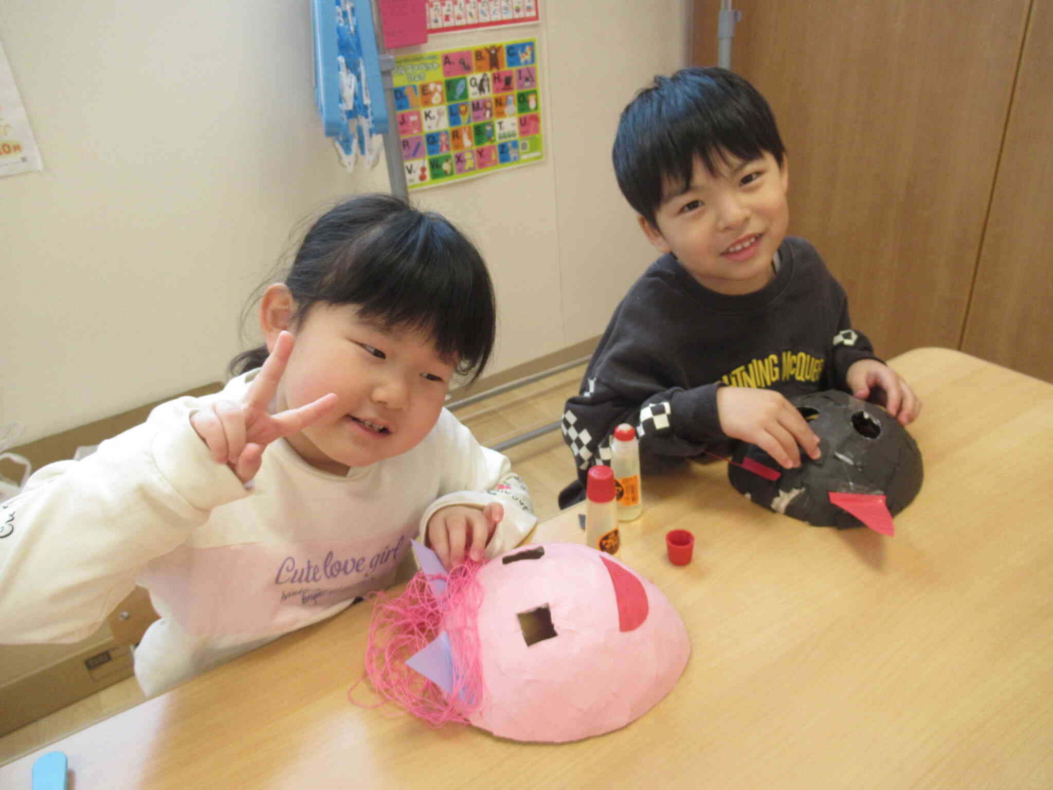 節分に向けて、「張り子」という方法で本格的なお面作りに挑戦しました。