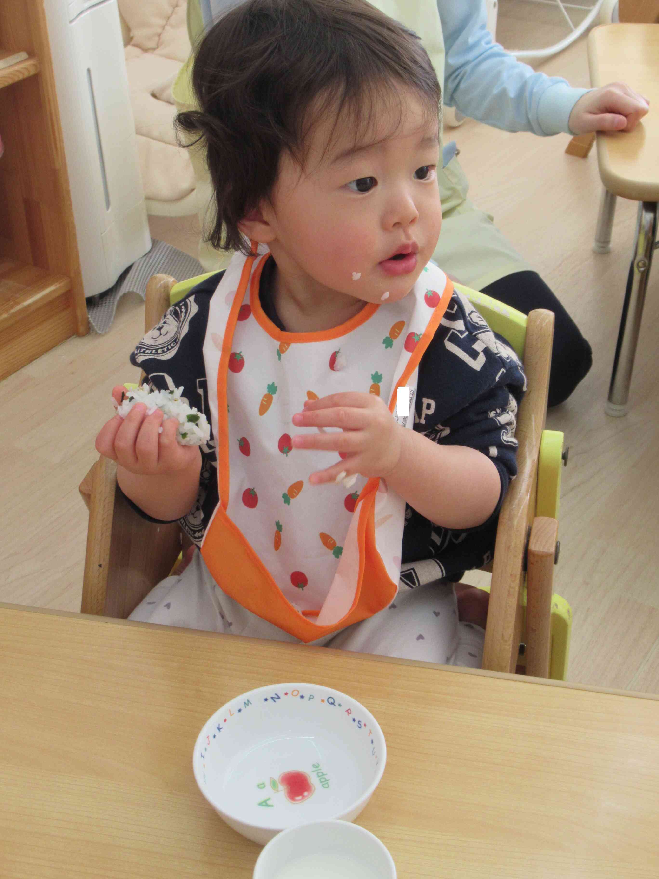 午後おやつでは自分で握ったおにぎりを食べました。自分で作ったおにぎりは格別だったようで、みんなおいしそうに食べていました。