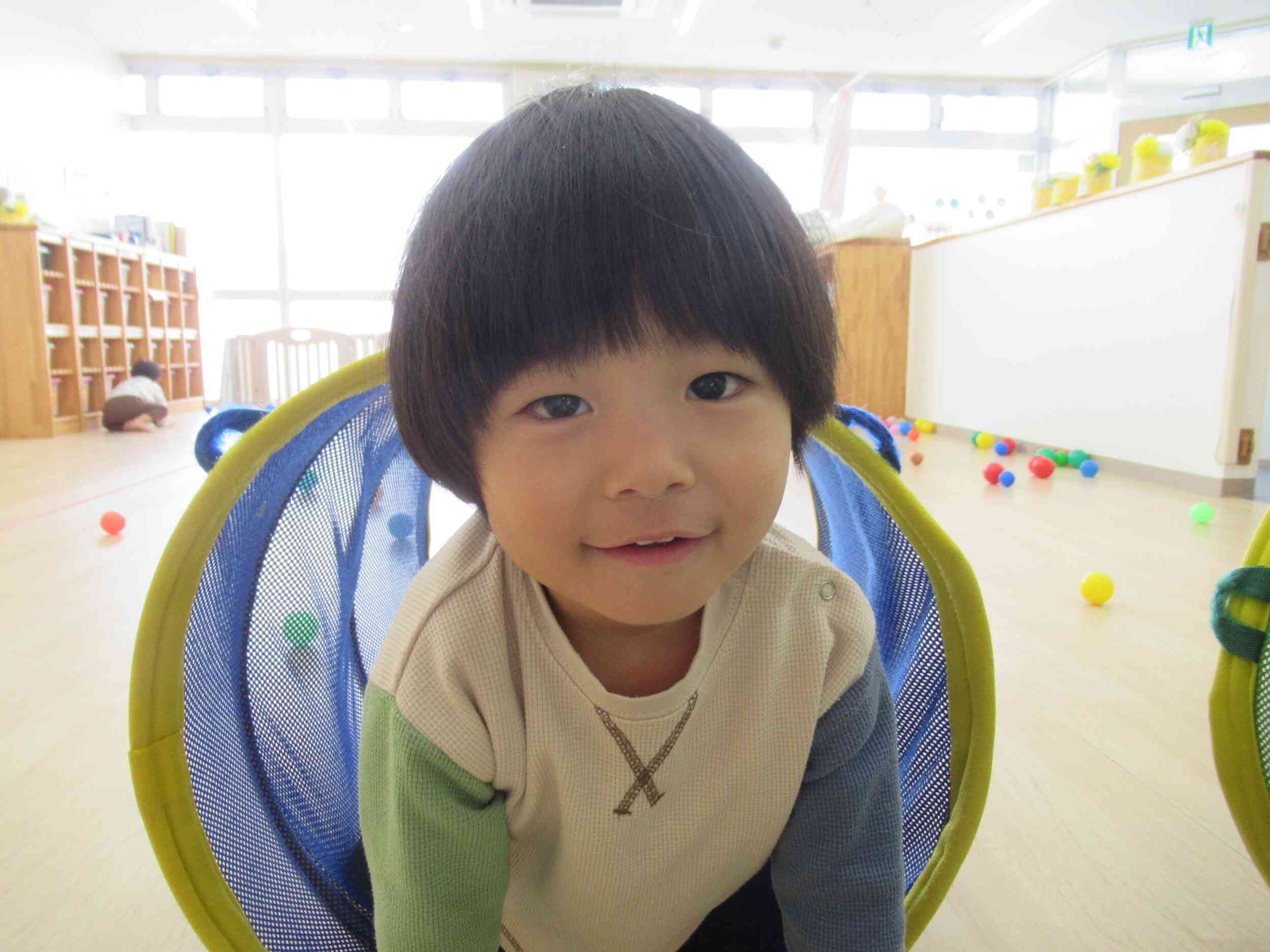 この日は室内でトンネル遊び、滑り台、ボールプールを使って遊びました。